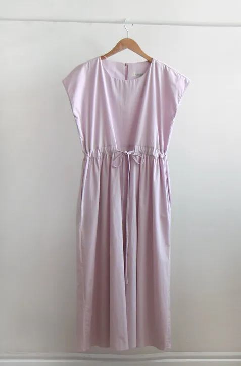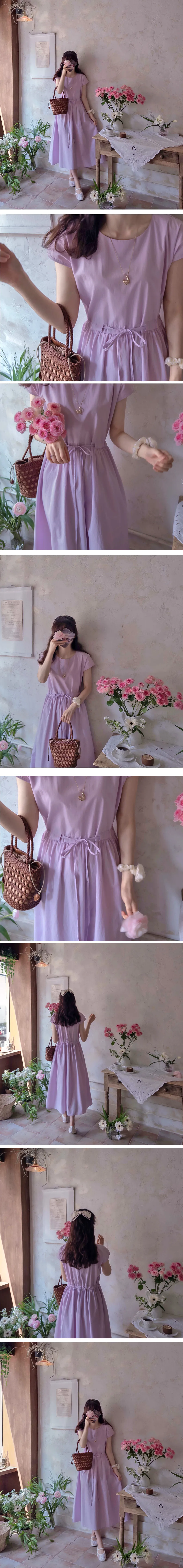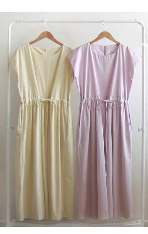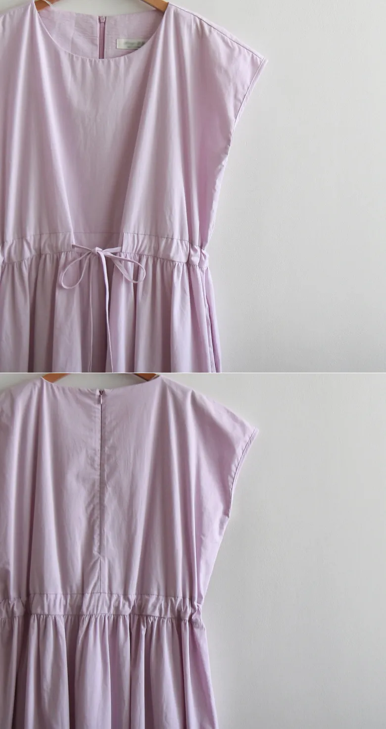 [後拉鍊結構] [面料堅韌有彈性,簡約可愛] [腰帶可調節:綁帶連接] [柔和色彩,優雅合身,充滿可愛情調的夏季連身裙] [在腰帶上系上蝴蝶結,完成貼身設計] [推薦作為時尚明亮的夏季連身裙]
