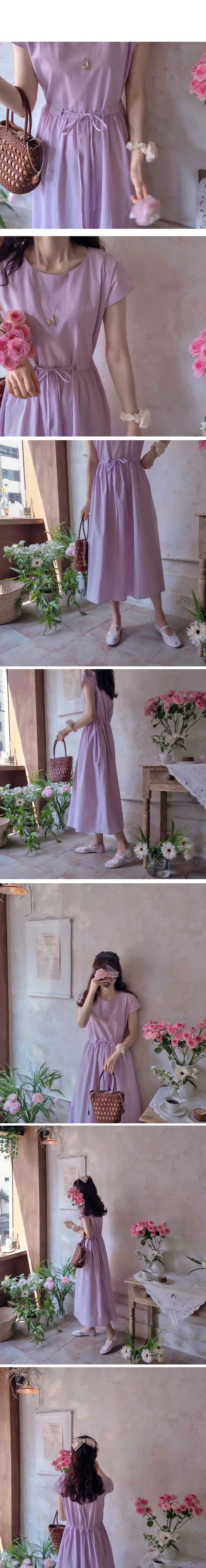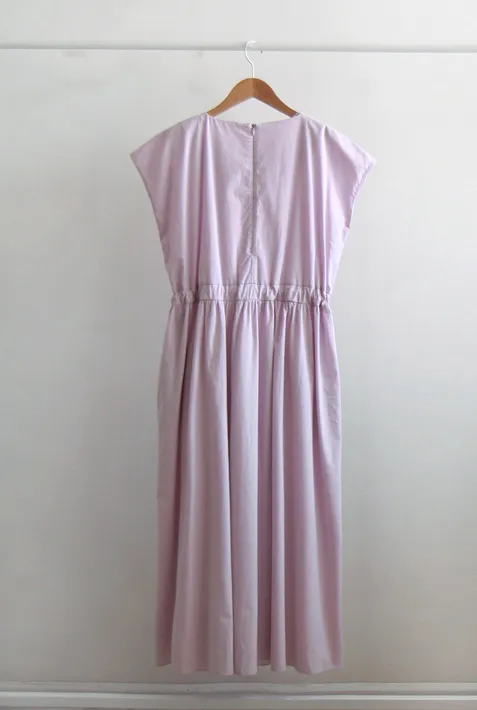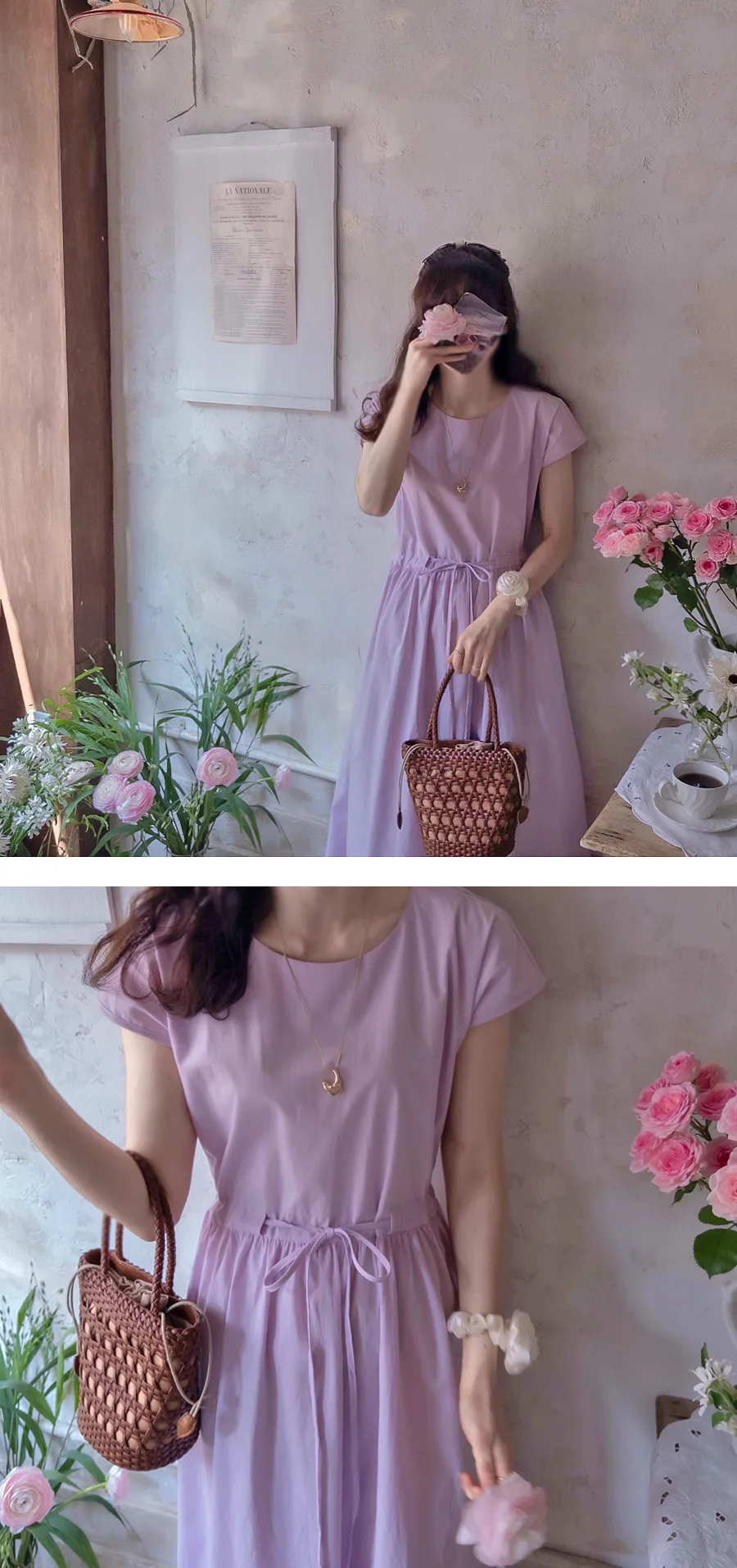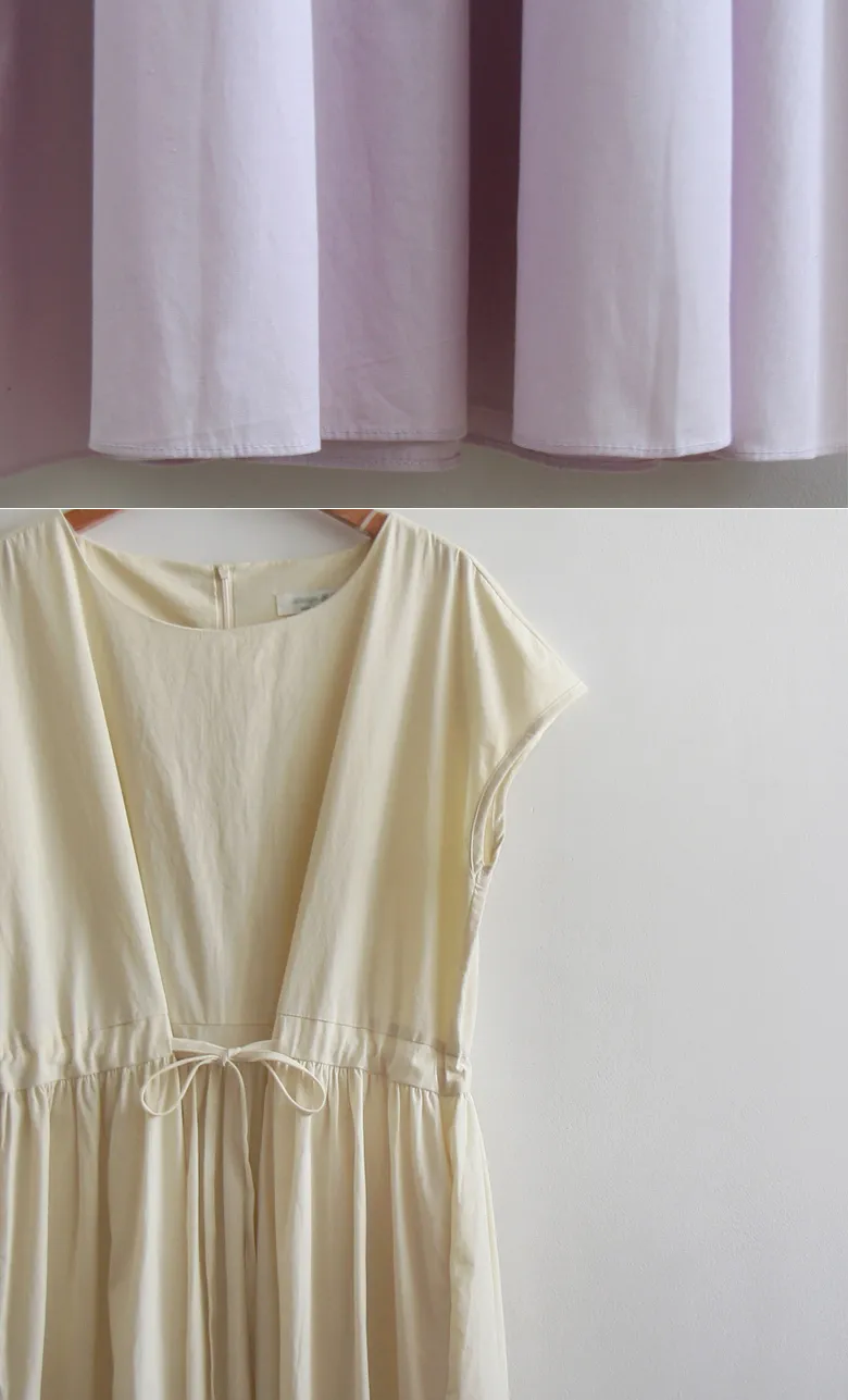 [後拉鍊結構] [面料堅韌有彈性,簡約可愛] [腰帶可調節:綁帶連接] [柔和色彩,優雅合身,充滿可愛情調的夏季連身裙] [在腰帶上系上蝴蝶結,完成貼身設計] [推薦作為時尚明亮的夏季連身裙]