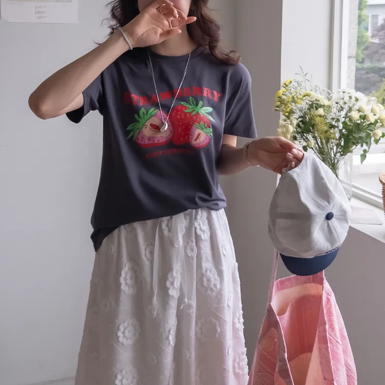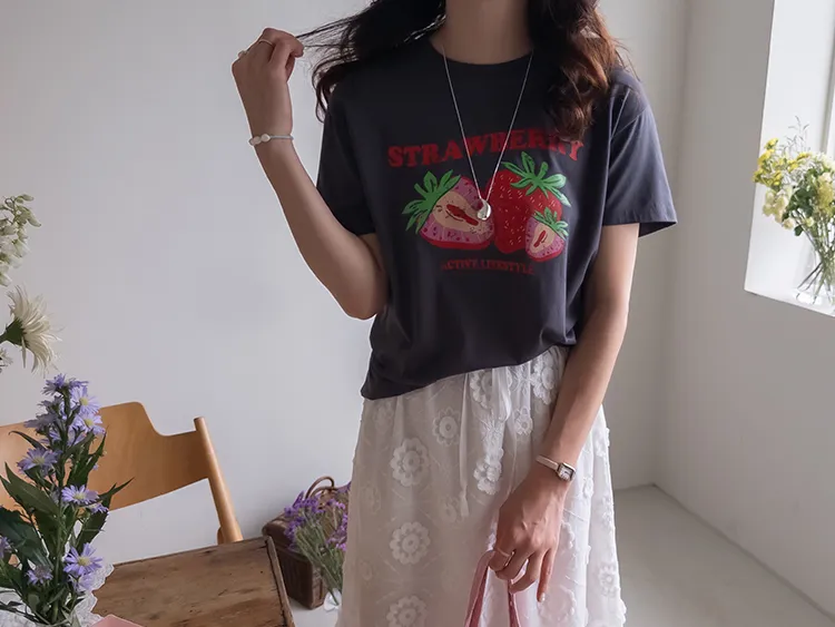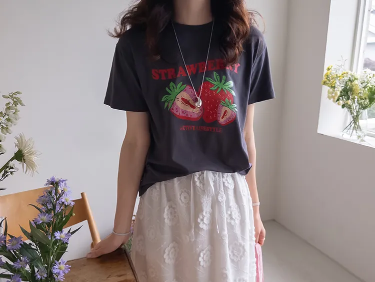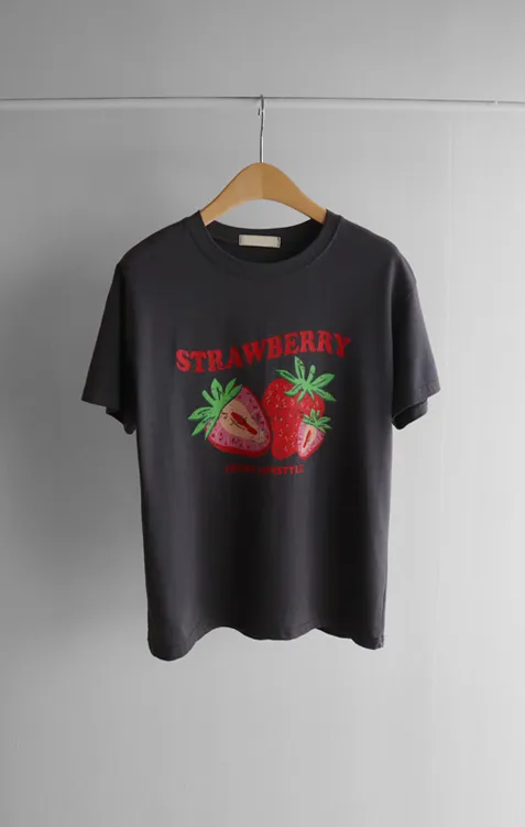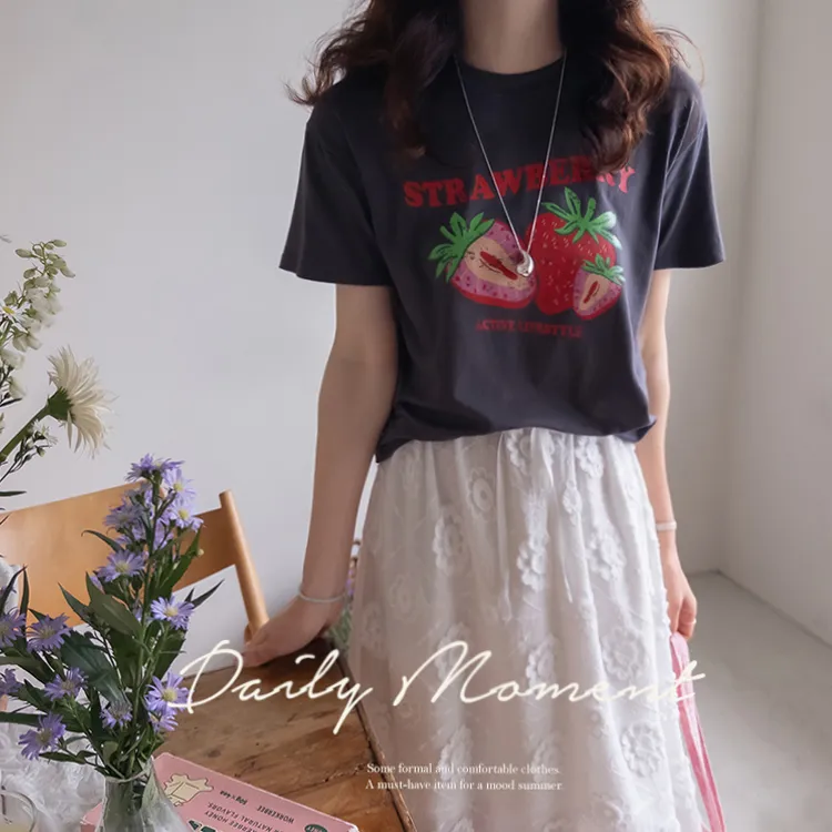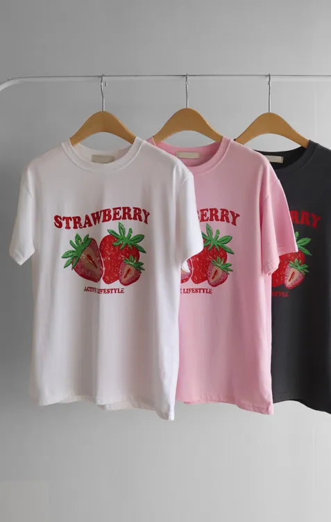 [清新!草莓短袖T♥】【含37%莫代爾! !柔軟~穿著舒適】【有彈性~氨綸】【適合各種造型的日常T卹】