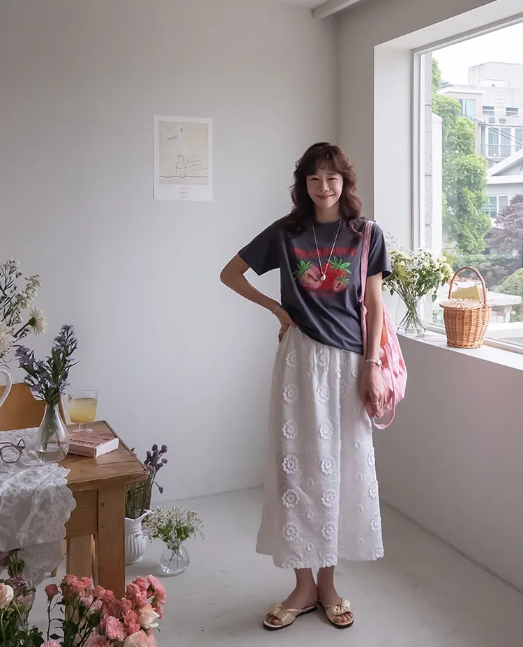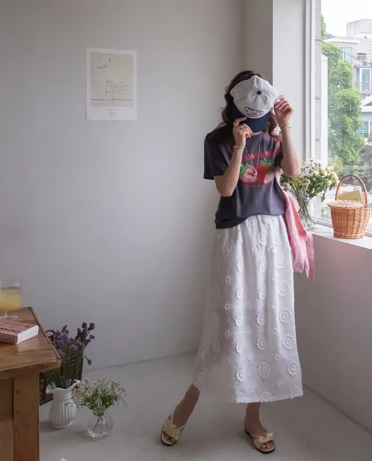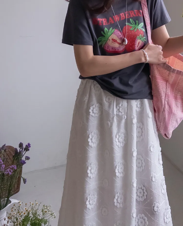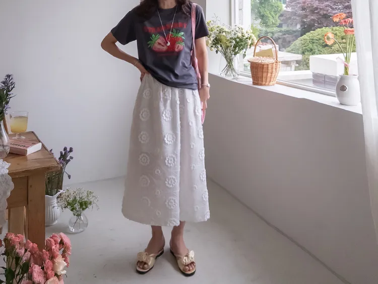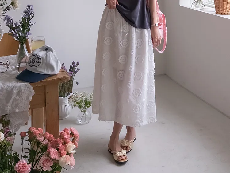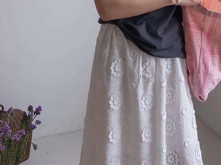 浪漫立體花朵刺繡腰綁帶A字剪裁中長裙