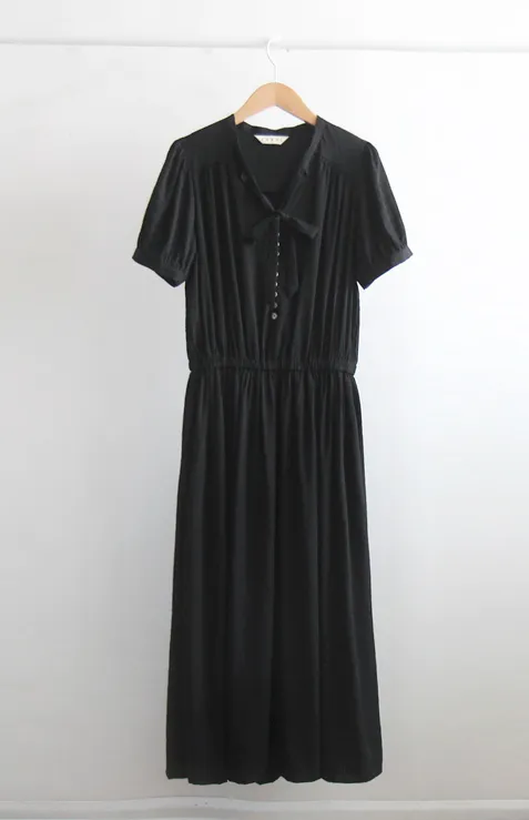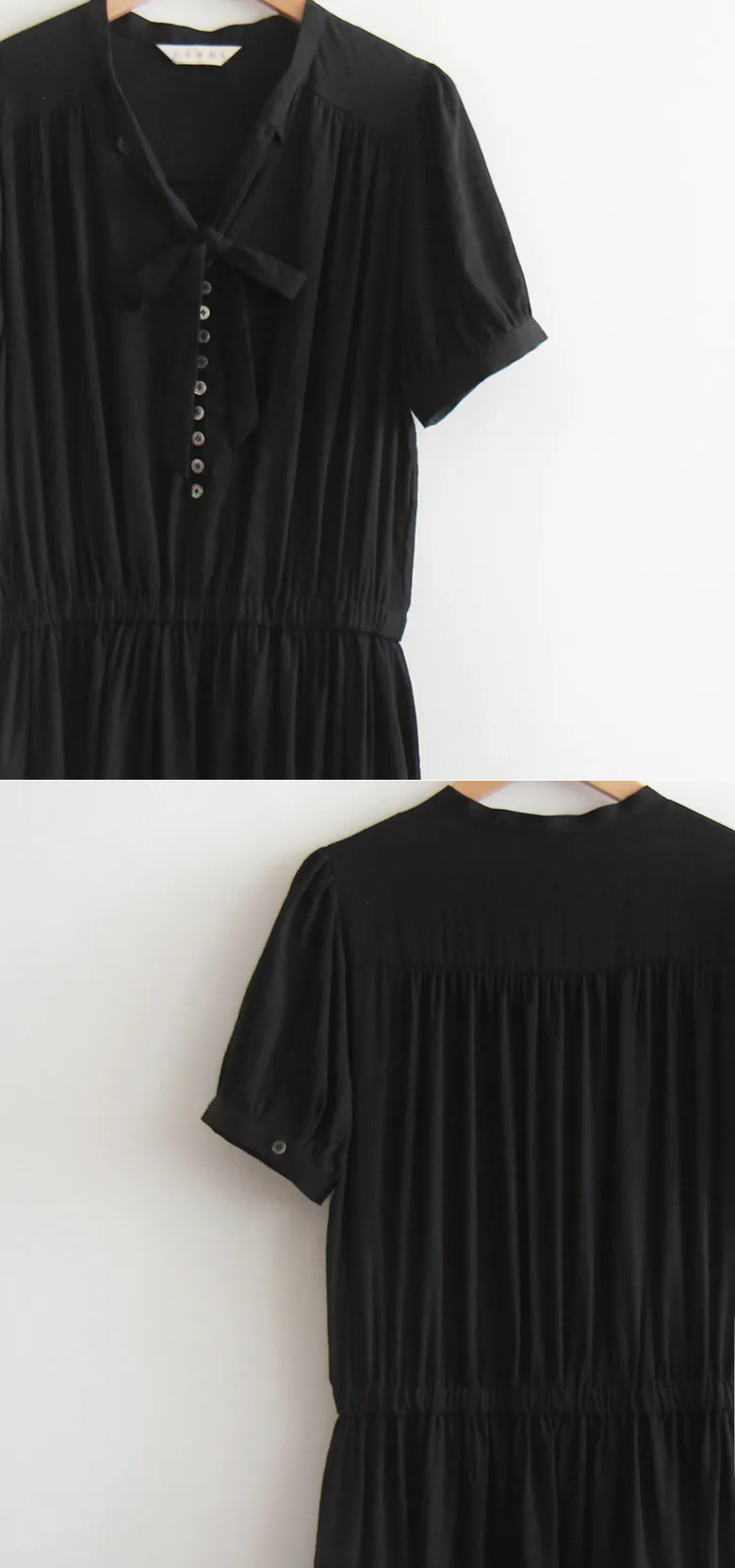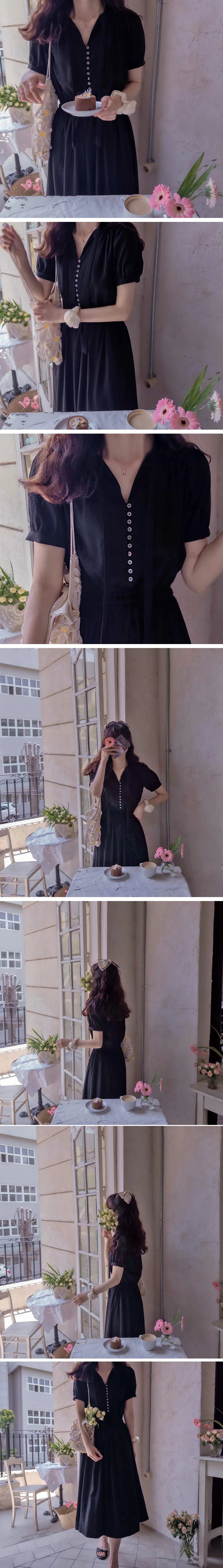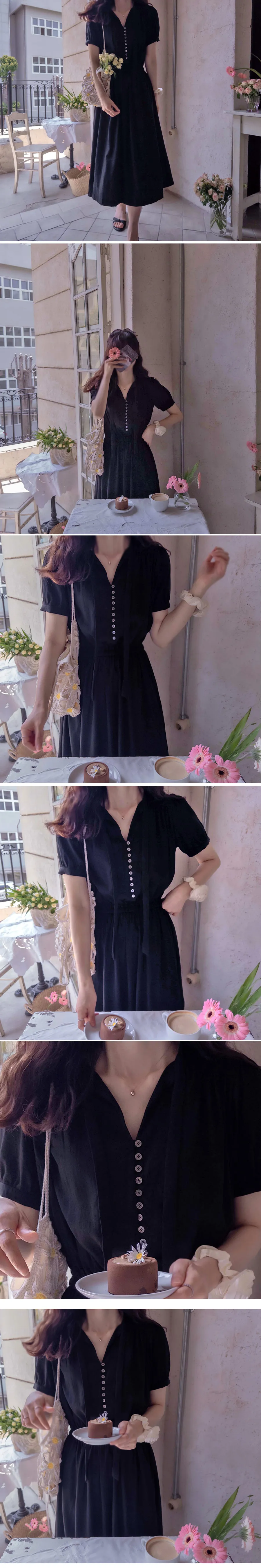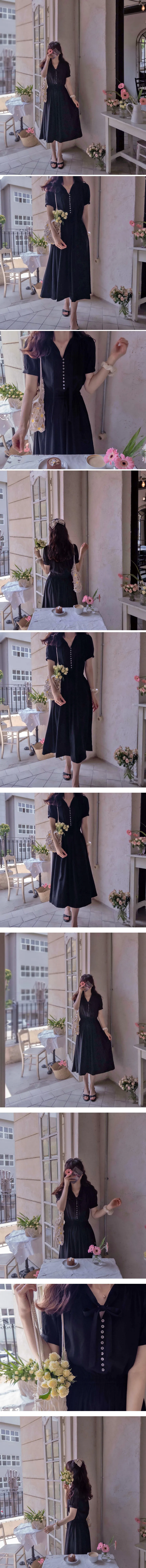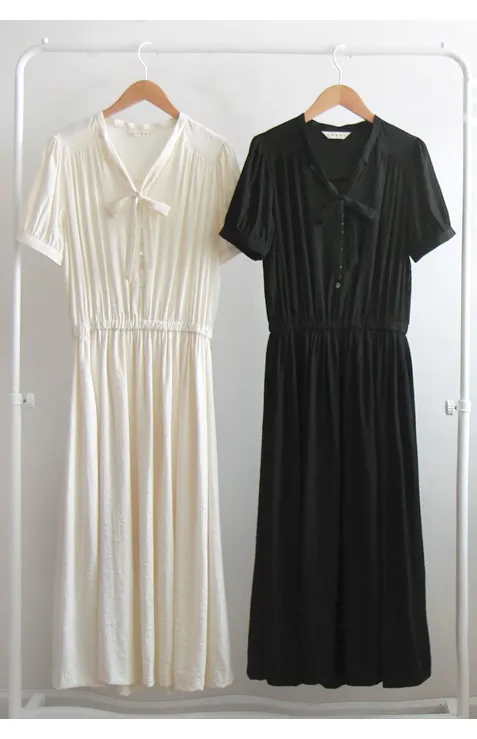 雅緻領口綁帶排扣設計腰部彈性修身柔軟連身裙