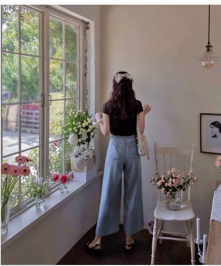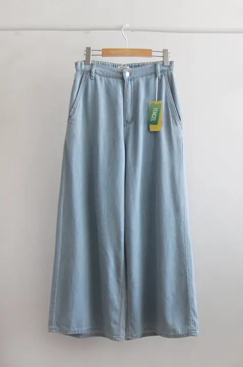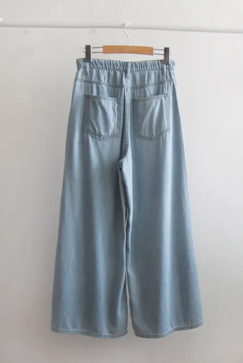 夏季柔軟舒適彈性垂墜牛仔寬裙褲