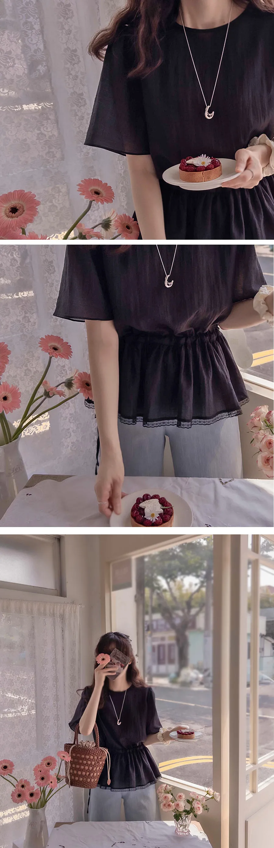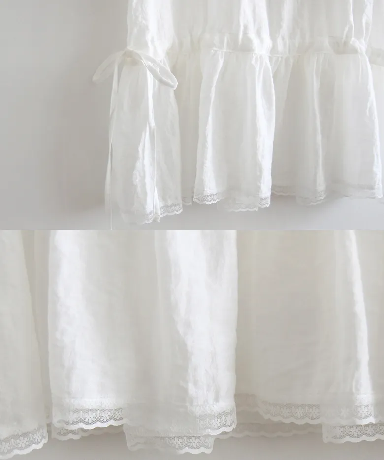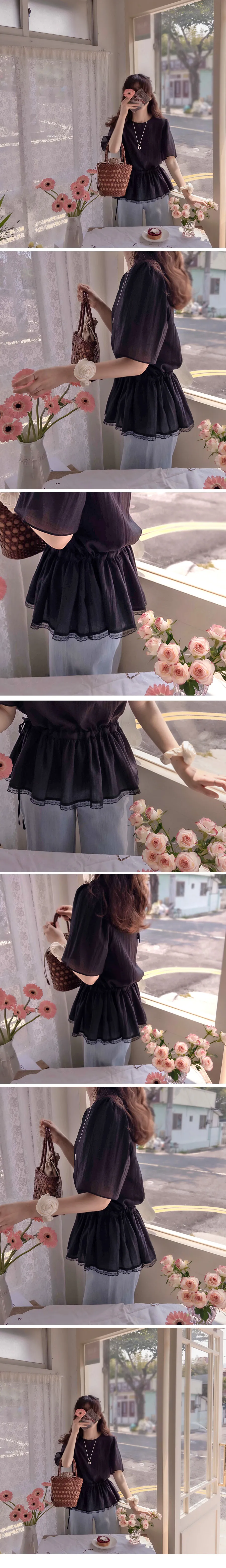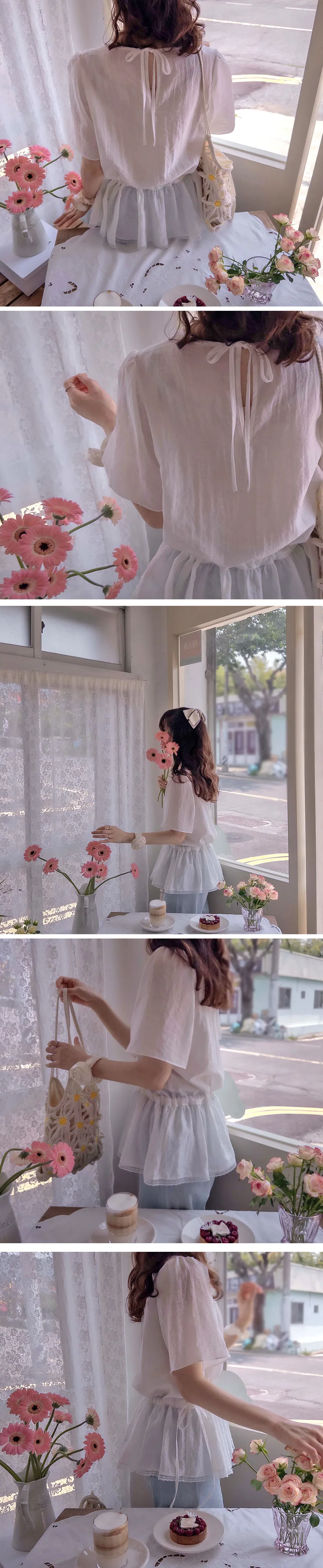 【下擺飾有漂亮波浪迷你花朵蕾絲的可愛上衣】【可依尺寸調整腰帶,繫上綁帶蝴蝶結更顯可愛】【繫在腰間