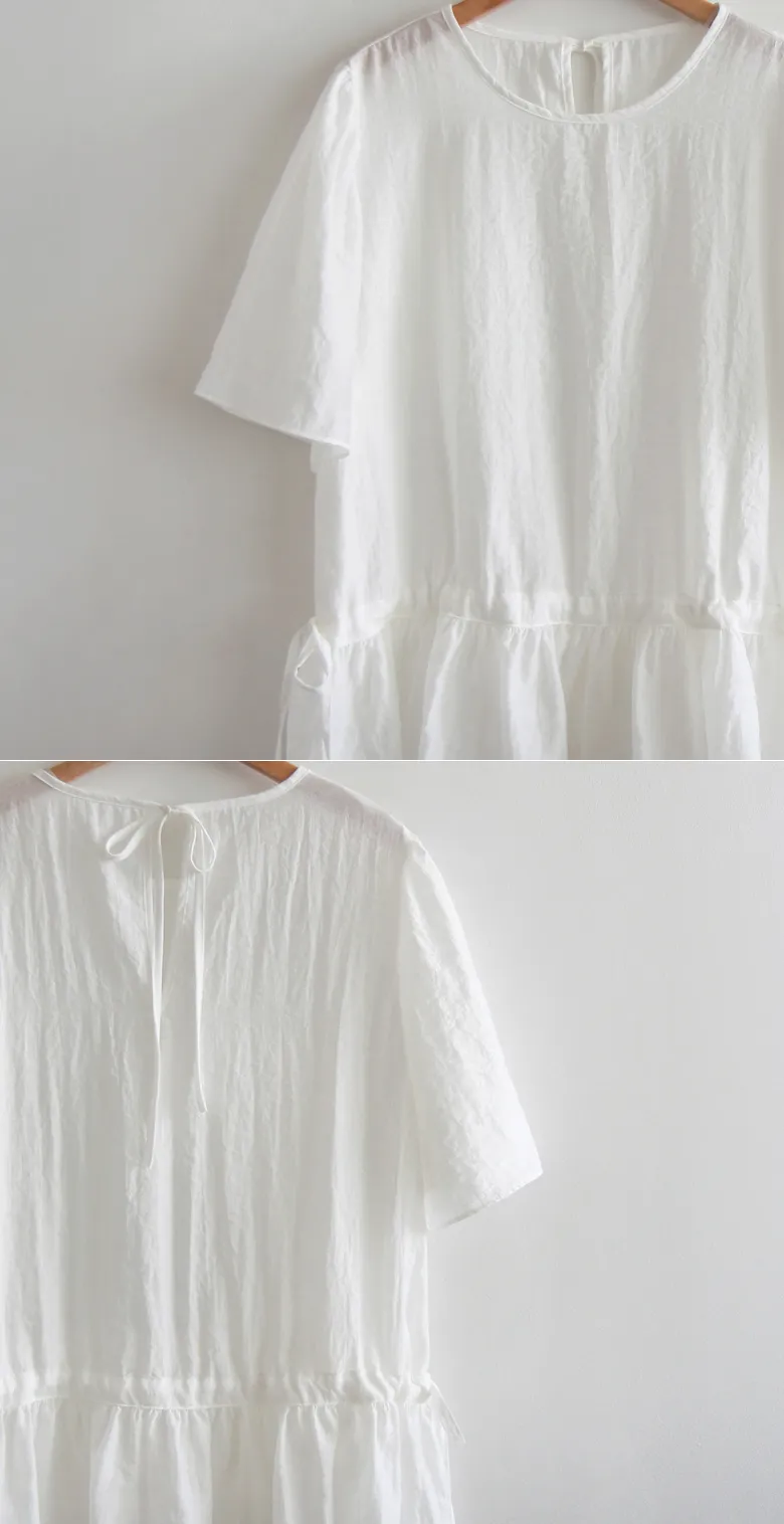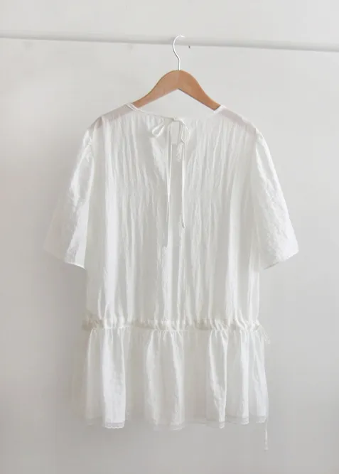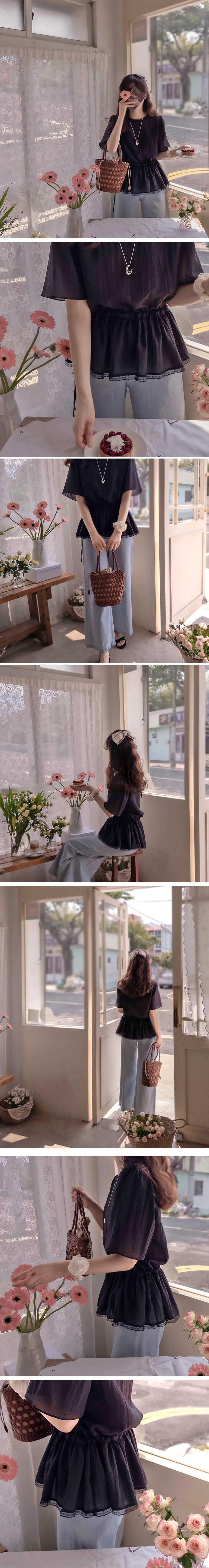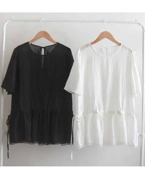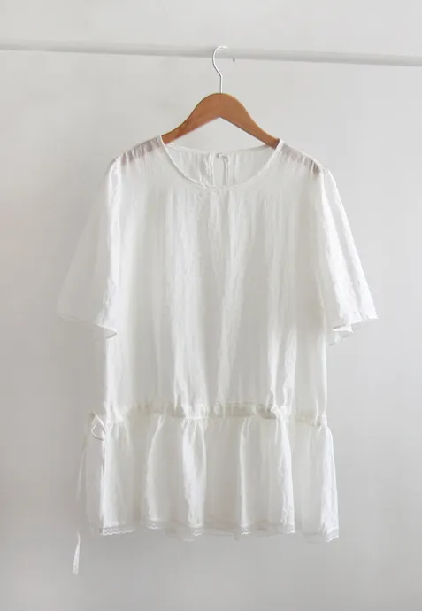 【下擺飾有漂亮波浪迷你花朵蕾絲的可愛上衣】【可依尺寸調整腰帶,繫上綁帶蝴蝶結更顯可愛】【繫在腰間