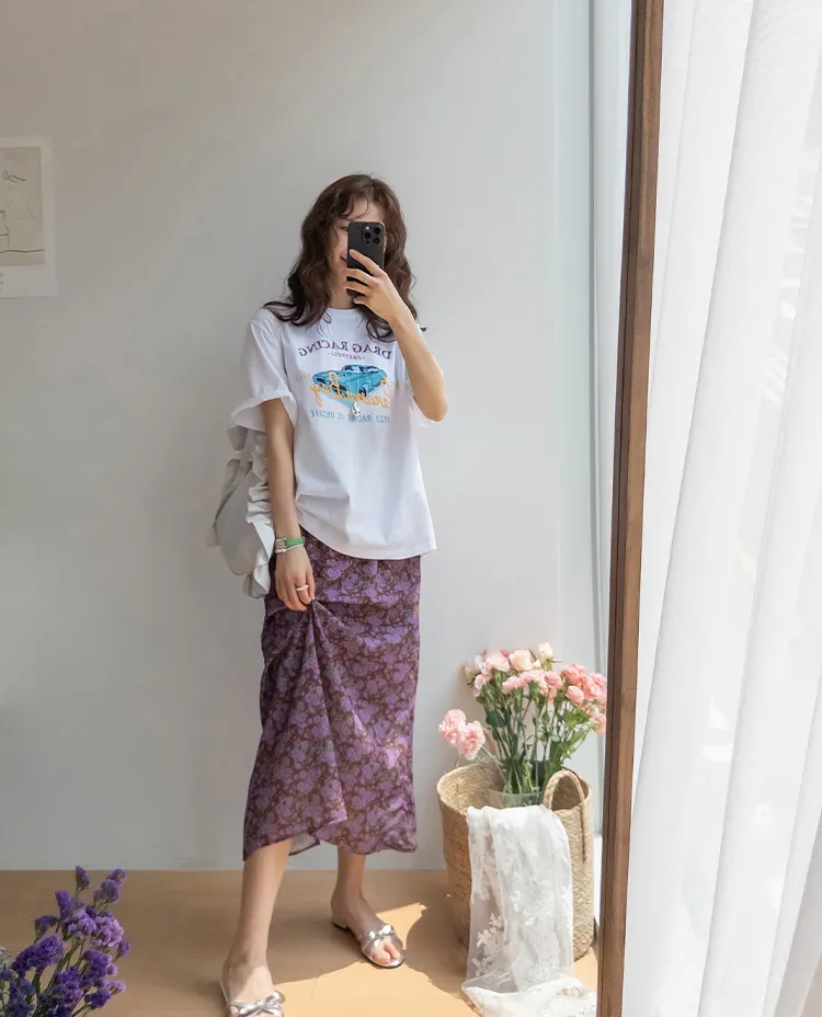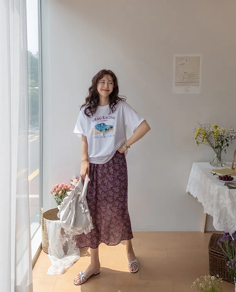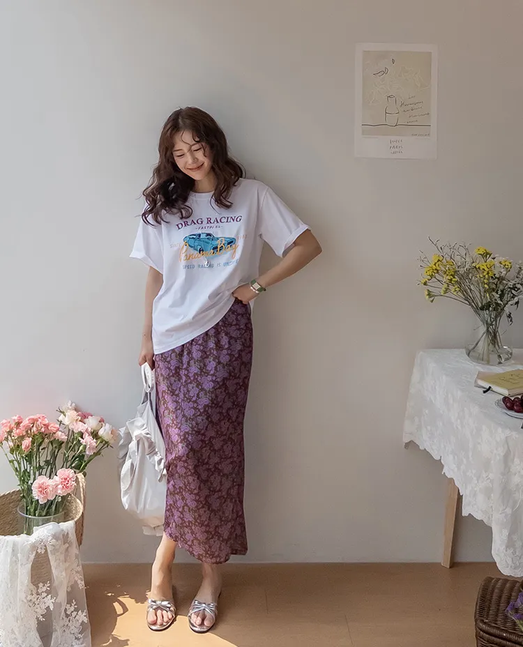 休閒風格賽車印花寬鬆版型穿搭上衣