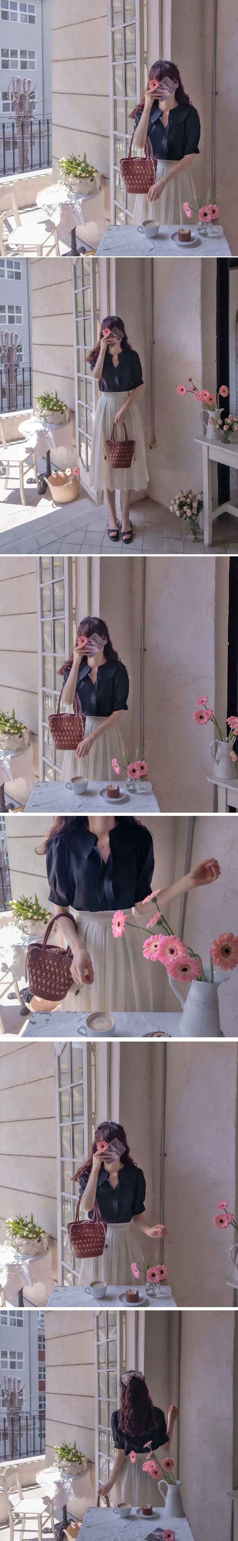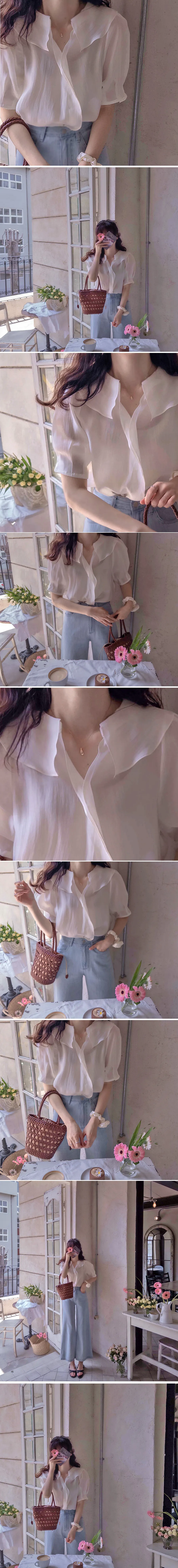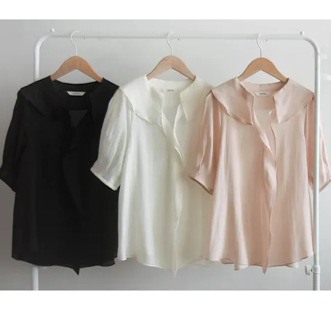 柔美波浪領袖末針褶摺邊短袖上衣 現貨黑