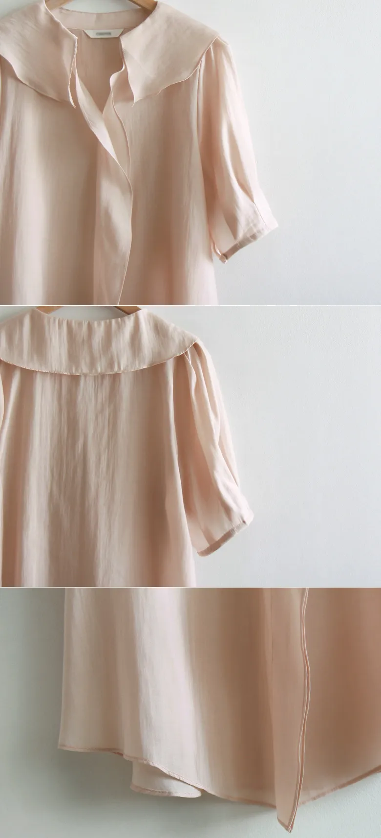 【天絲含量85%的奢華夏季上衣】 【品牌品質】 【可愛奢華的氣息】 【身體中央的波浪裝飾十分可愛】 【像花瓣一樣微微捲曲的衣領是亮點】 【袖子採用奢華的褶襉設計】