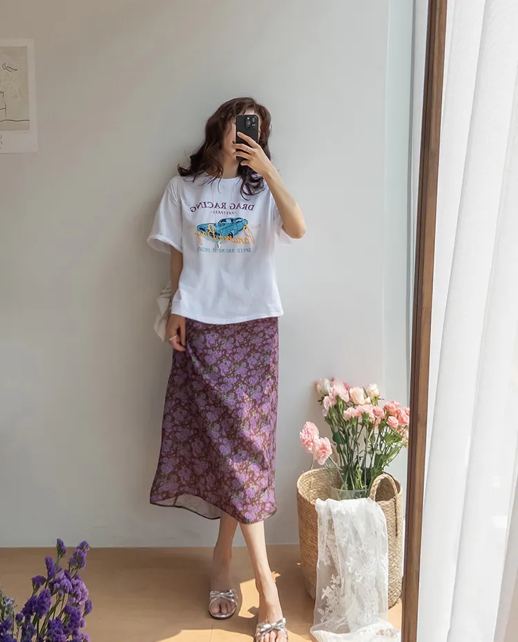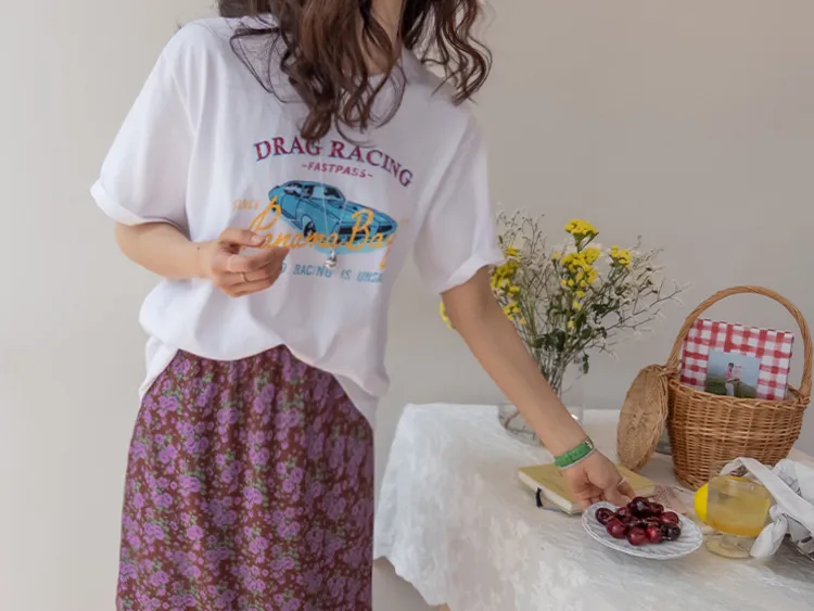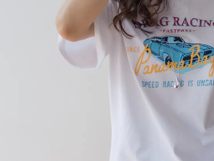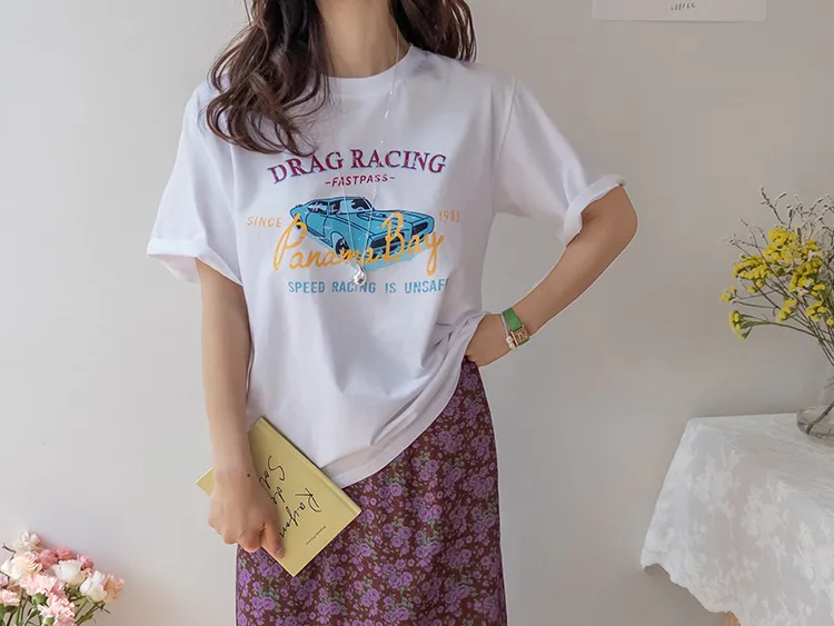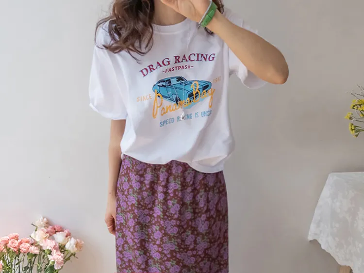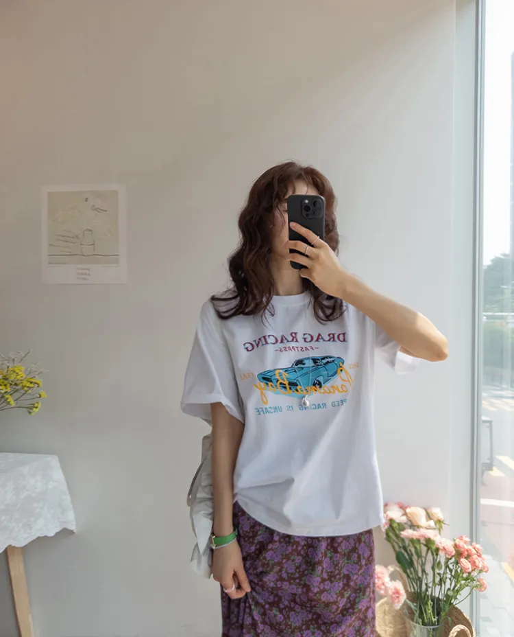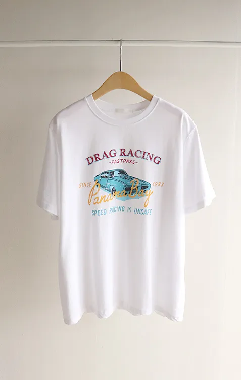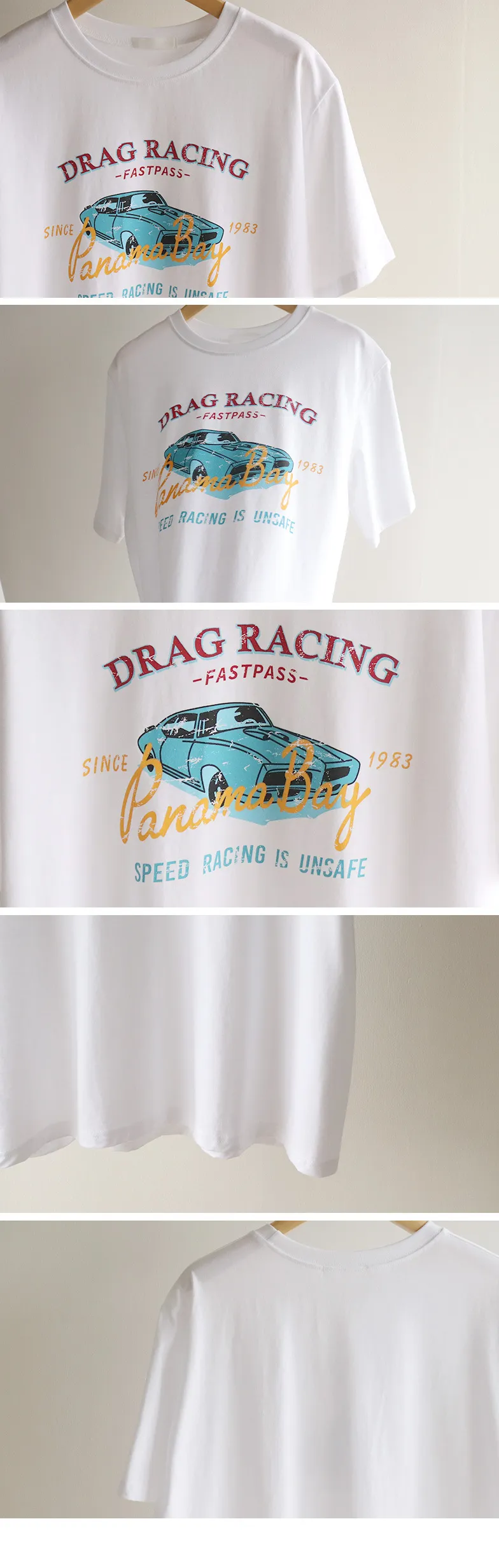 休閒風格賽車印花寬鬆版型穿搭上衣