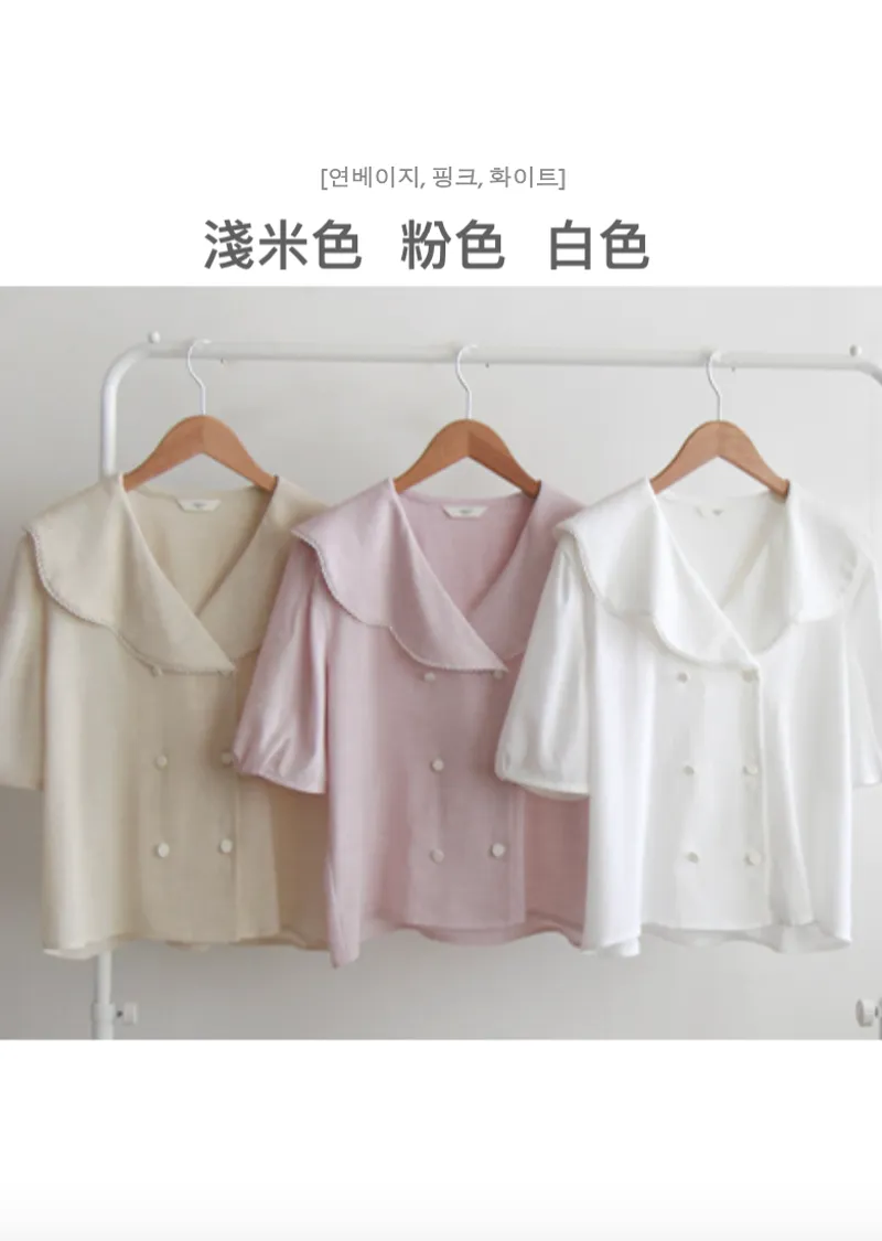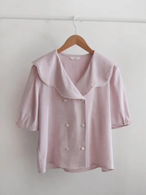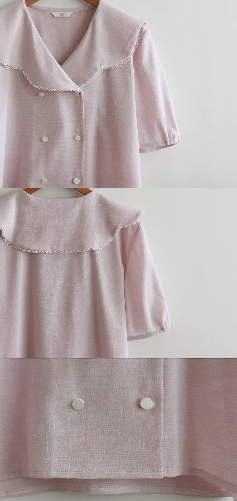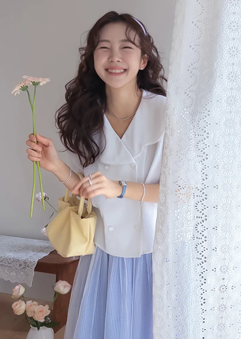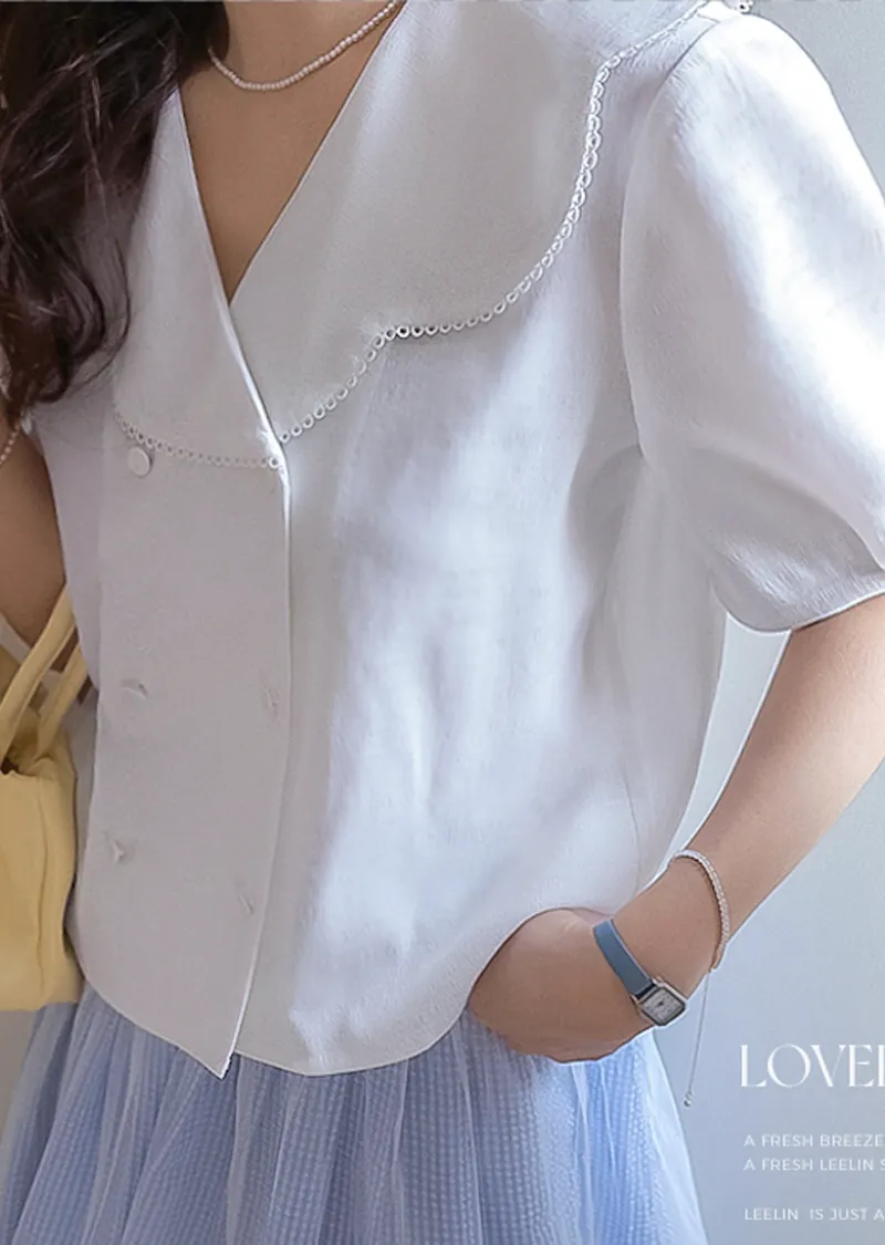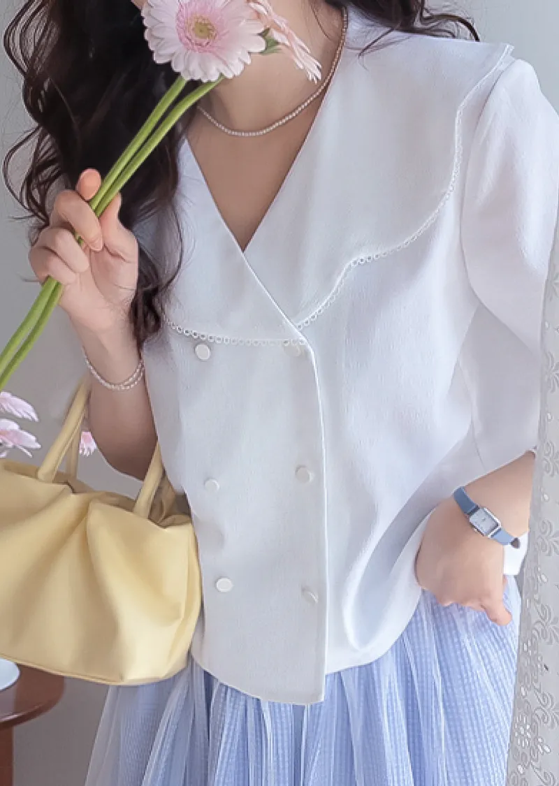 可愛迷你蕾絲飾邊波浪領雙排扣上衣