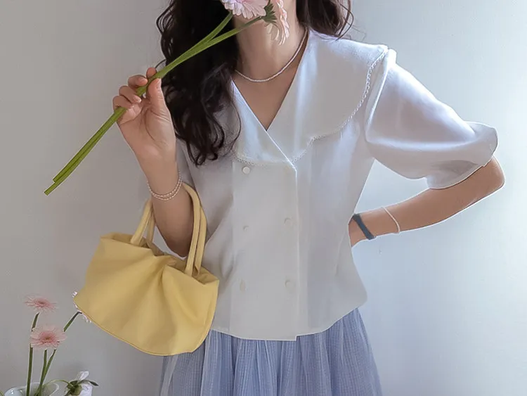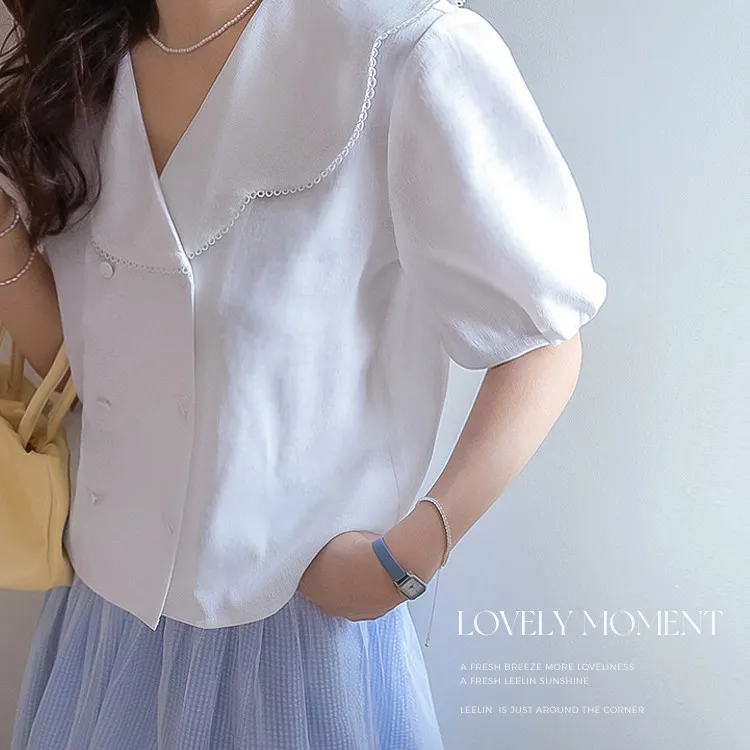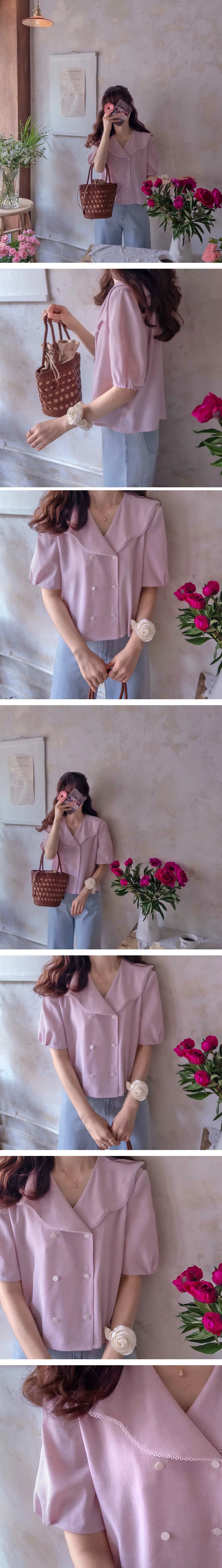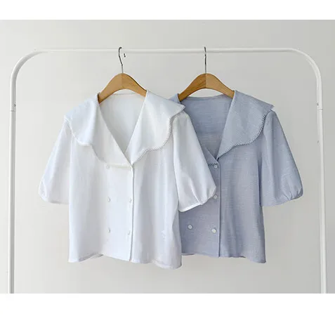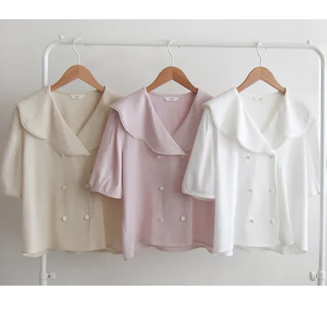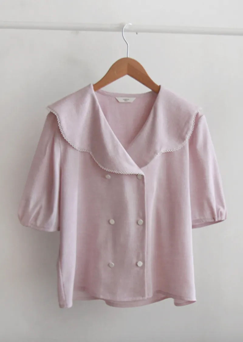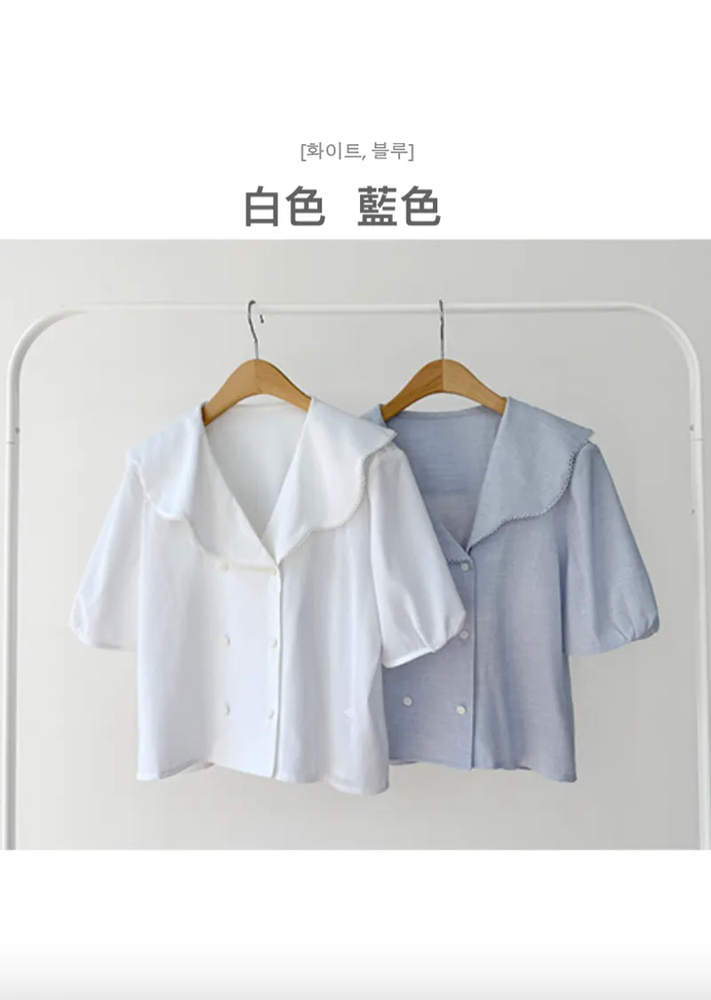 可愛迷你蕾絲飾邊波浪領雙排扣上衣