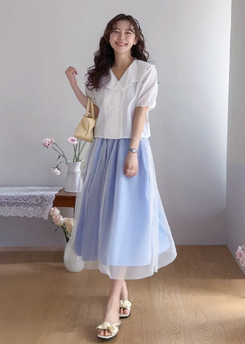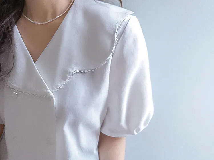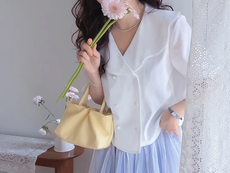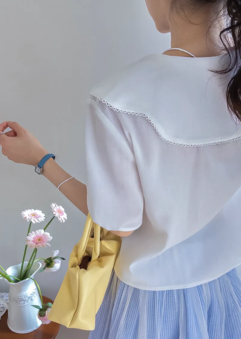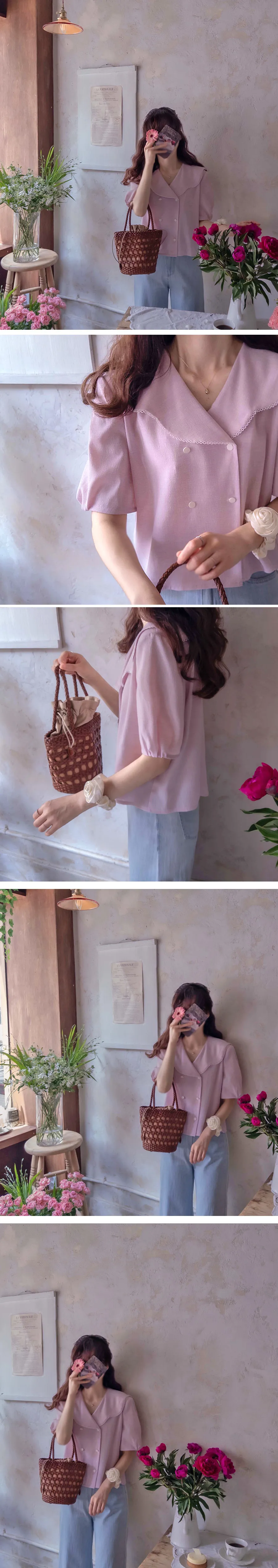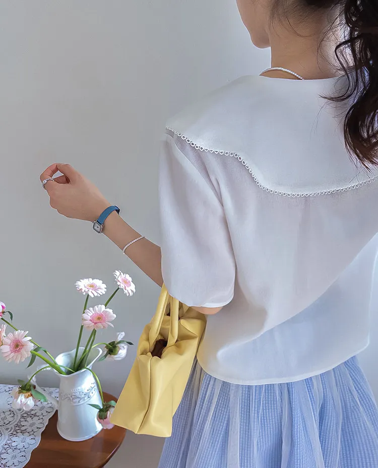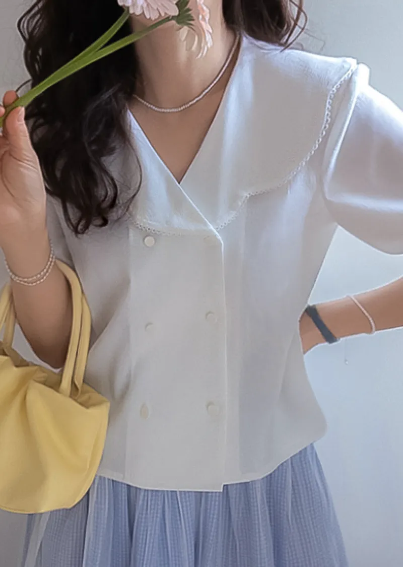 可愛迷你蕾絲飾邊波浪領雙排扣上衣