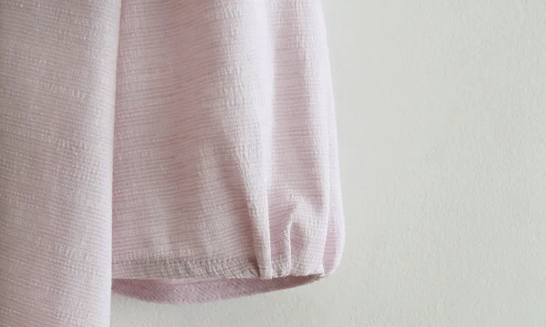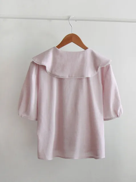 【亞麻3%、人造絲14%的清涼面料】 【飾有可愛波浪迷你蕾絲的夏季上衣】 【雙鈕扣帶來活潑的氛圍】 【明亮色彩帶來清新的氛圍】 【袖口處精緻的褶皺營造出優雅的氛圍】