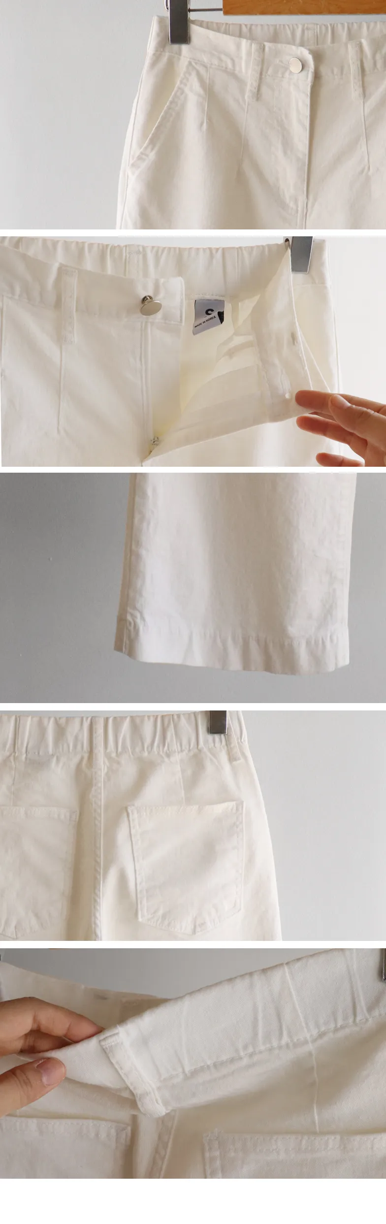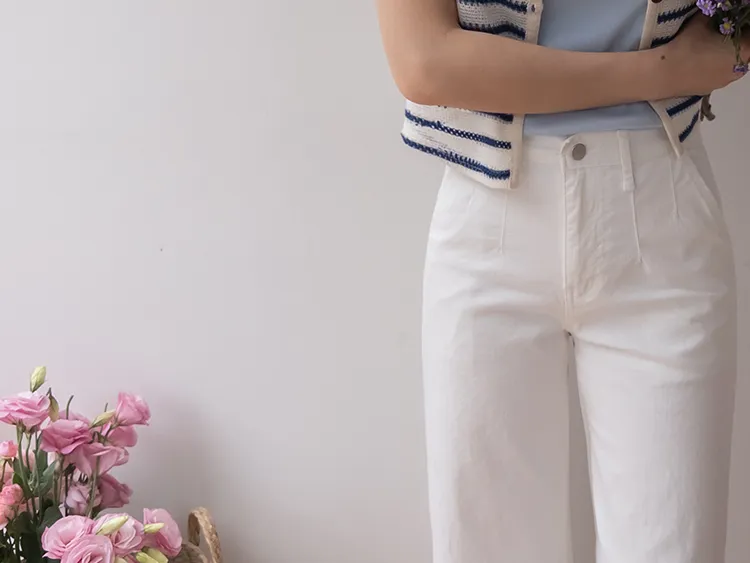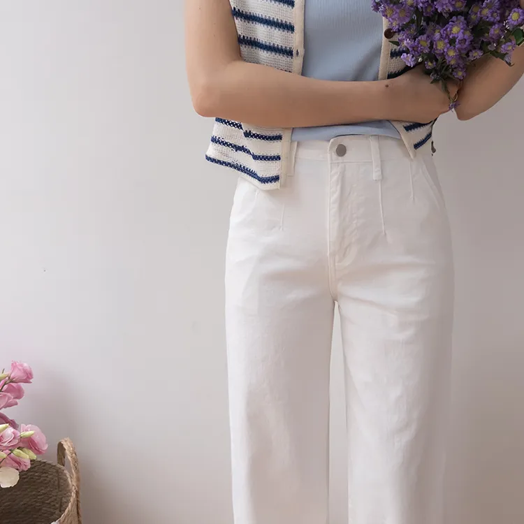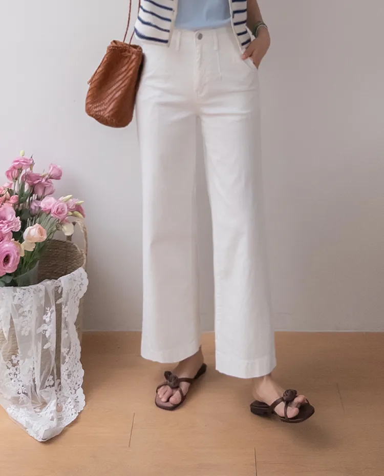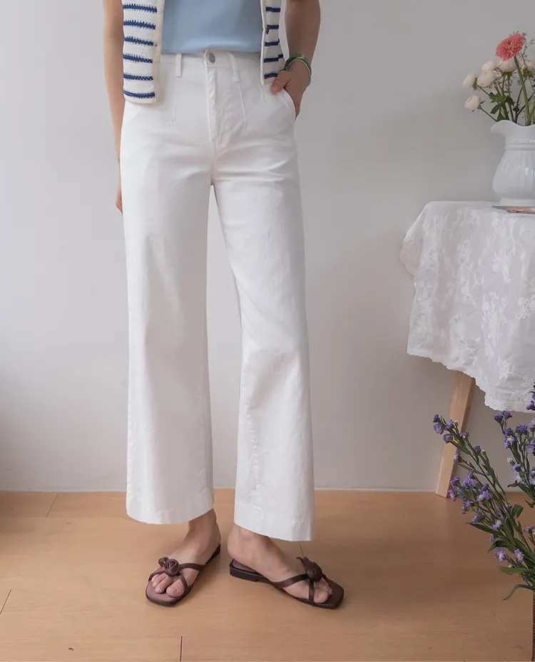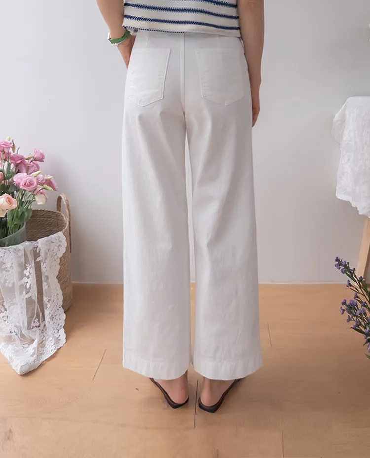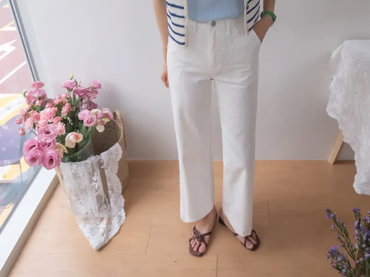 [腰線褶襉設計,打造自然的褲子♥] [像起司一樣有彈性的休閒褲] [清新褲長] [舒適的腰部後彈性帶]