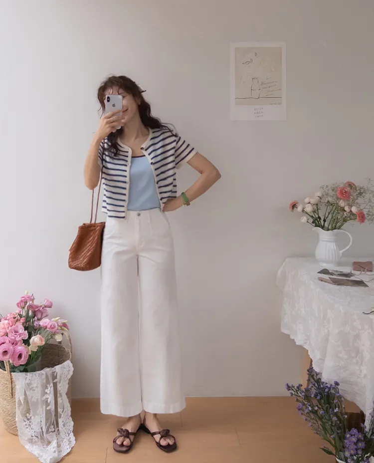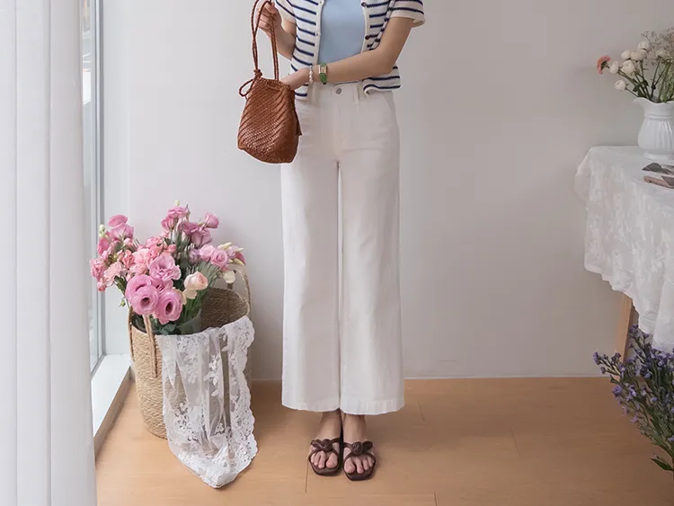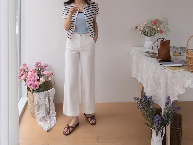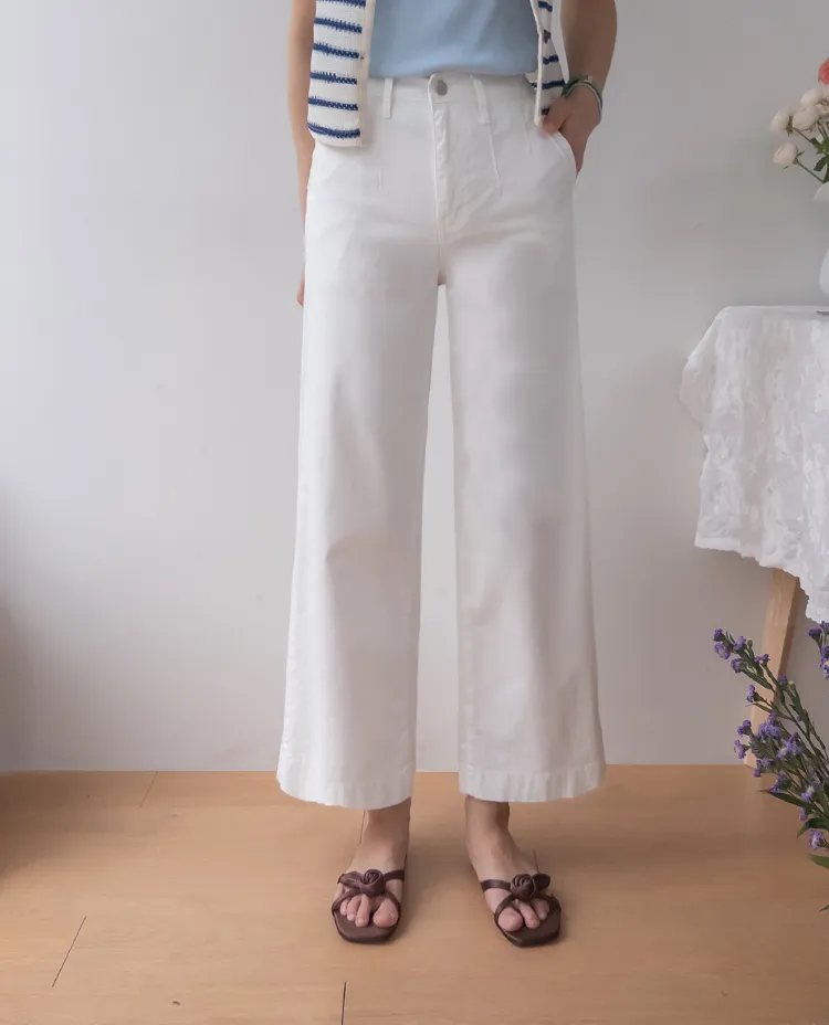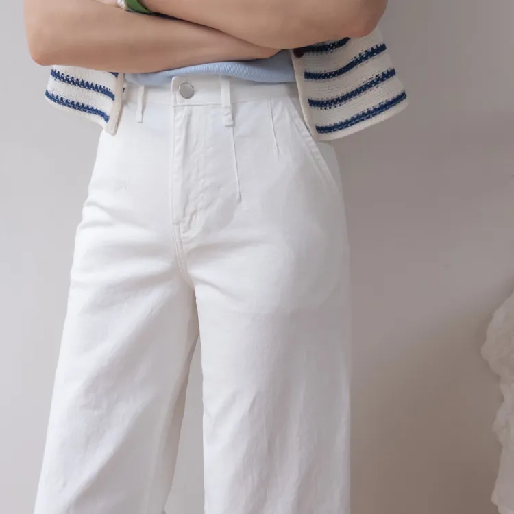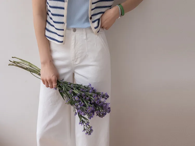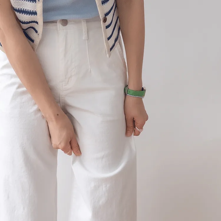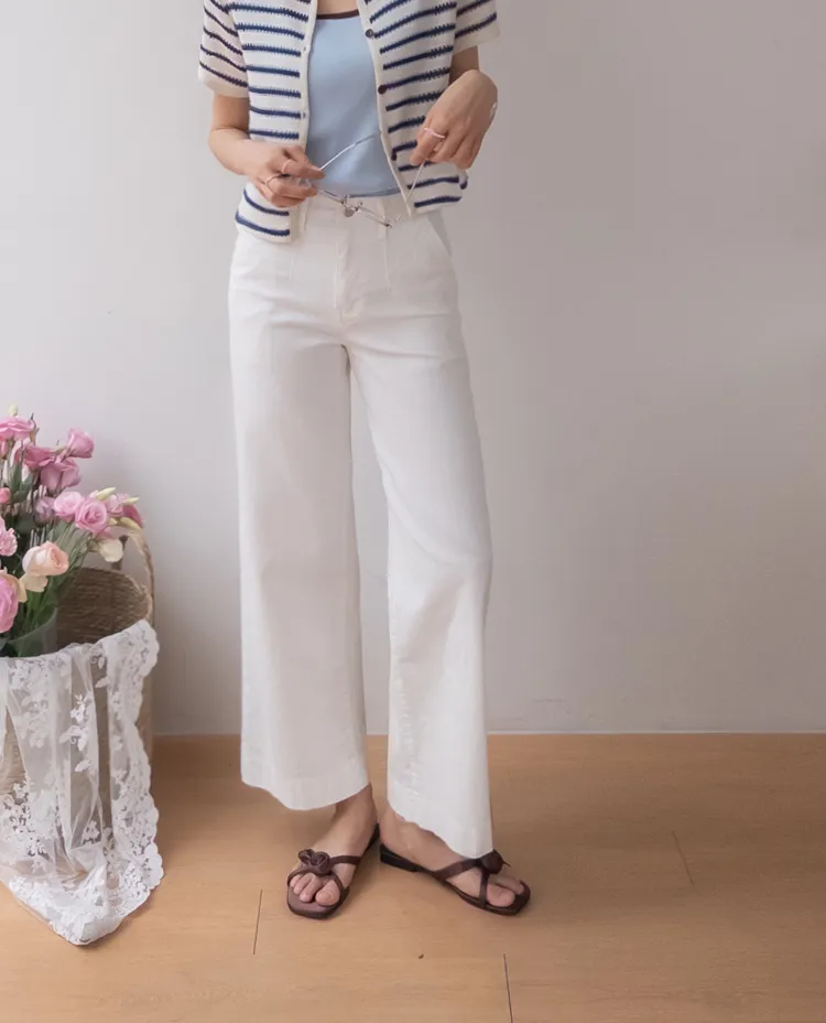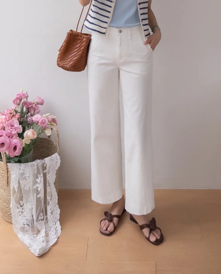 [腰線褶襉設計,打造自然的褲子♥] [像起司一樣有彈性的休閒褲] [清新褲長] [舒適的腰部後彈性帶]