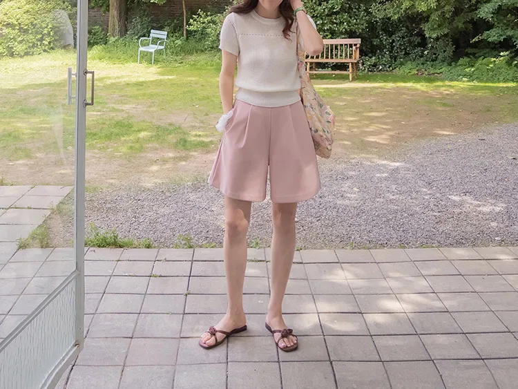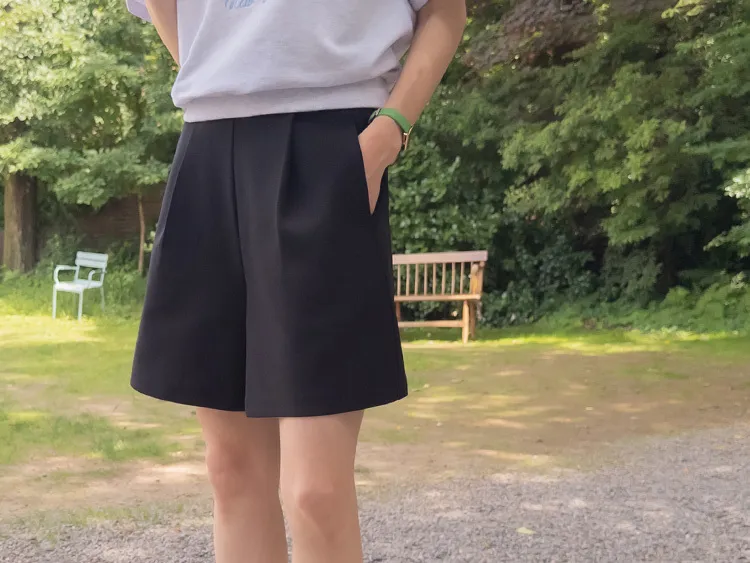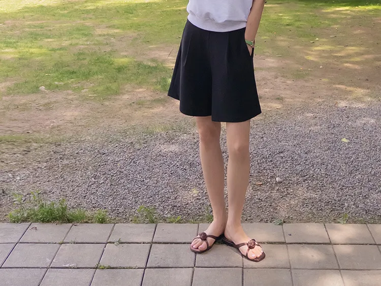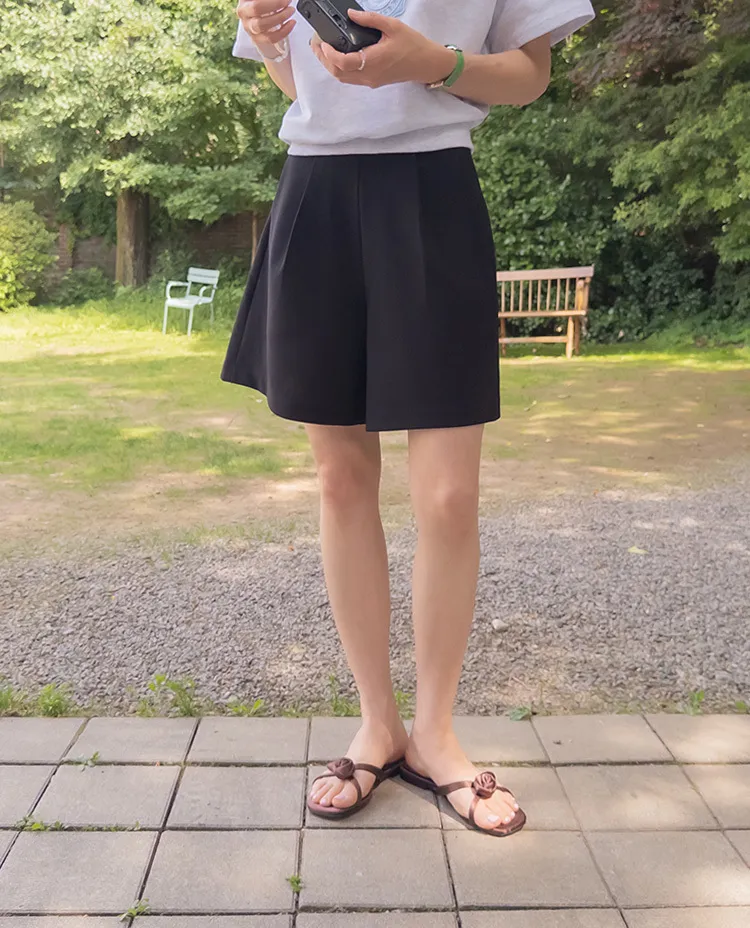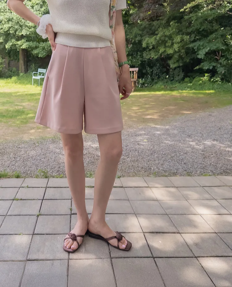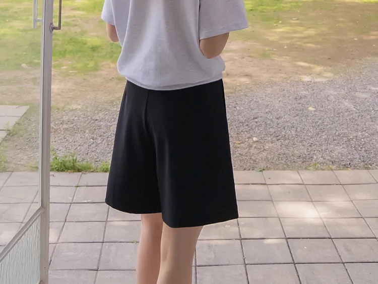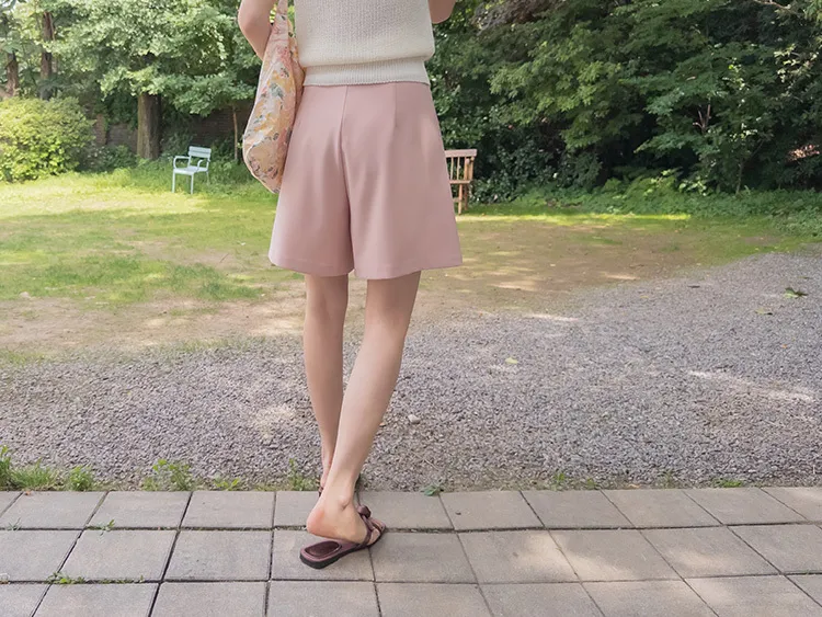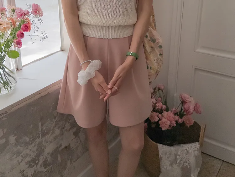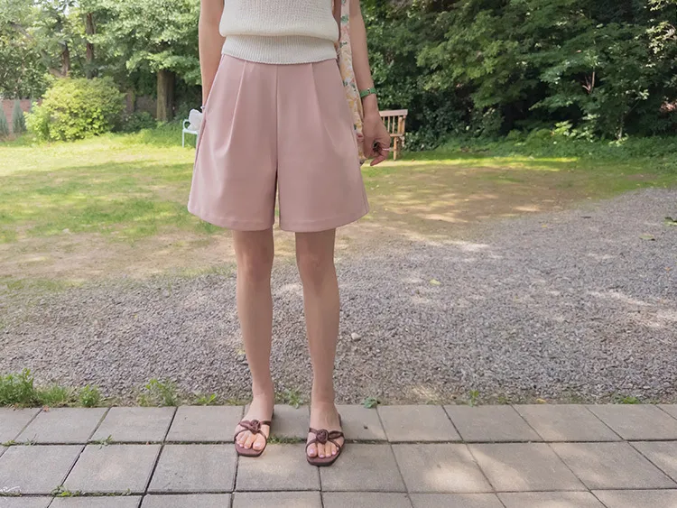 彈性舒適半A字剪裁寬腰束帶休閒短褲