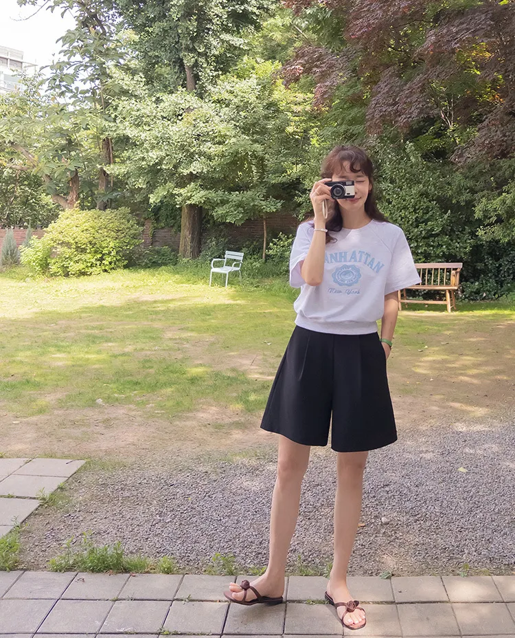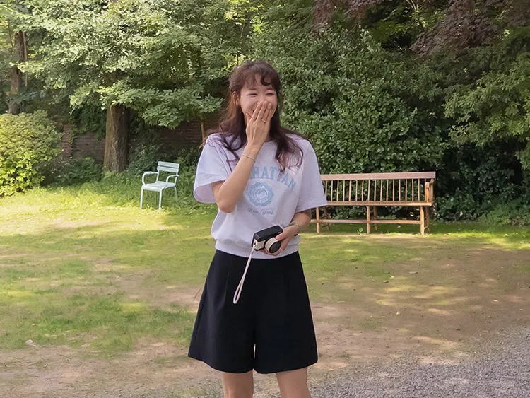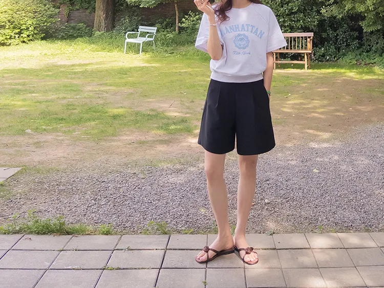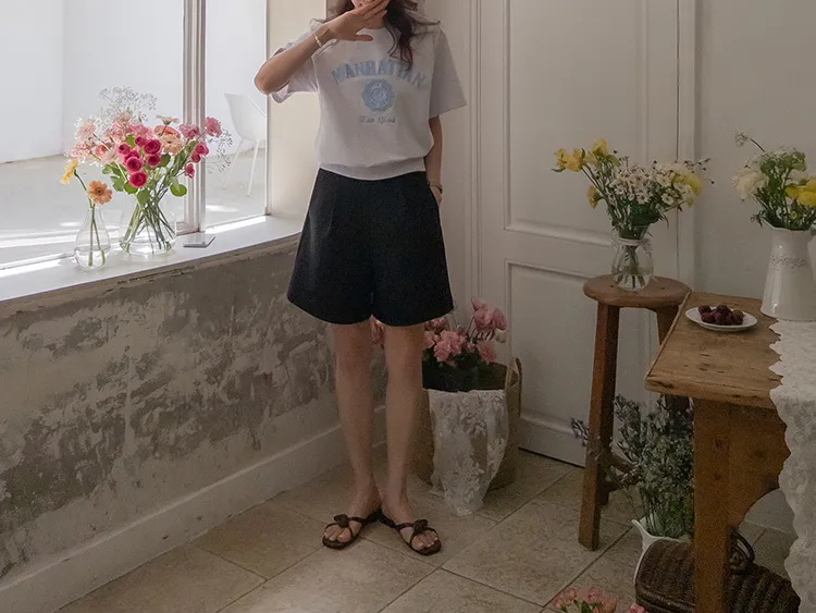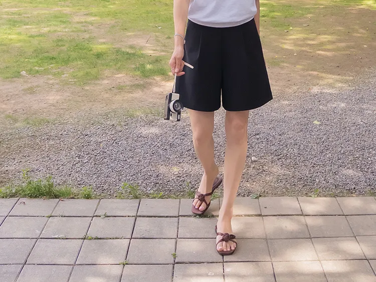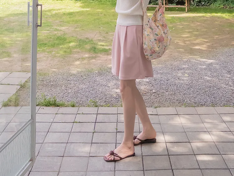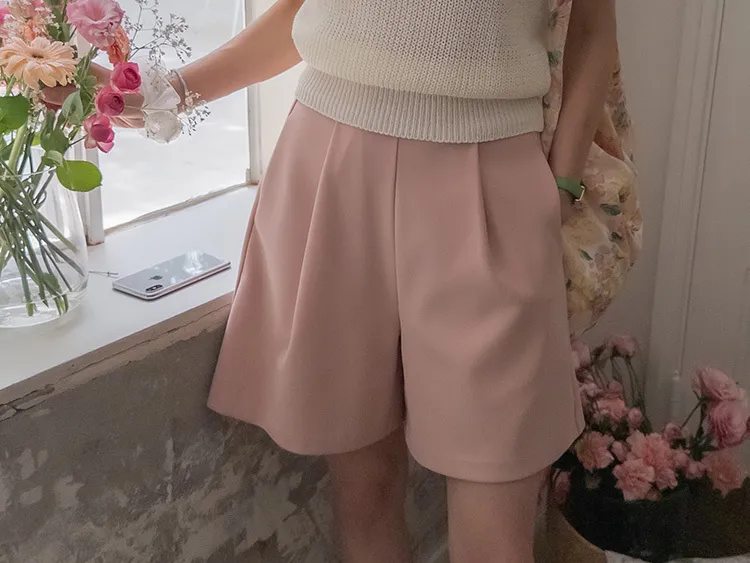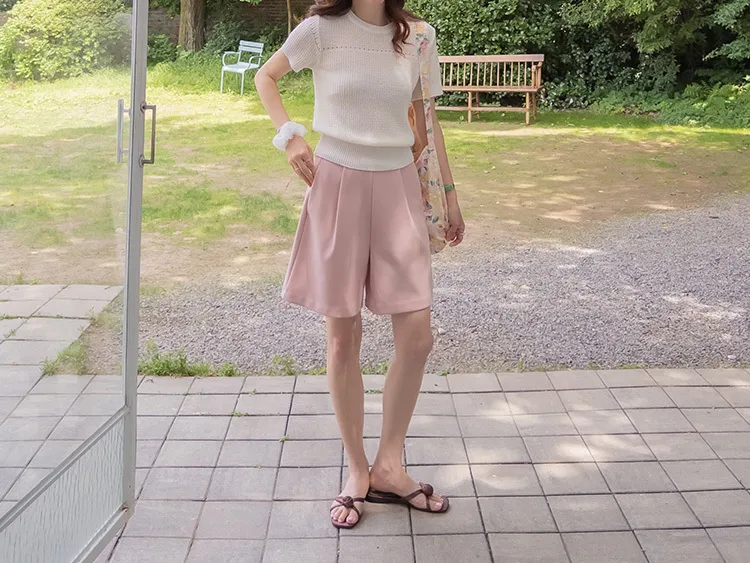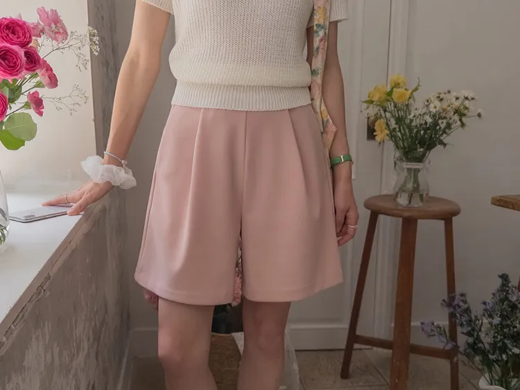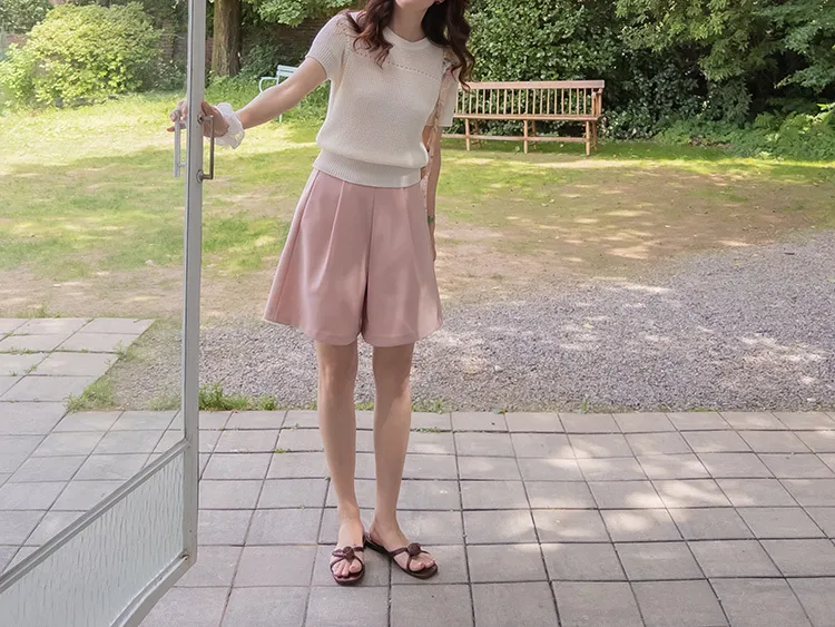 彈性舒適半A字剪裁寬腰束帶休閒短褲