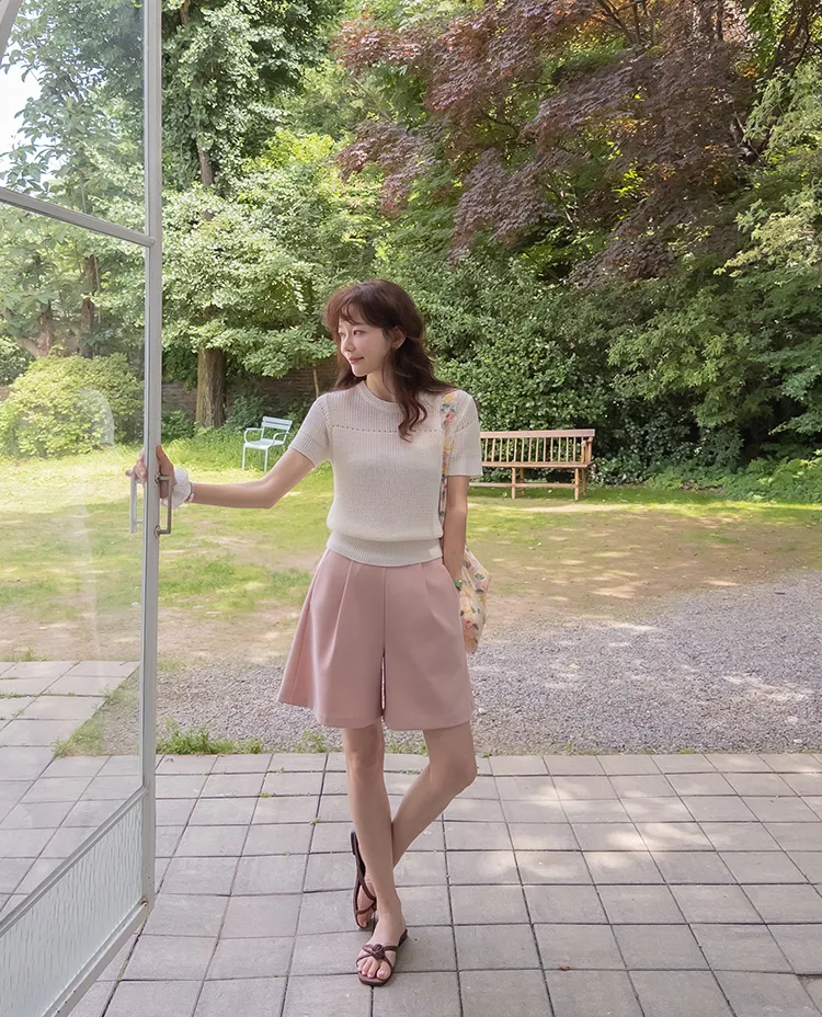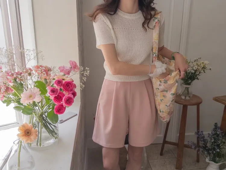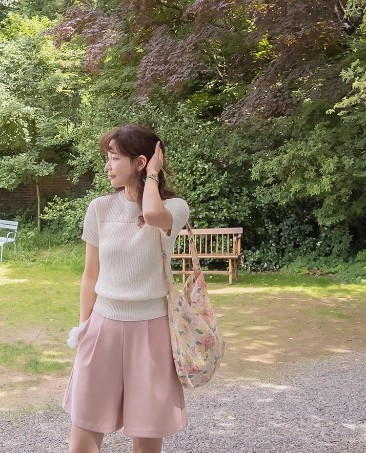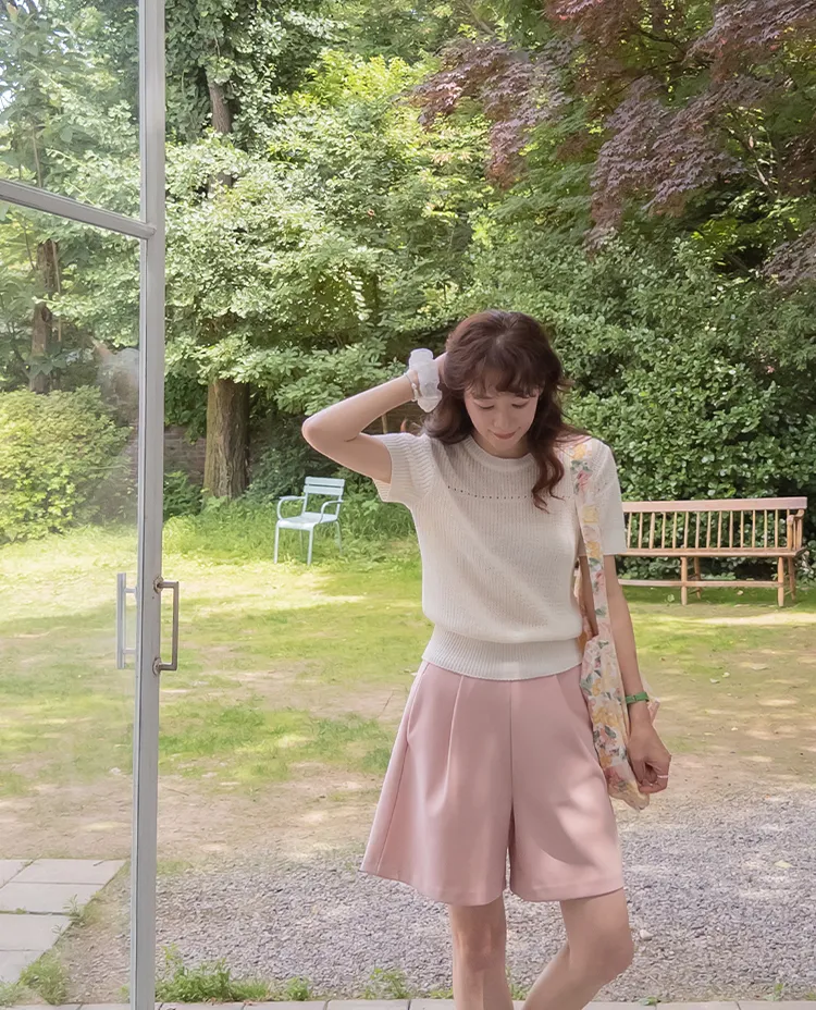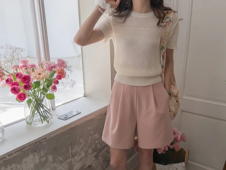 漂亮鏤空孔洞線條設計短袖針織上衣