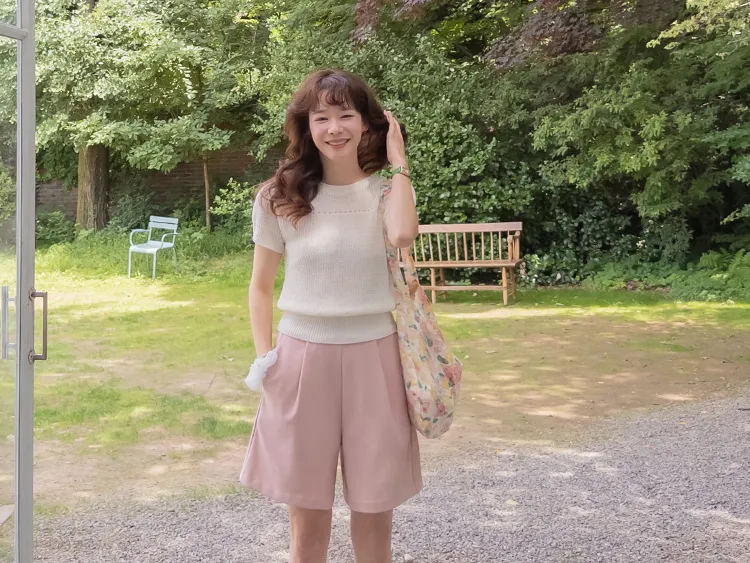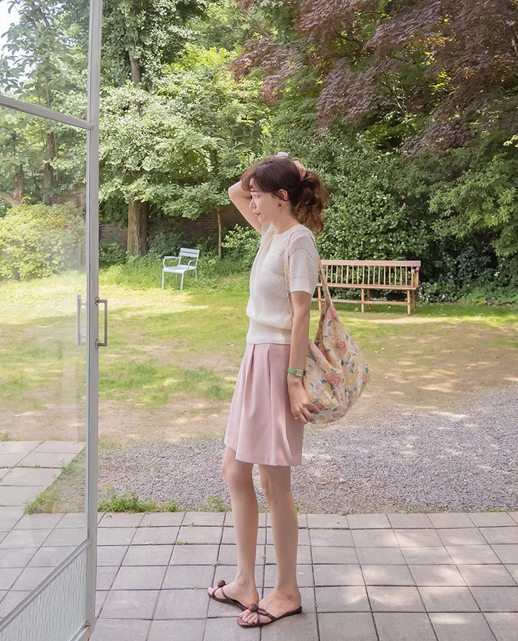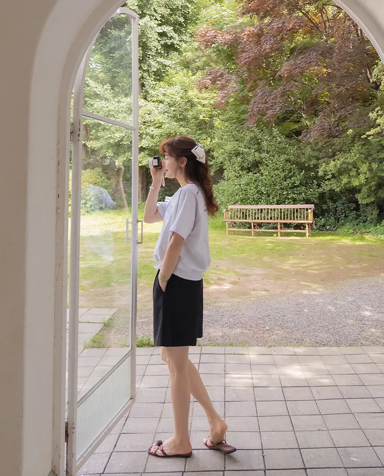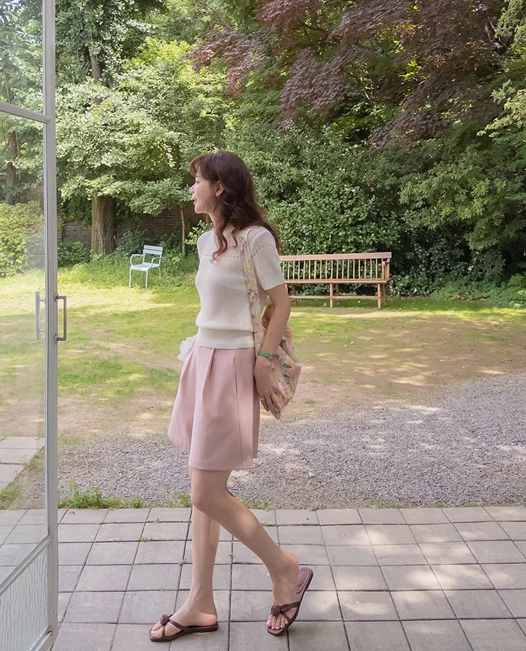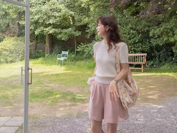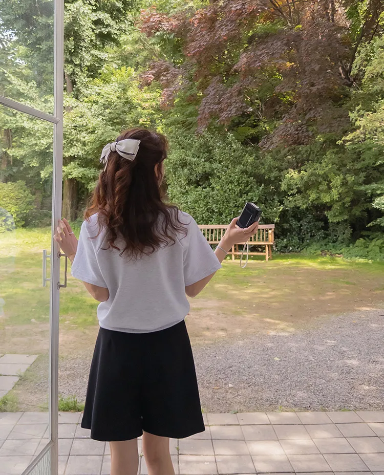 漂亮鏤空孔洞線條設計短袖針織上衣