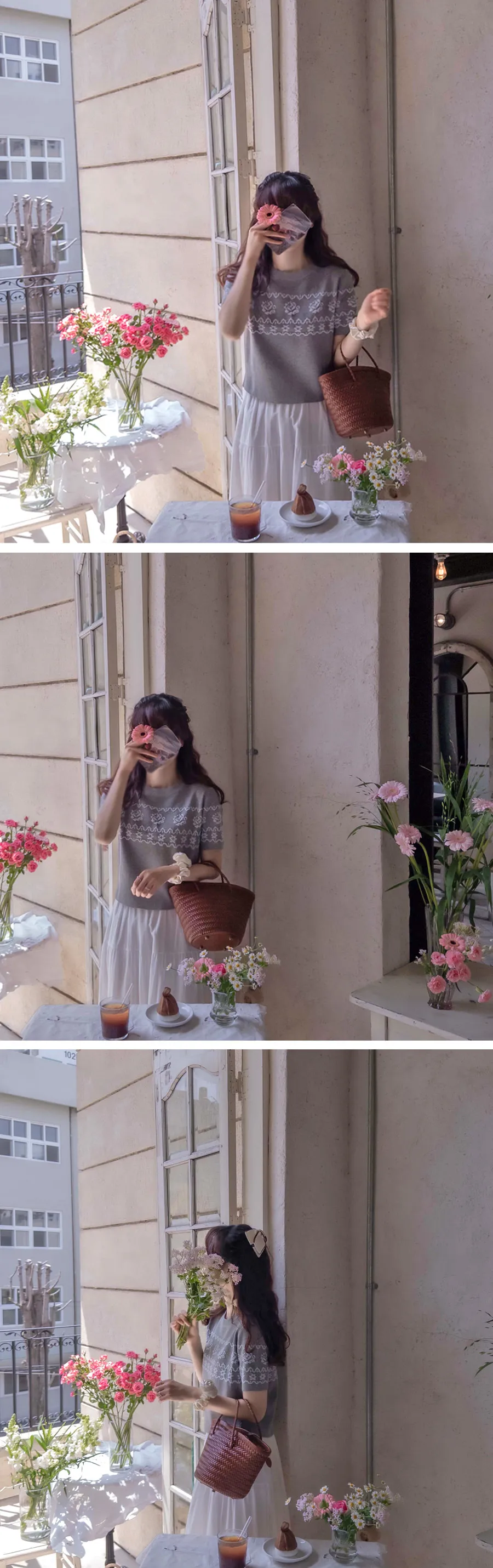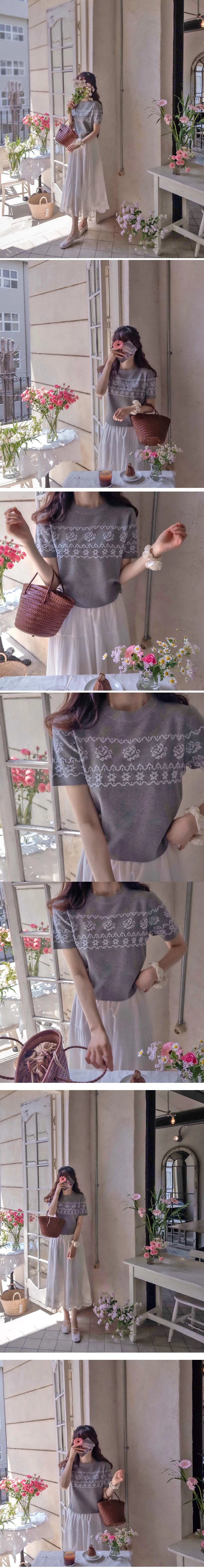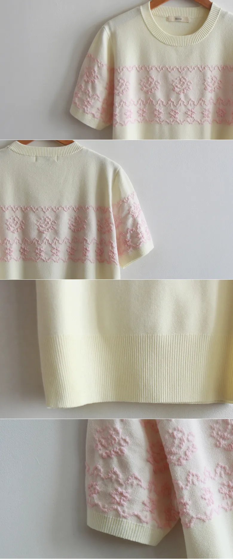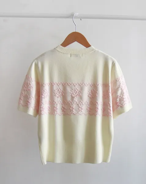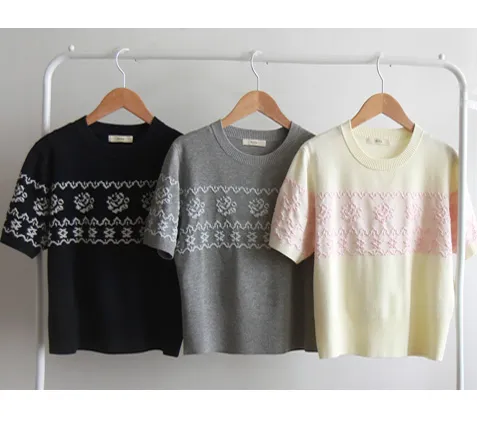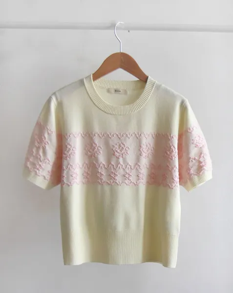 穿著】 【如同緹花般立體的玫瑰圖案】 【基本款明亮時尚】 【簡單散發優雅氣息的短袖針織衫】