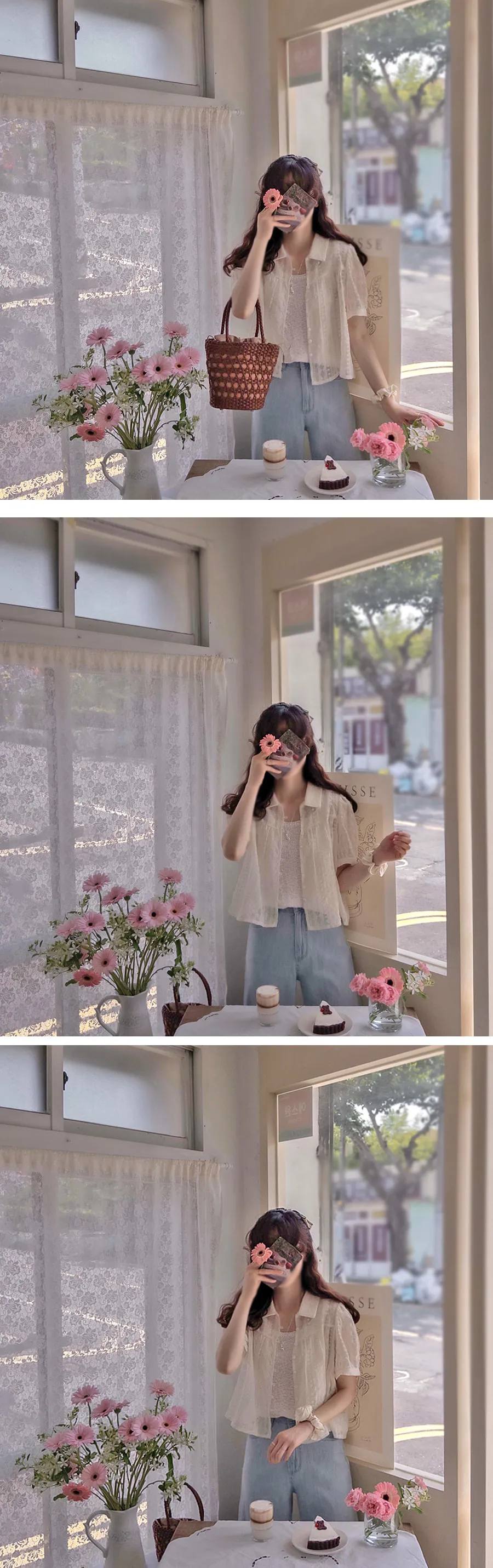 優雅精緻花朵刺繡明亮排扣上衣外套