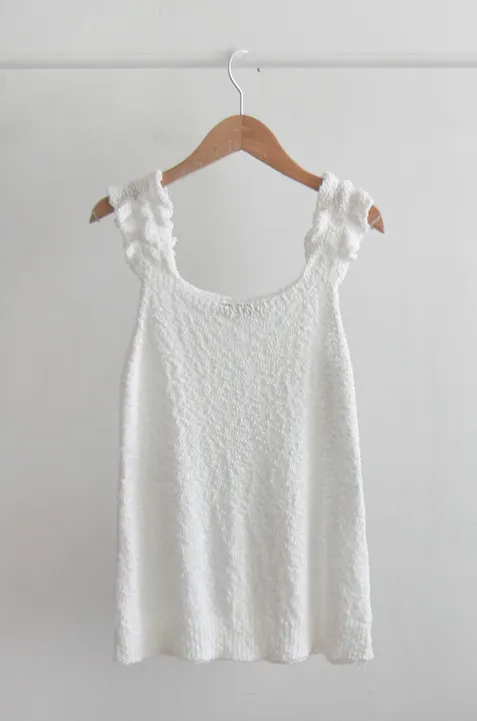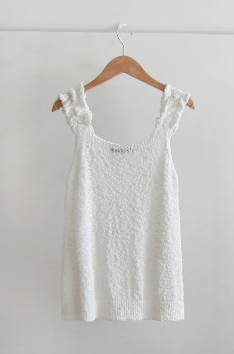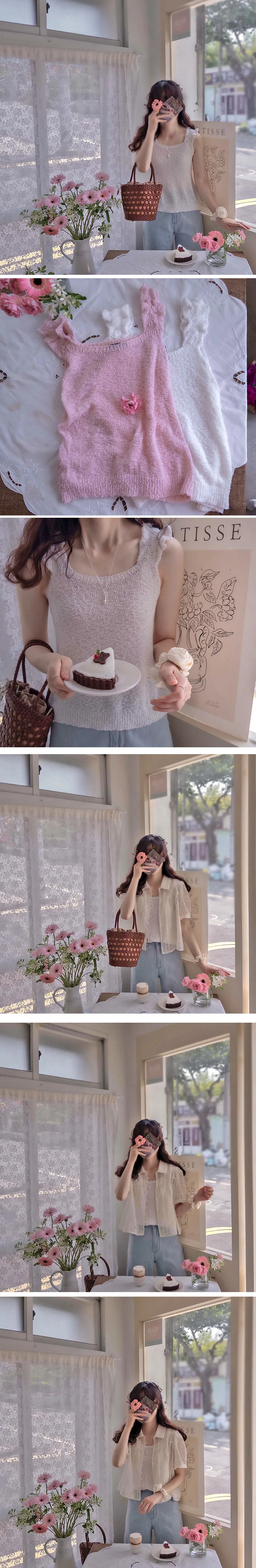 可愛氛圍肩部帶狀摺邊無袖針織上衣