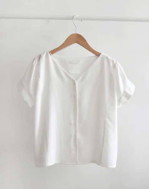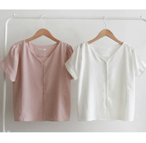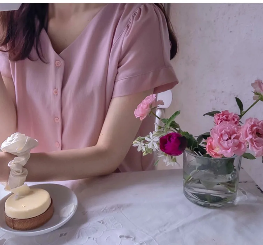 【適合夏季且不起皺的涼爽面料】 【漂亮的肩線剪裁,可愛的上衣】 【營造出優雅可愛的氛圍】 【色彩明亮的時尚上衣】 【作為易於穿著的夏季上衣】