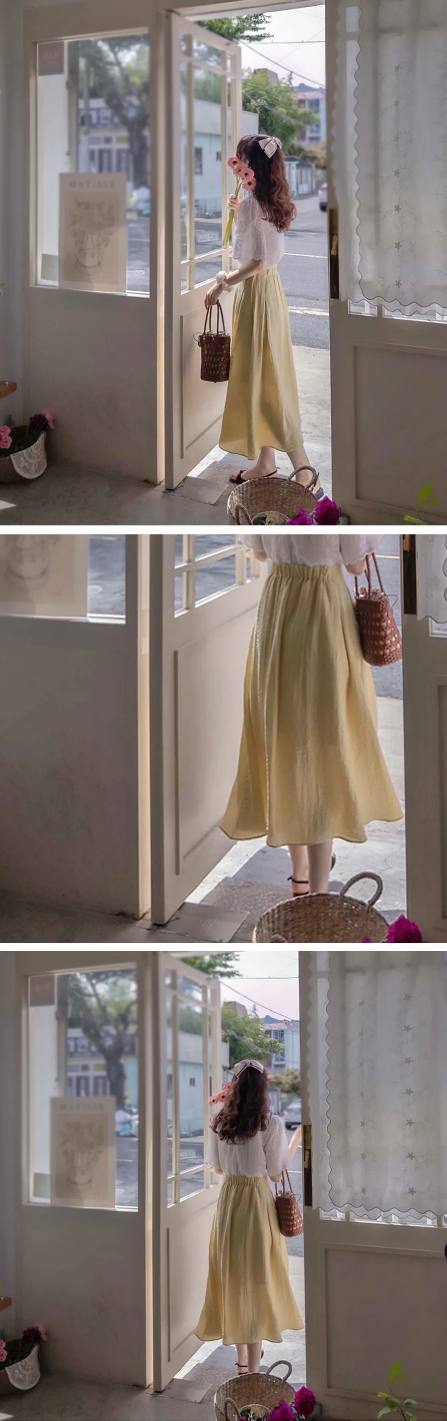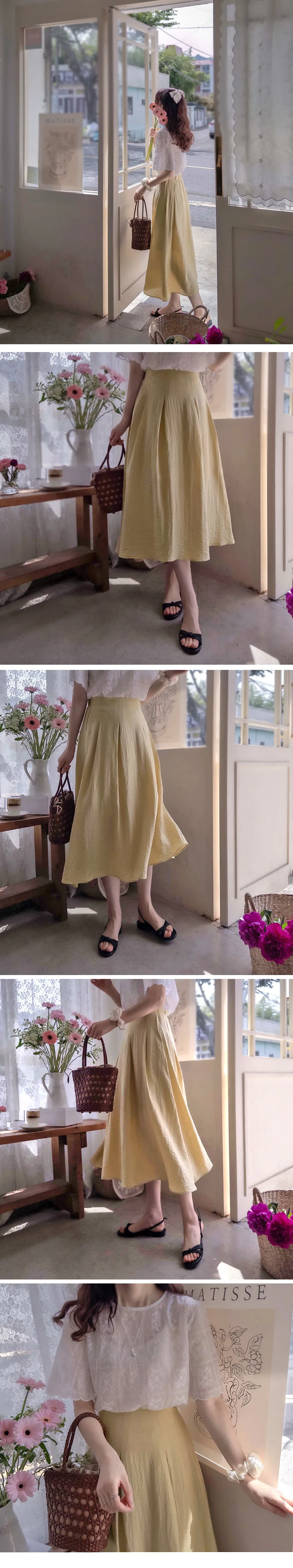 [聚酯纖維內襯] [後腰帶] [側拉鍊] [適合夏季的亞麻材質裙] [褶皺設計營造優雅修身風格] [清爽的版型,營造時尚氛圍] [推薦作為提升風格氣質的裙子]