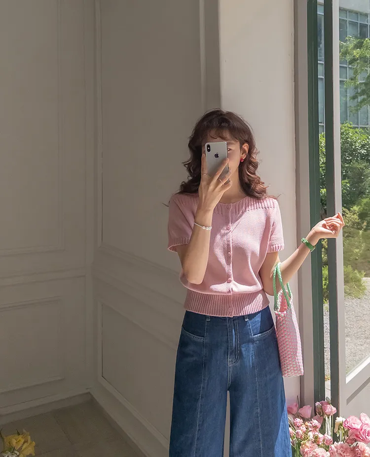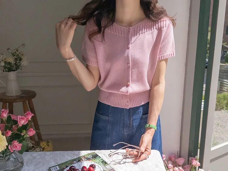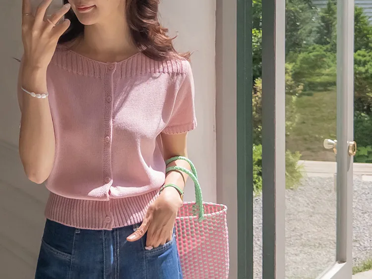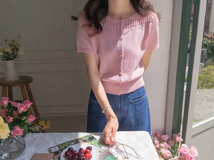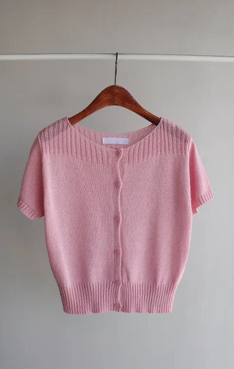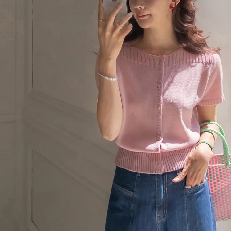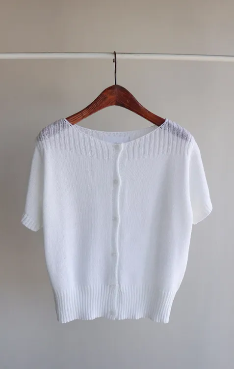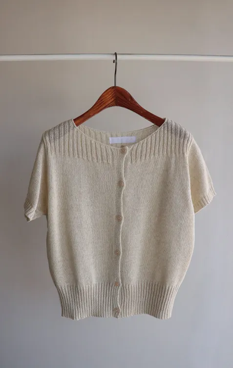 獨特垂直縫線領口線條帆船領短袖開衫