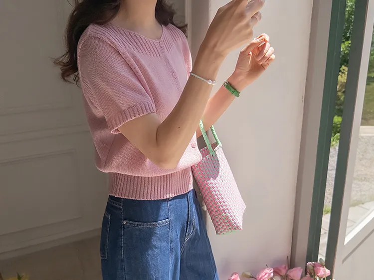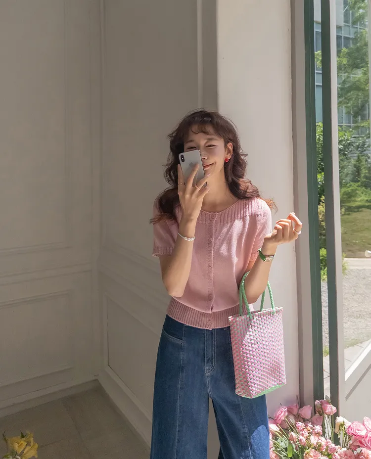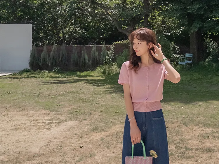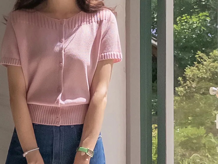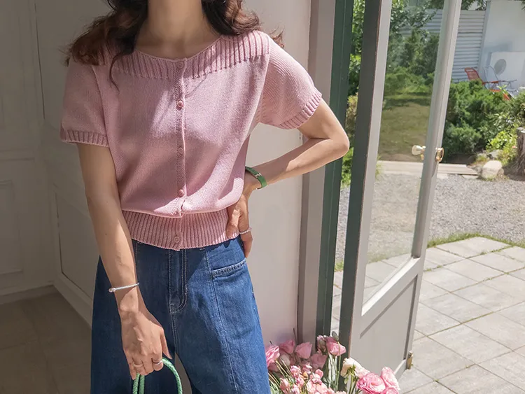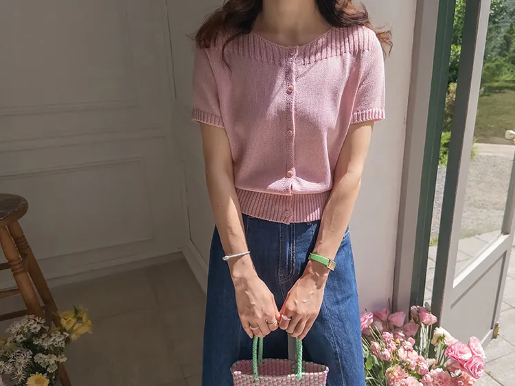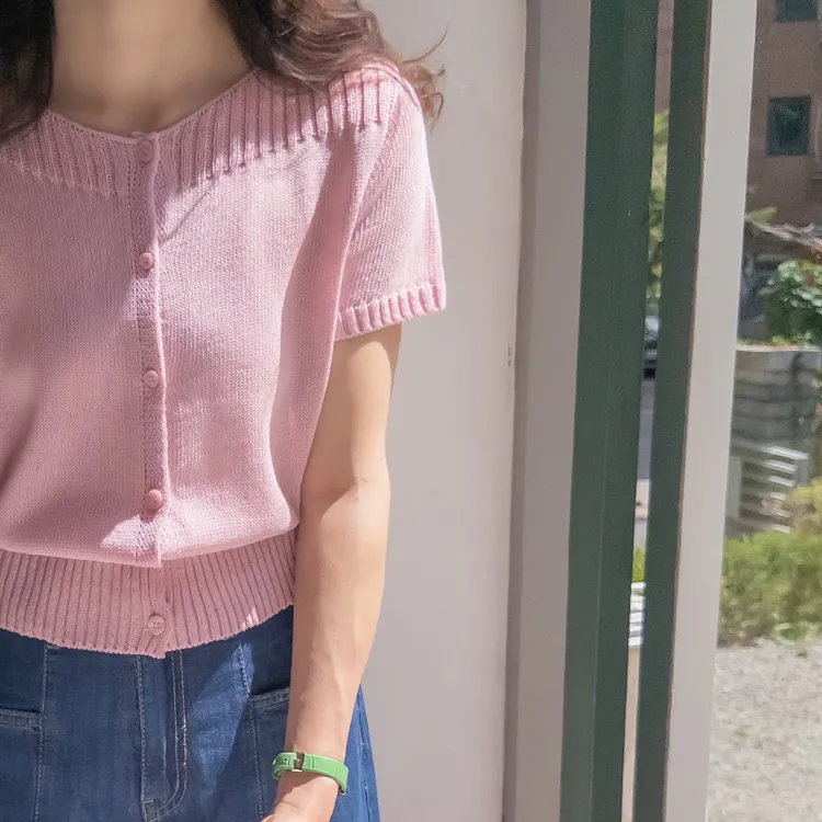 獨特垂直縫線領口線條帆船領短袖開衫