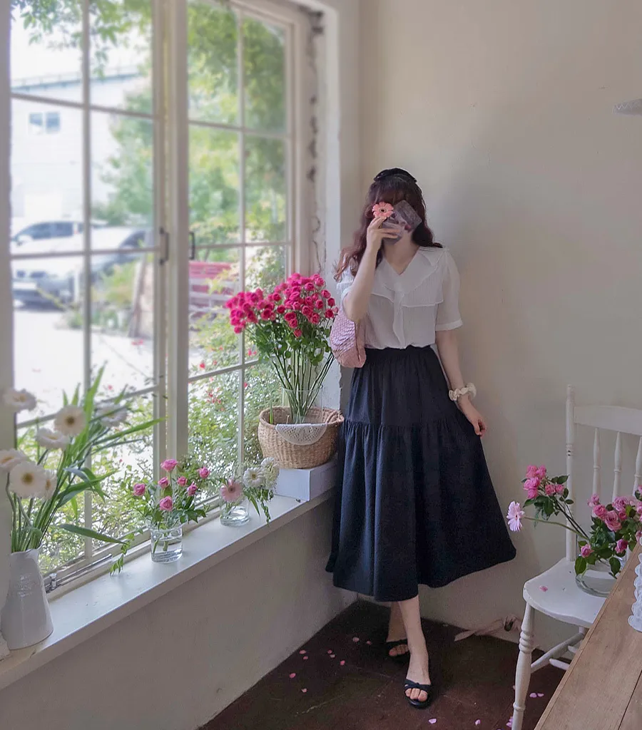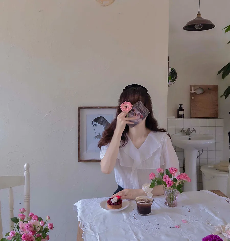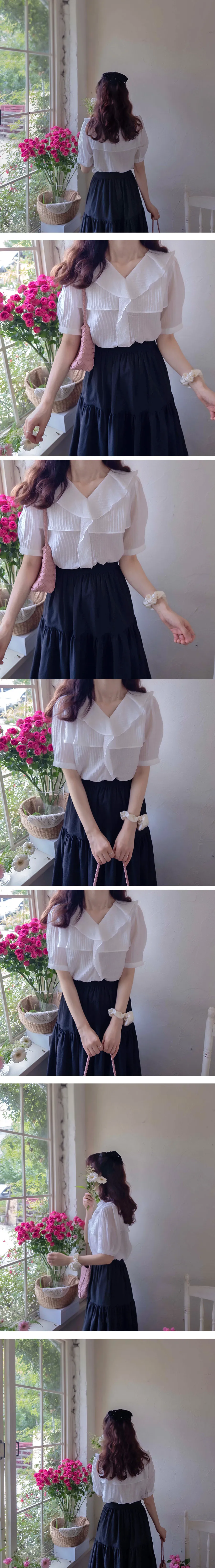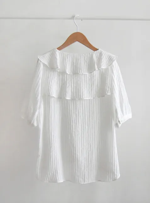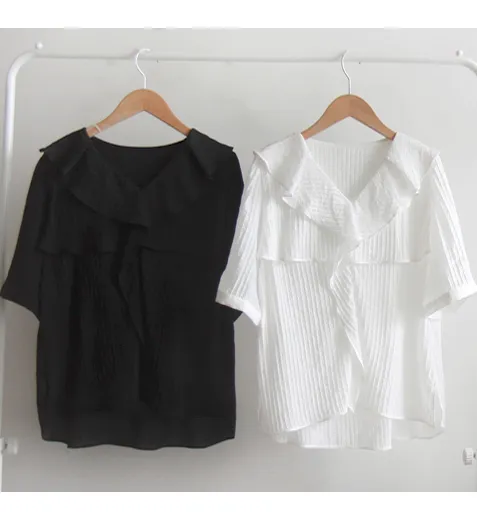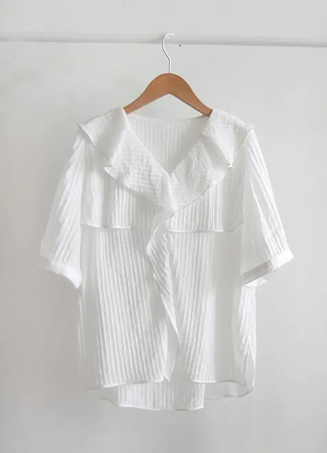 清新波浪摺邊精緻線條上衣