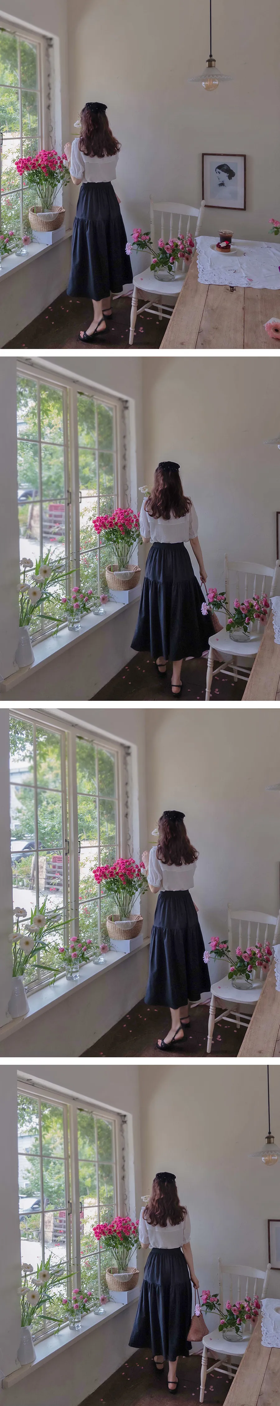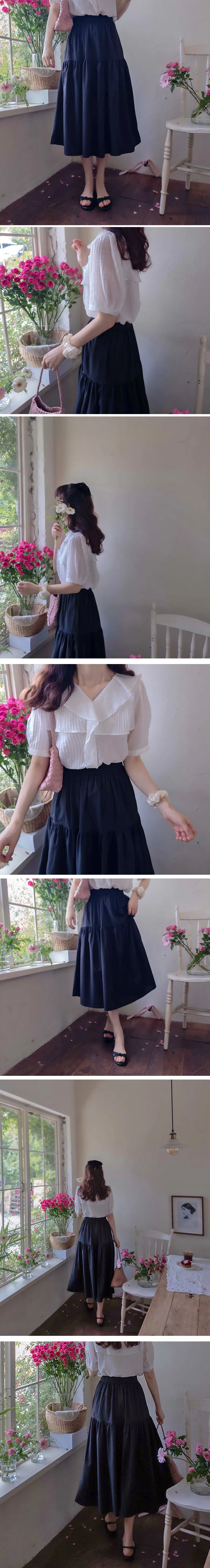 夏日優雅氛圍剪裁微妙褶皺泡泡紗中長裙