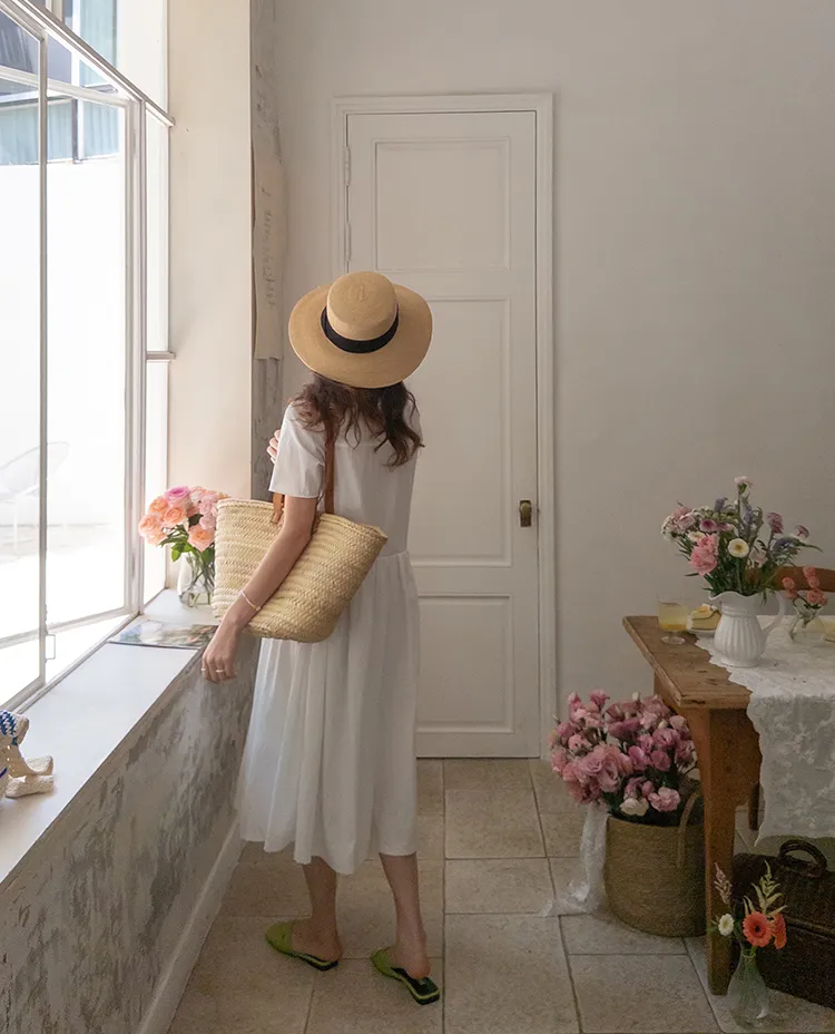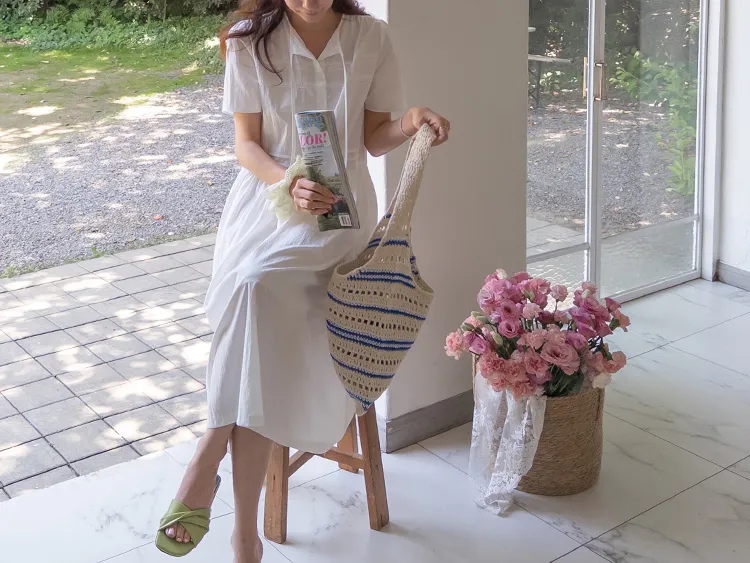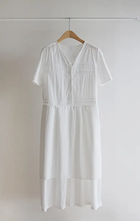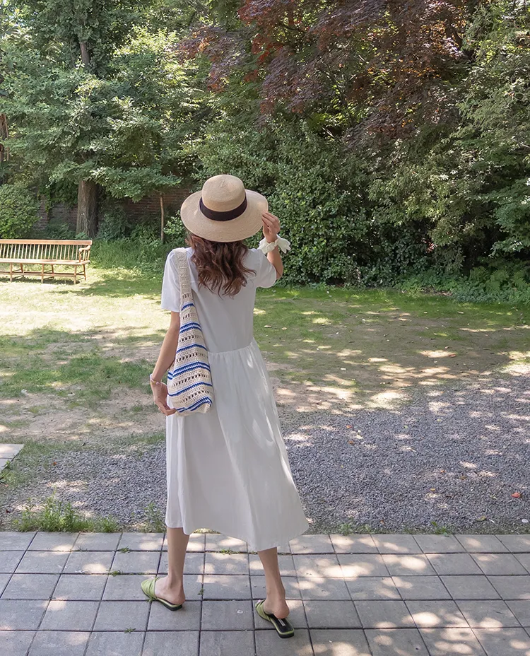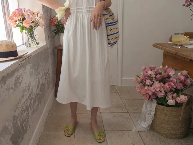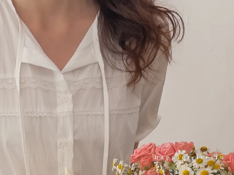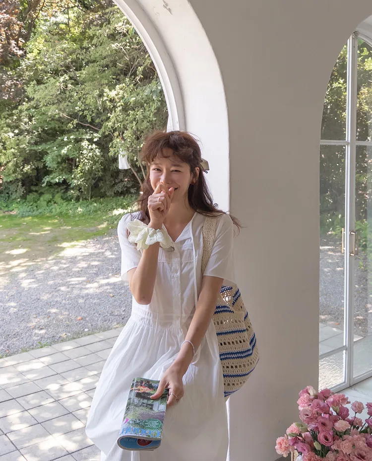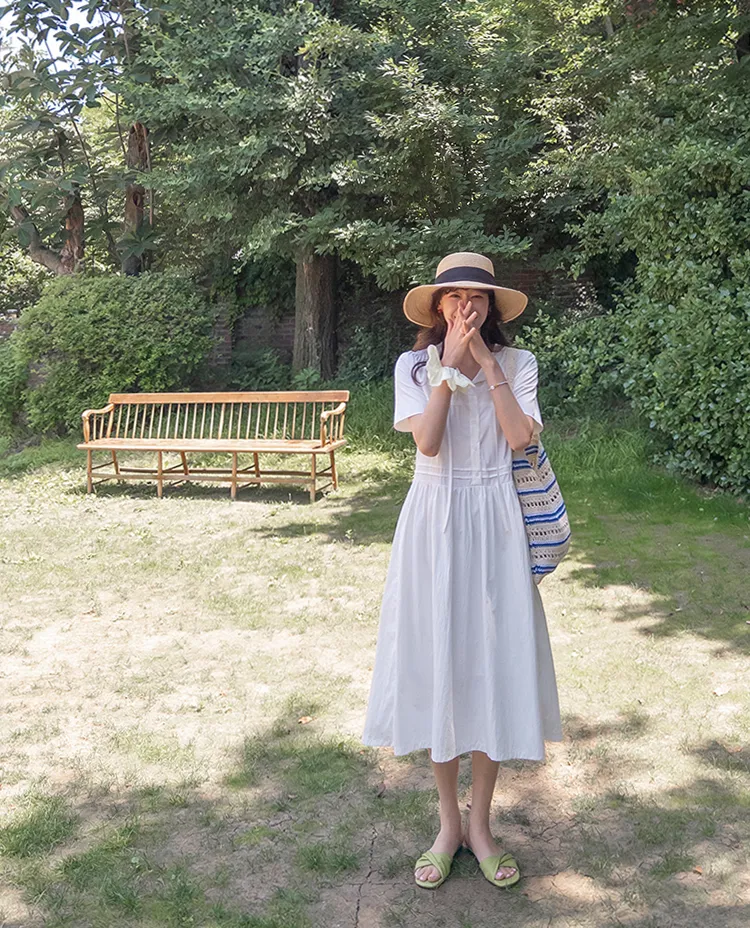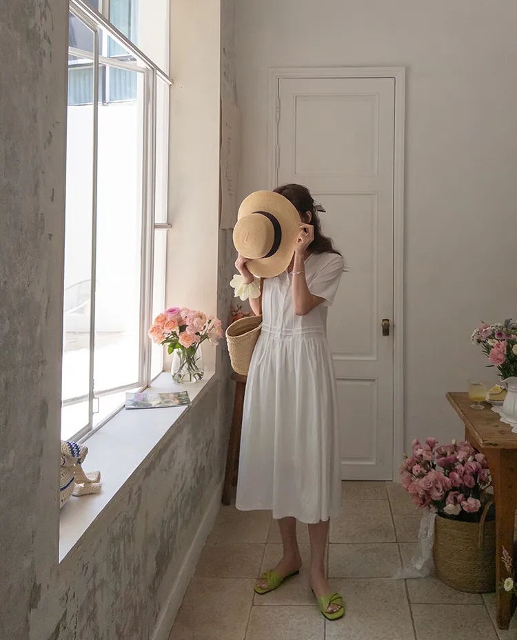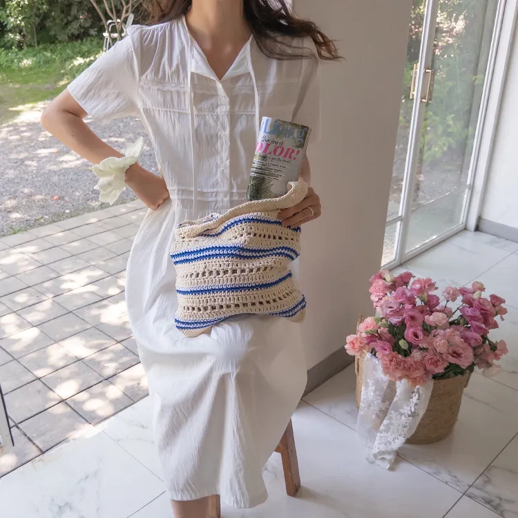 【浪漫領口繫綁帶點綴清涼夏日連身裙】 【零皺布料】 【寬鬆版型完美修飾身形! 】 【精緻蕾絲點♥】