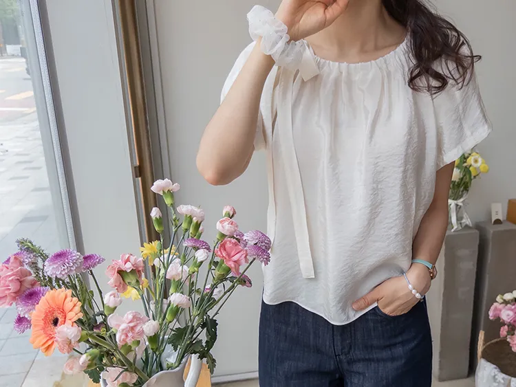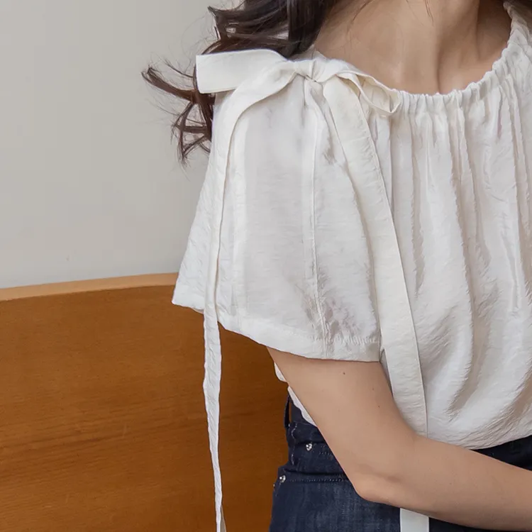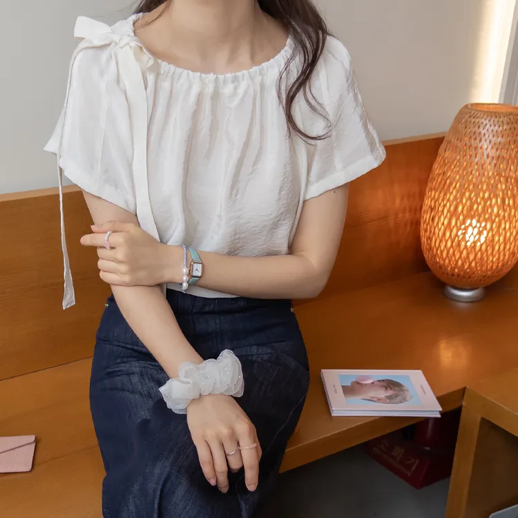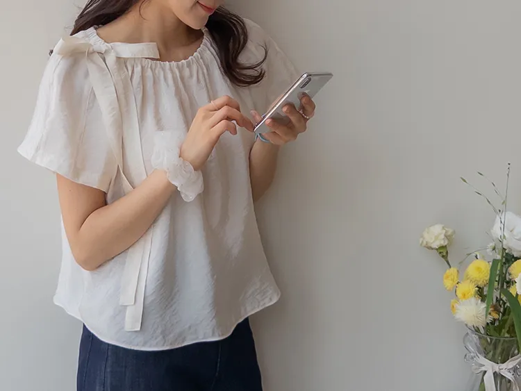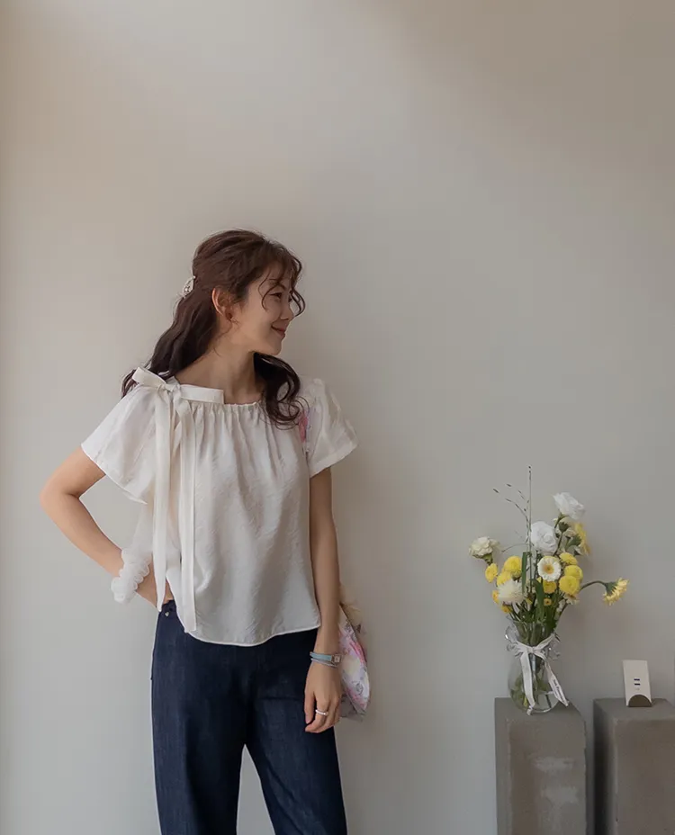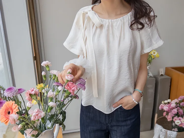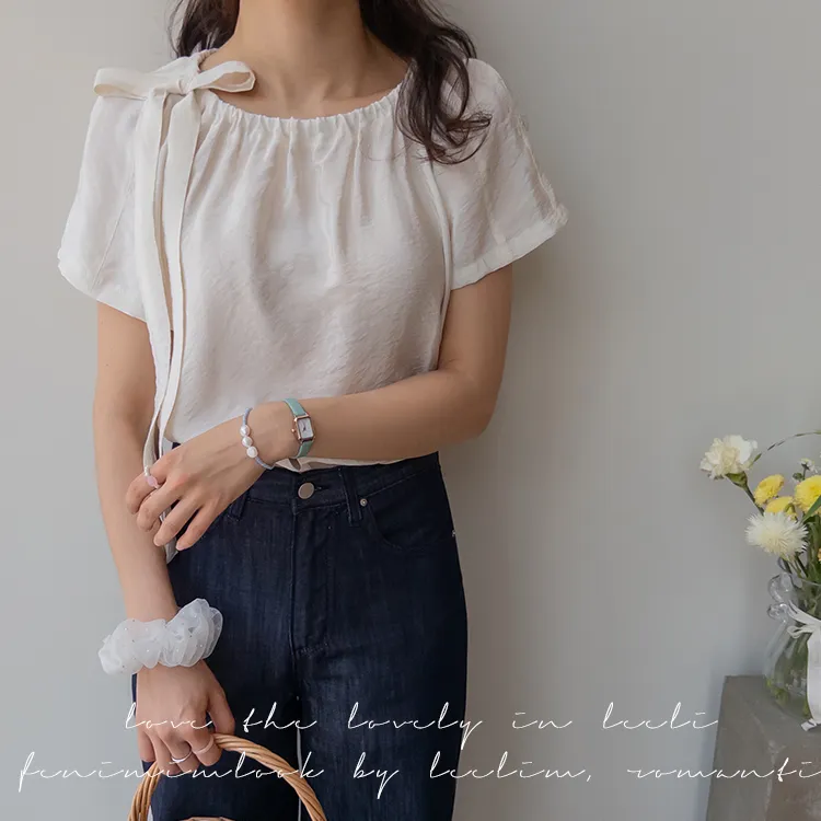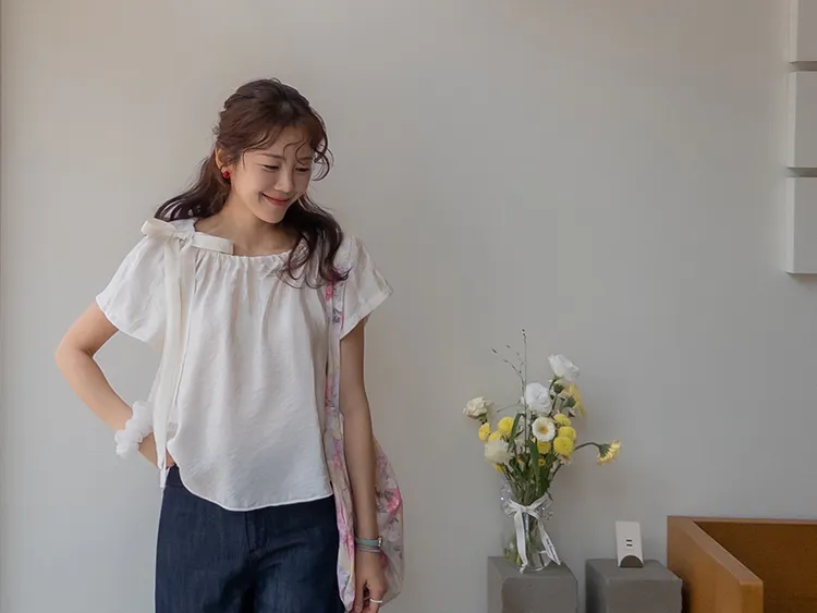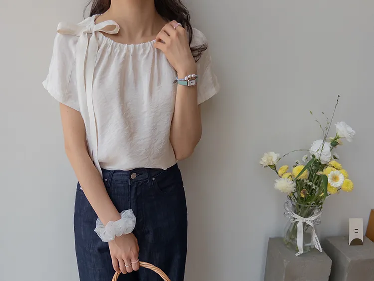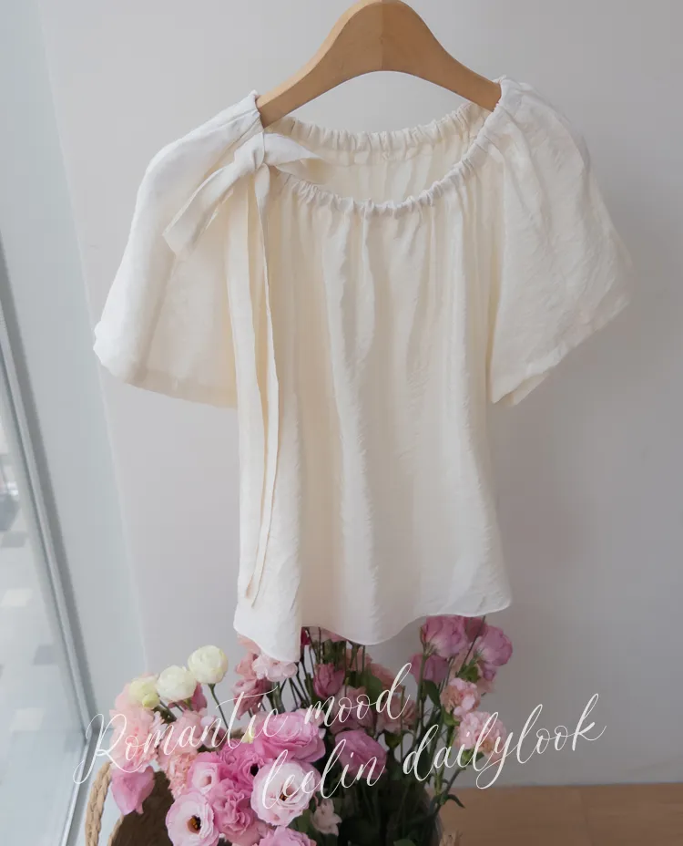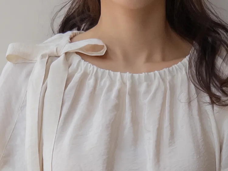 可愛領口彈性側綁帶輕盈柔軟上衣