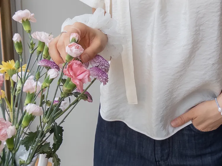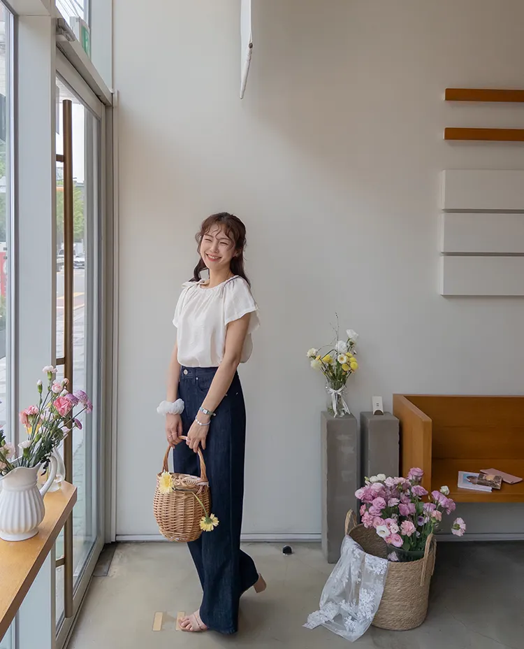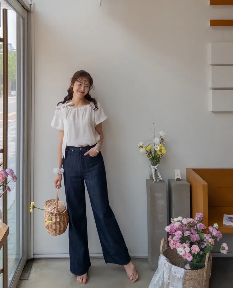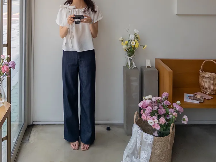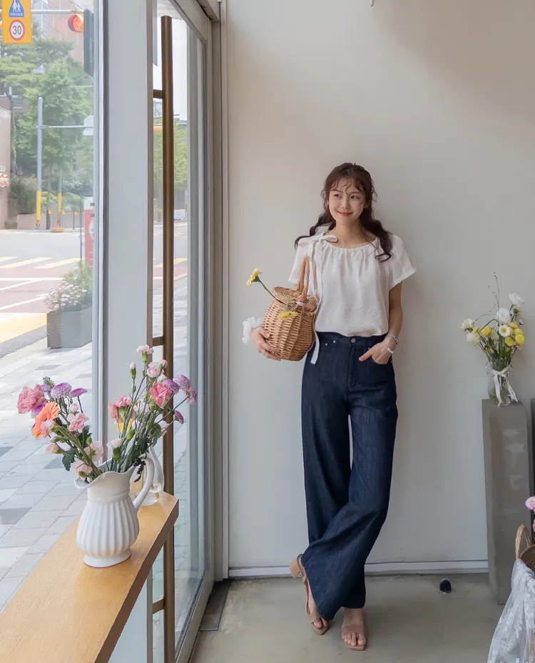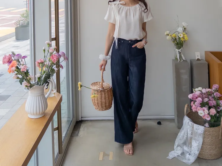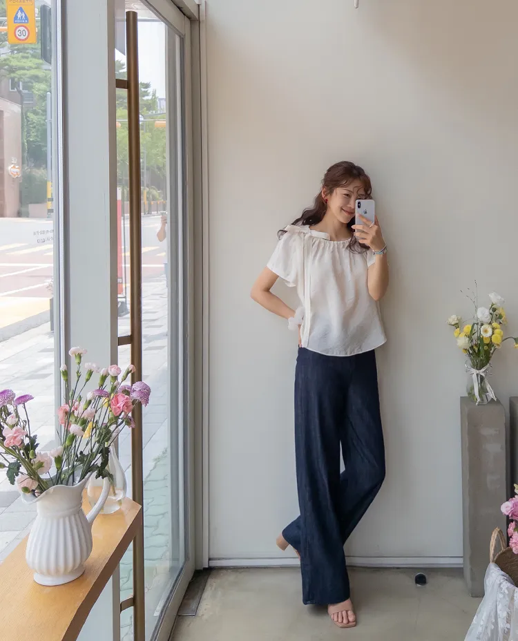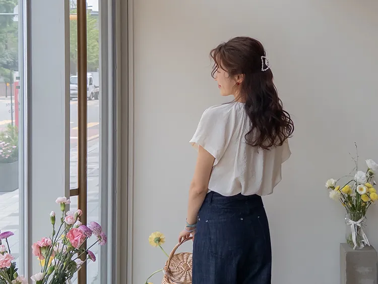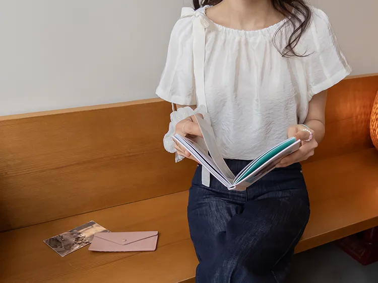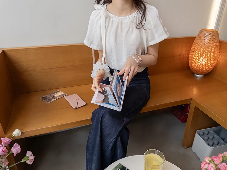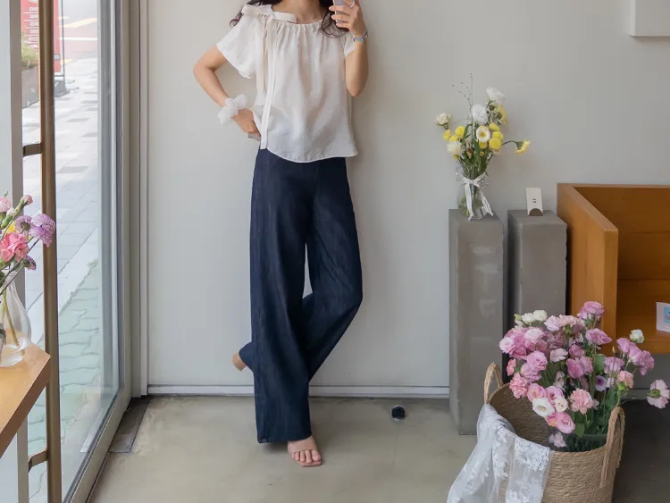 可愛領口彈性側綁帶輕盈柔軟上衣
