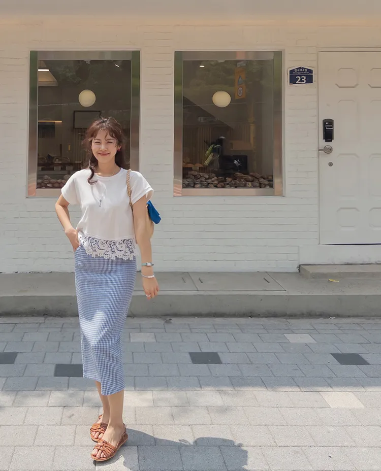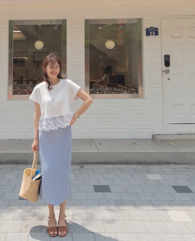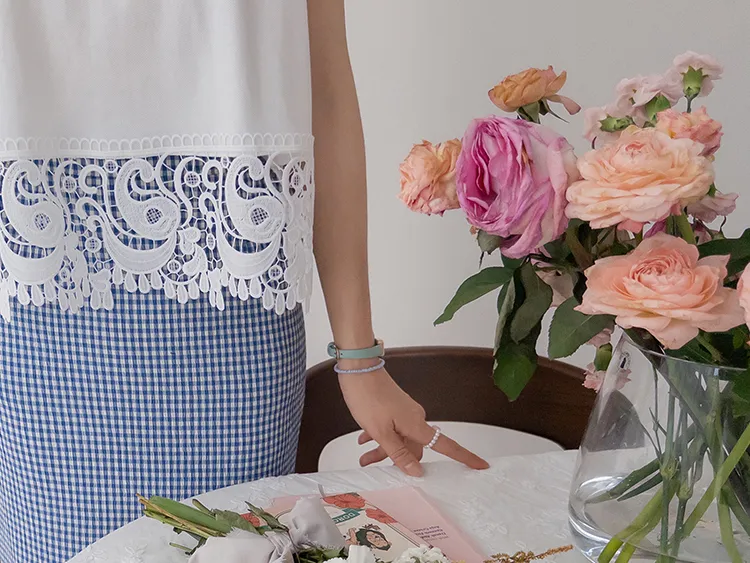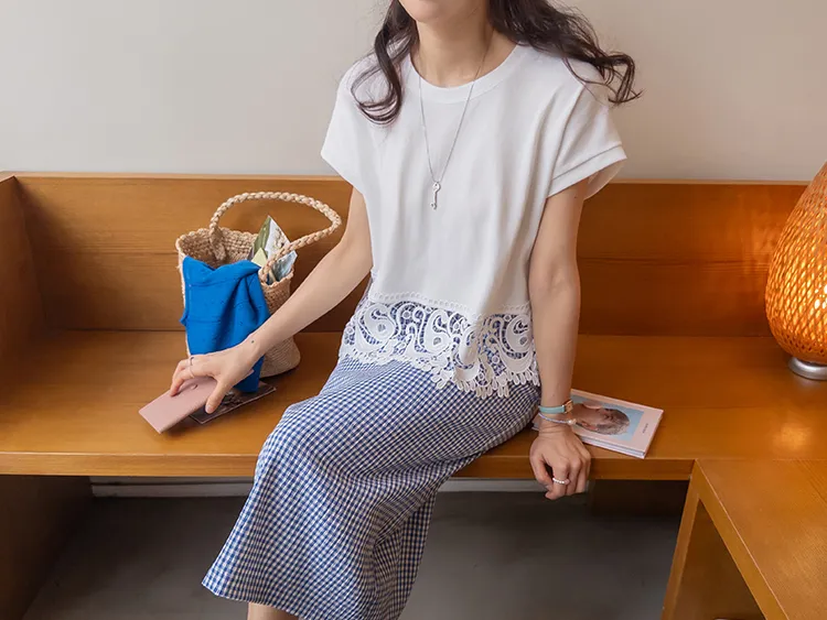 簡約浪漫點綴下擺蕾絲花邊上衣