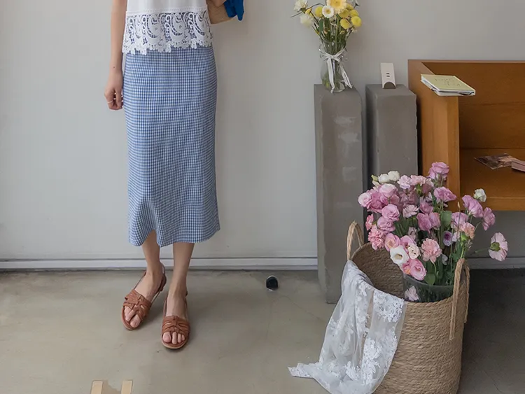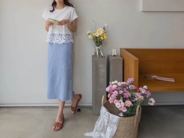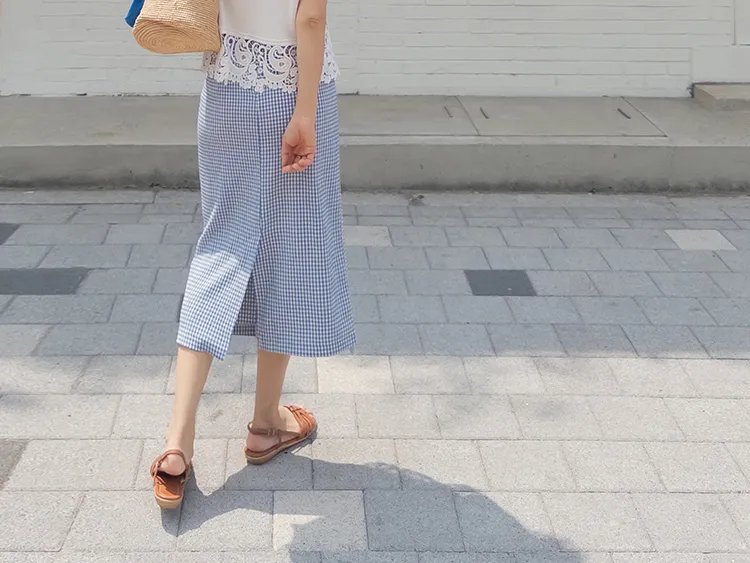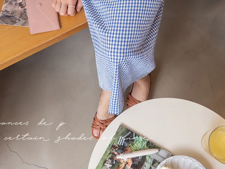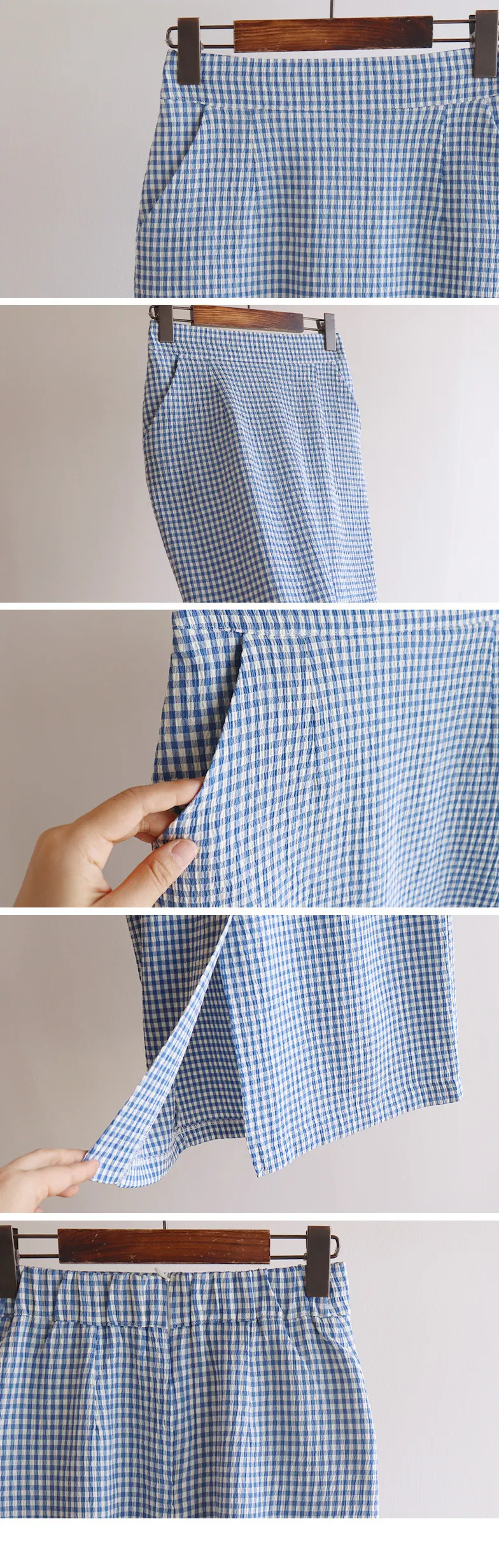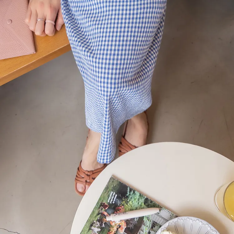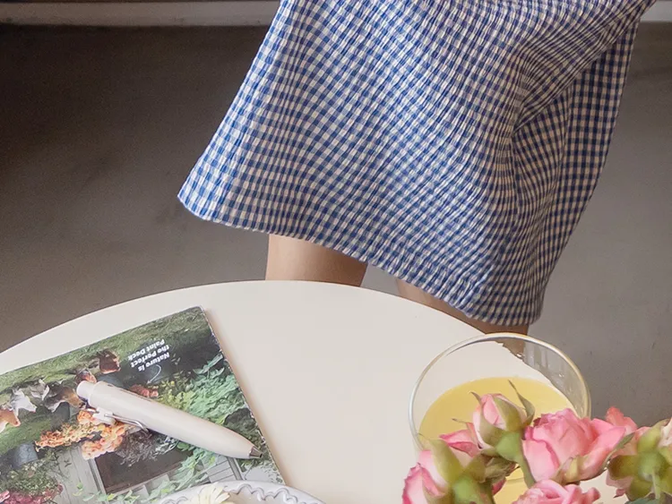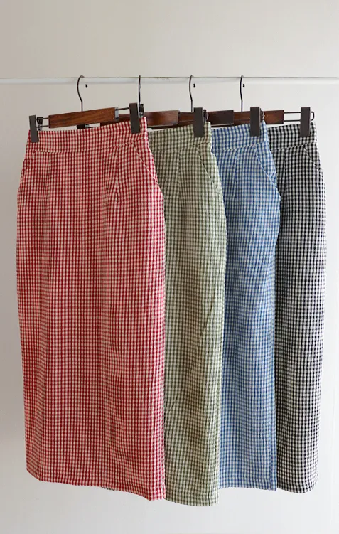 【漂亮格紋H剪裁裙子♥】【不用擔心起皺! ! 】【舒適的腰部後彈性帶】【自然皺褶的褶皺布料】