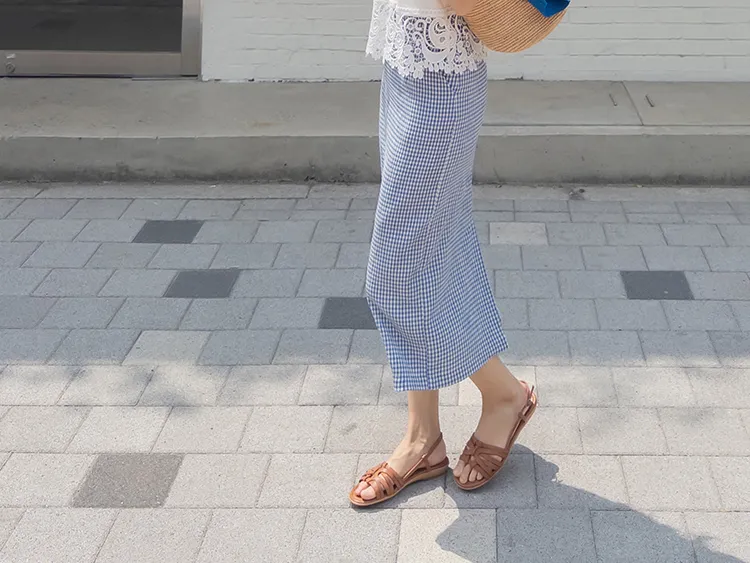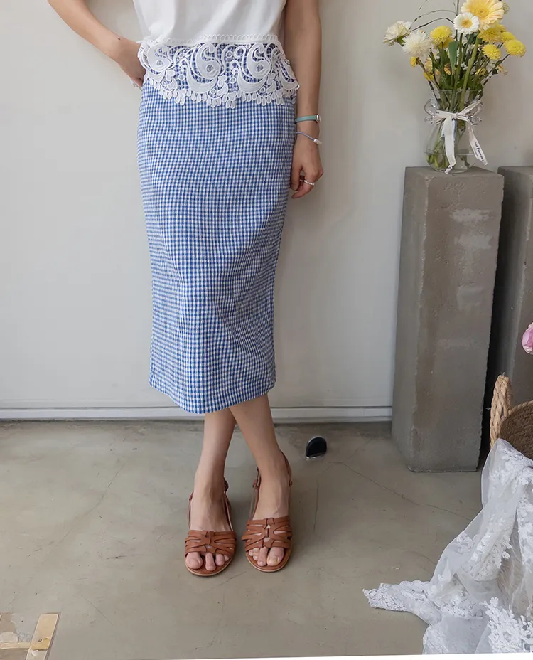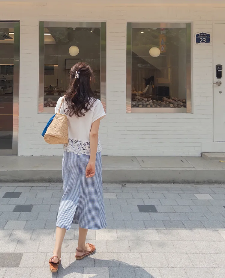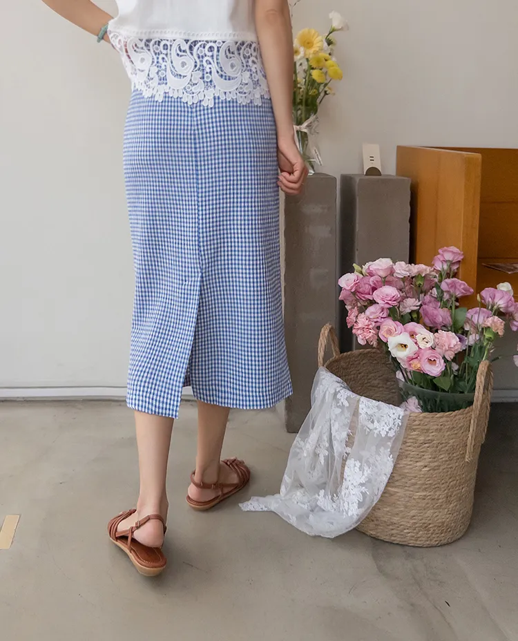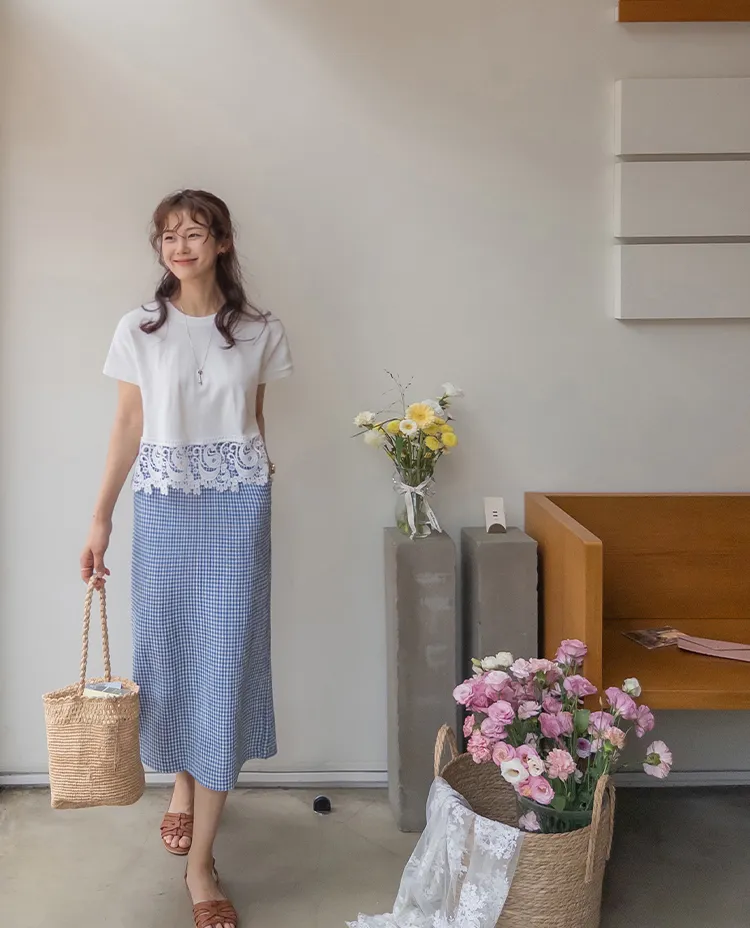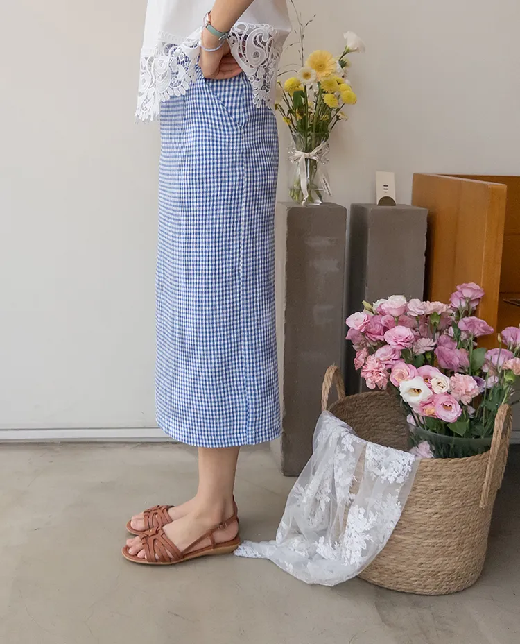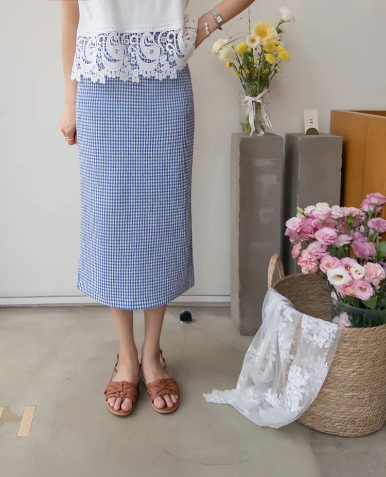 【漂亮格紋H剪裁裙子♥】【不用擔心起皺! ! 】【舒適的腰部後彈性帶】【自然皺褶的褶皺布料】