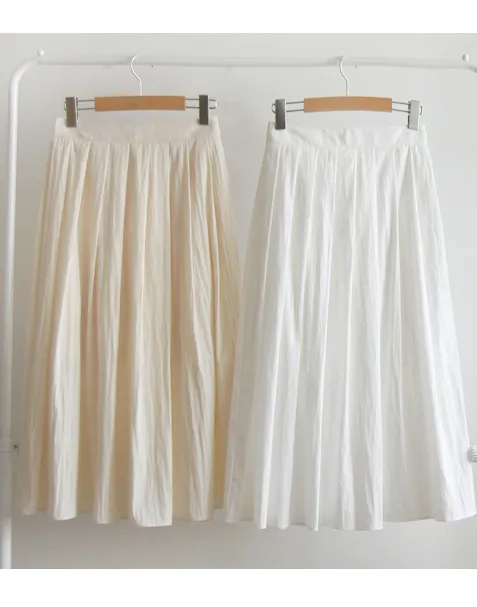 [聚酯纖維襯裡] [腰後側有拉鍊] [不易起皺的清涼夏季裙子] [明亮色彩,時尚具有季節感] [適合夏季的裙子] [褶皺設計,成熟時尚] [清涼優雅的版型]