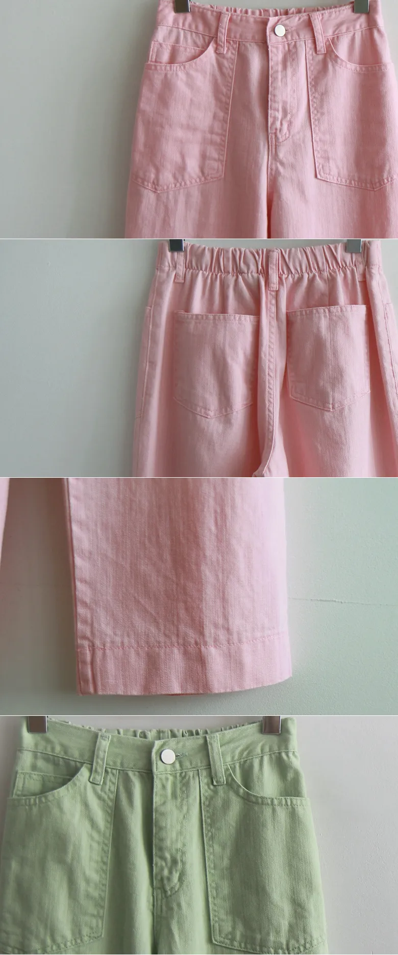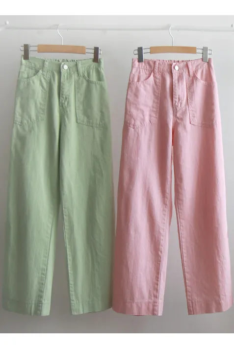 夏日明亮柔和色彩簡約口袋穿搭休閒褲