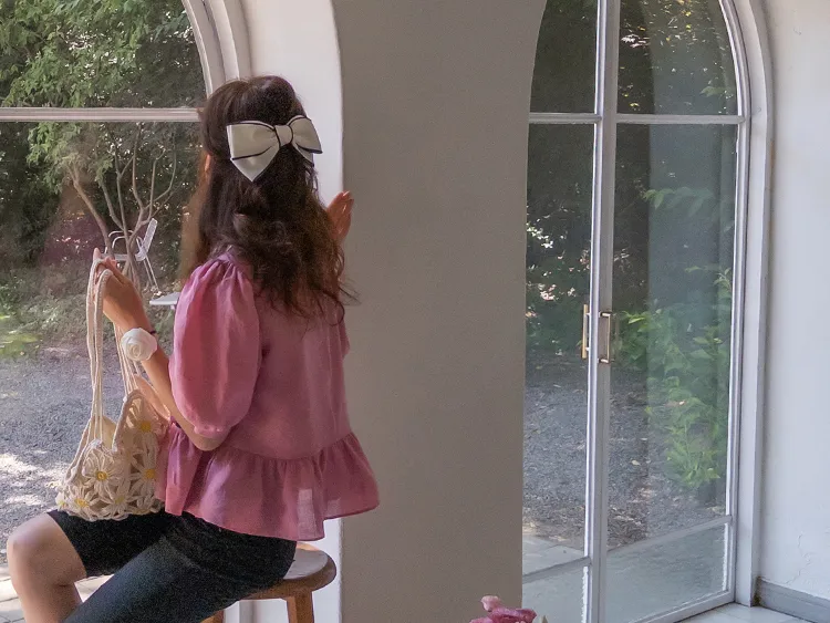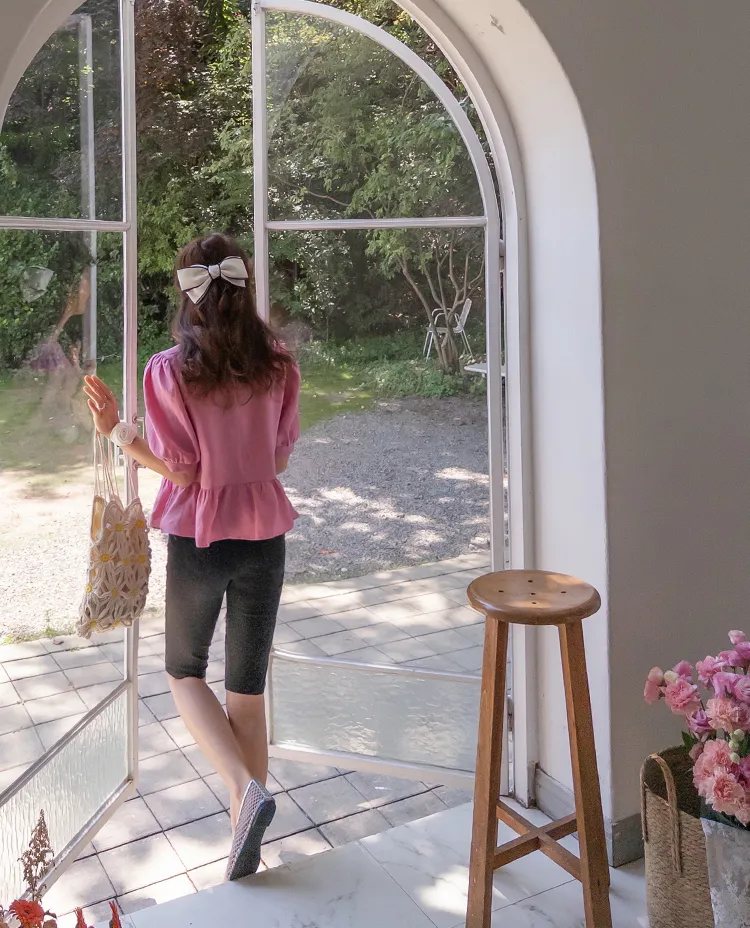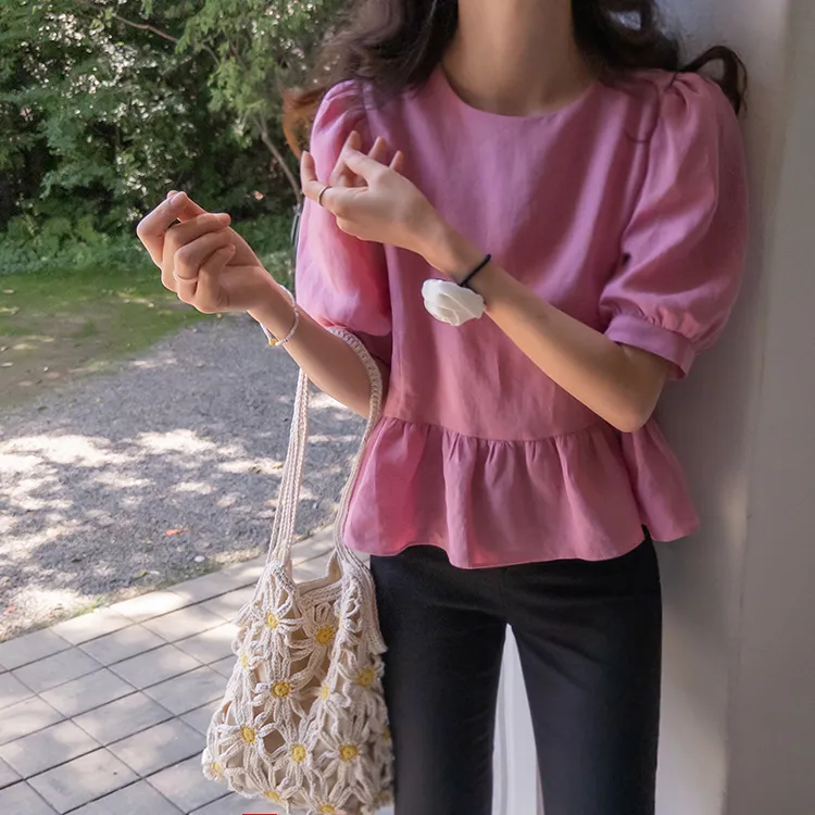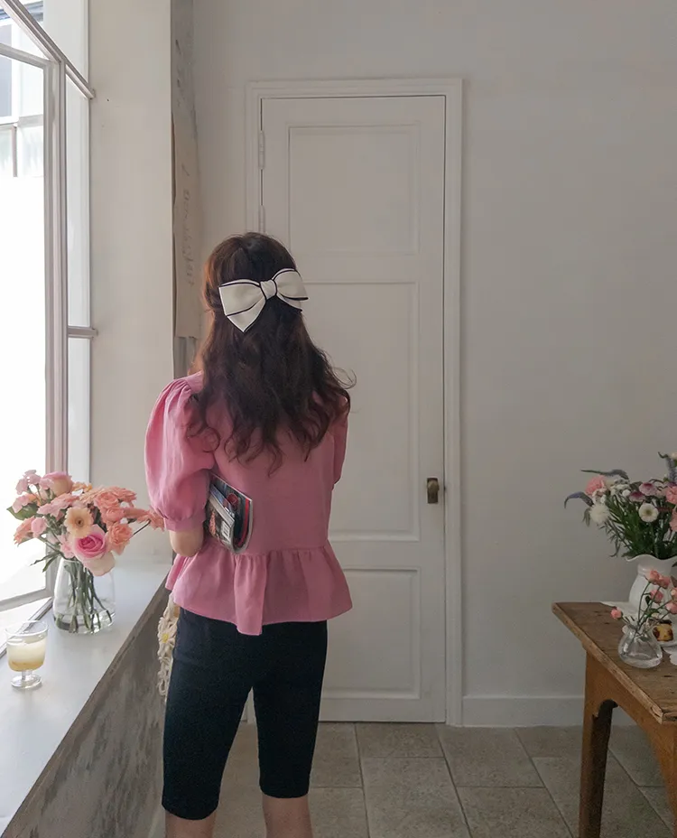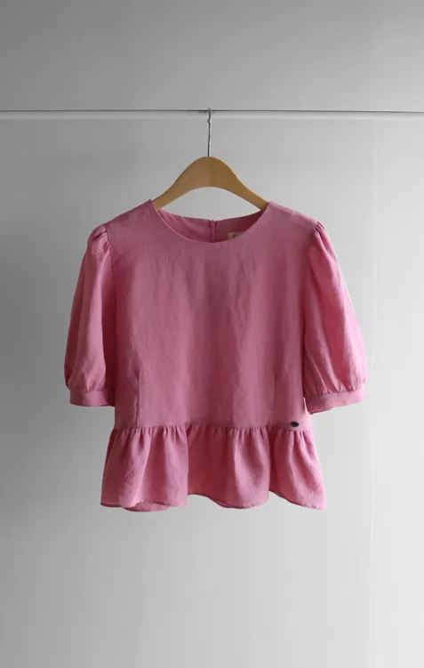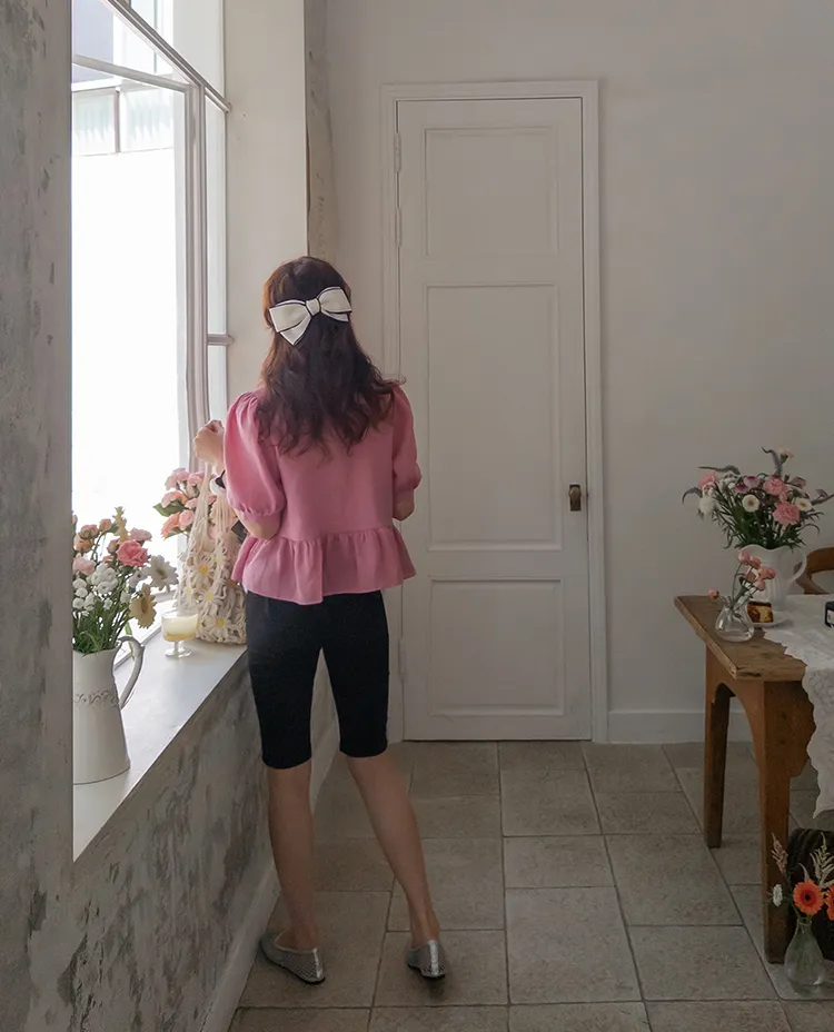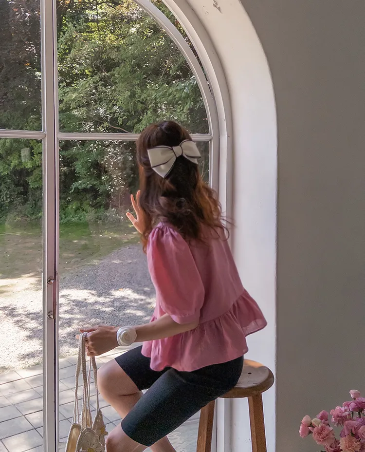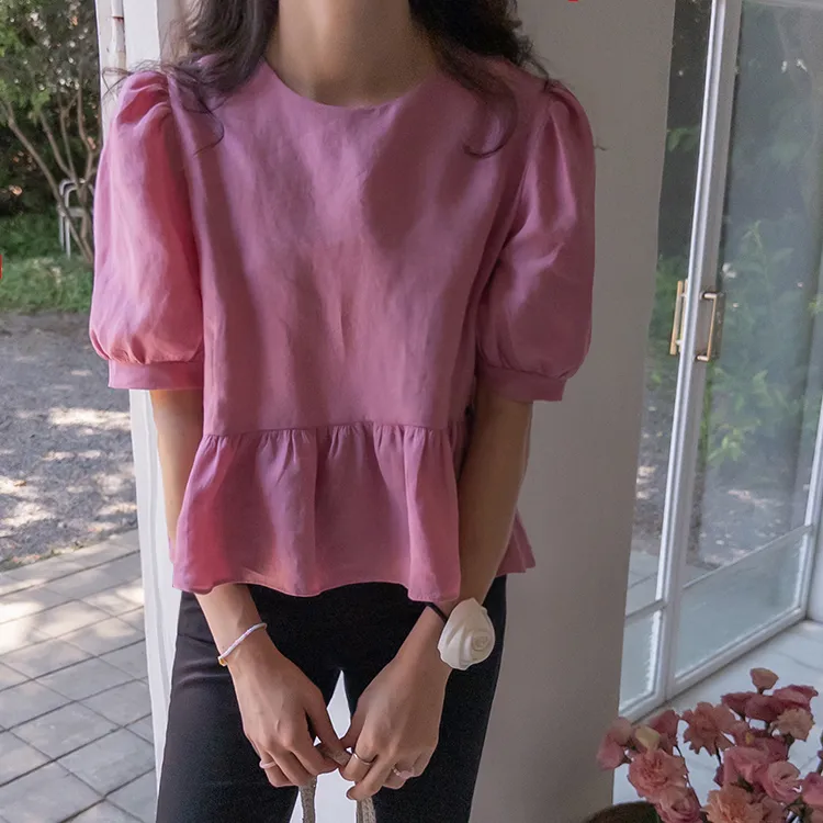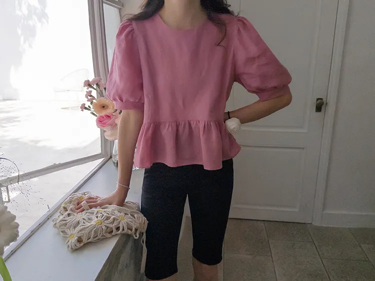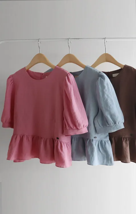 【夏季飄動的亞麻上衣】 【舒適不黏膩的觸感】 【柔軟的質感,洋溢著可愛的氛圍♡】 【腰側有垂墜點! ! 】