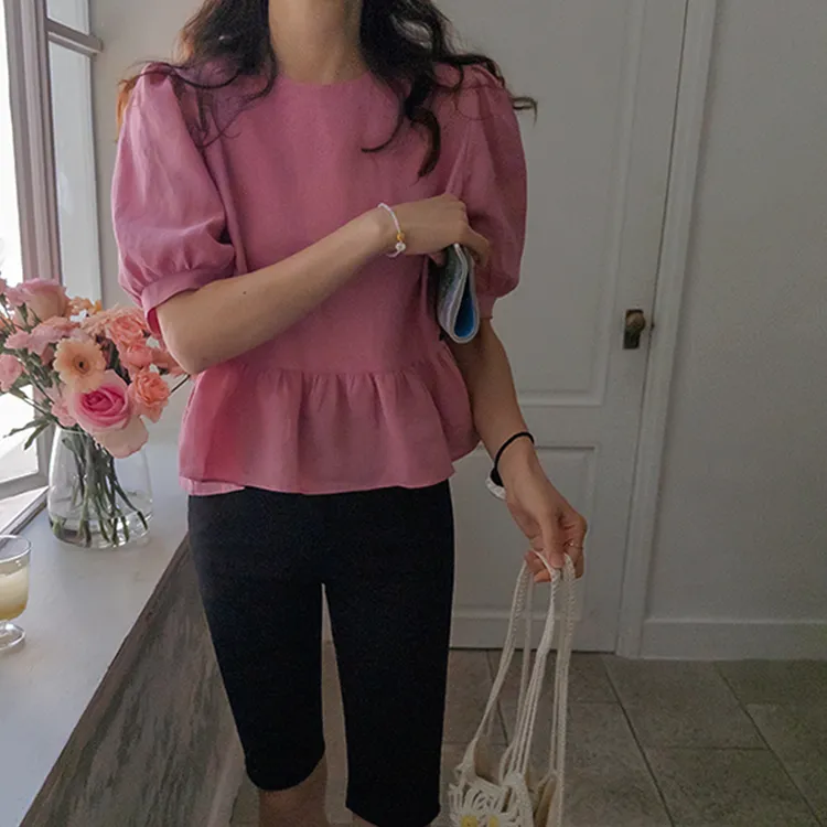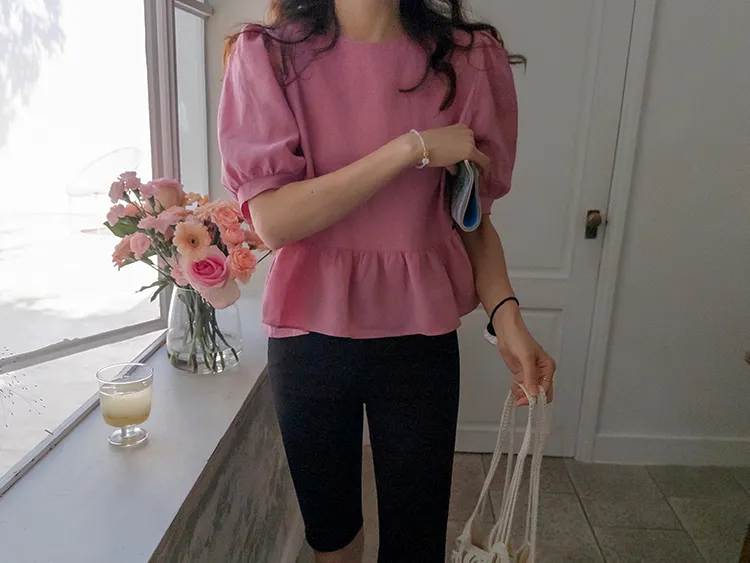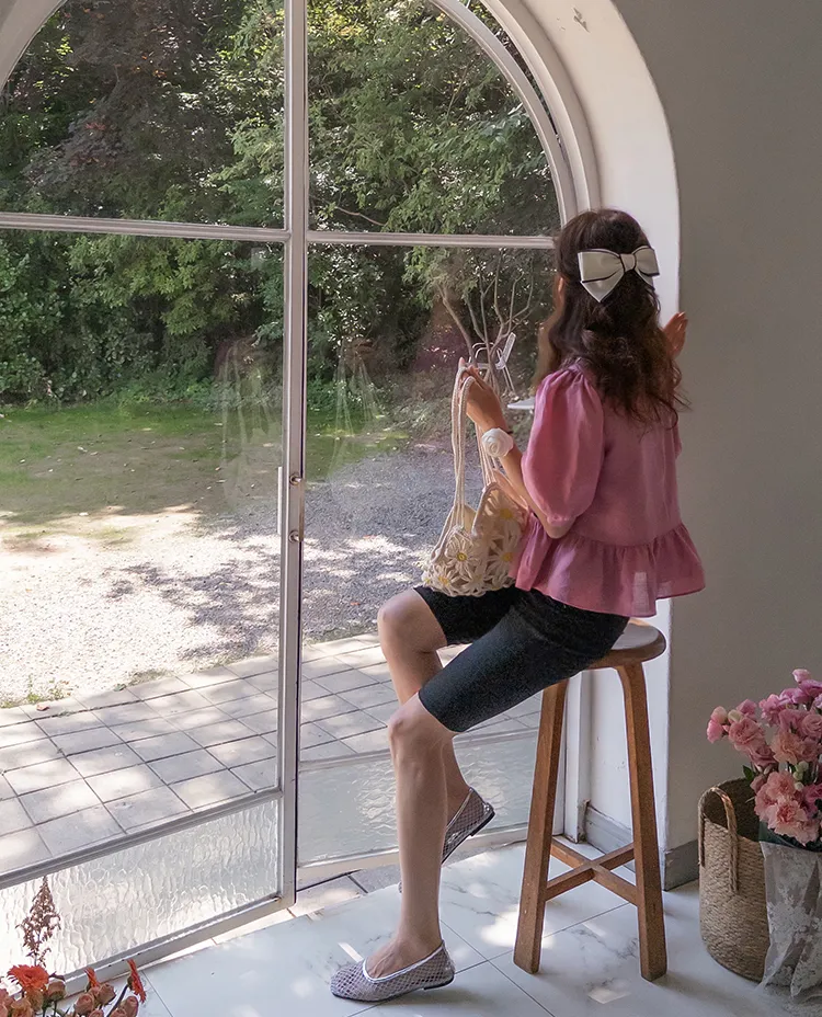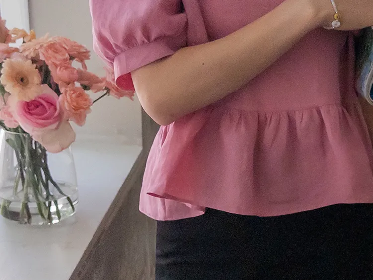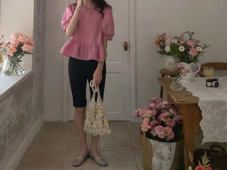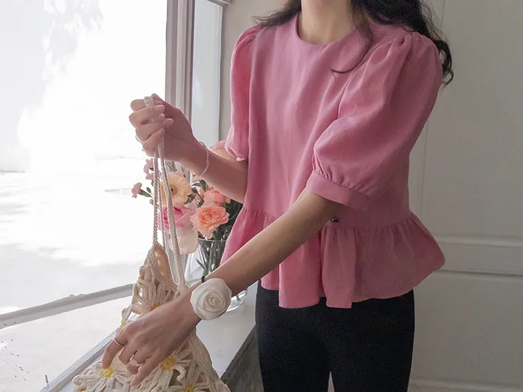 輕盈可愛下擺摺邊點綴側腰吊墜上衣