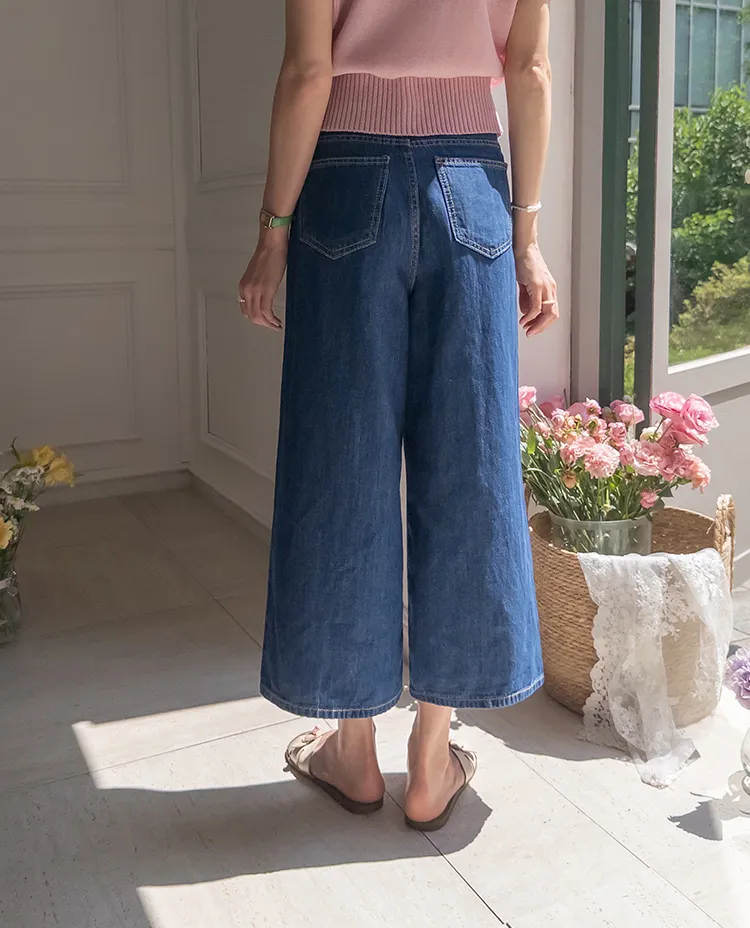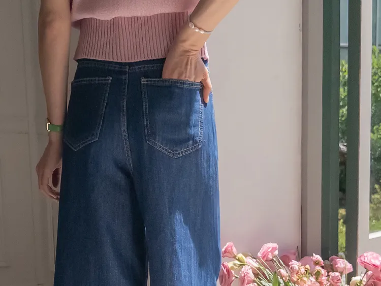 【橫向口袋設計是一大亮點♥】 【垂直剪裁是一大亮點】 【清涼~~輕款亞麻混紡牛仔布】 【八分褲長度,活力十足! 】