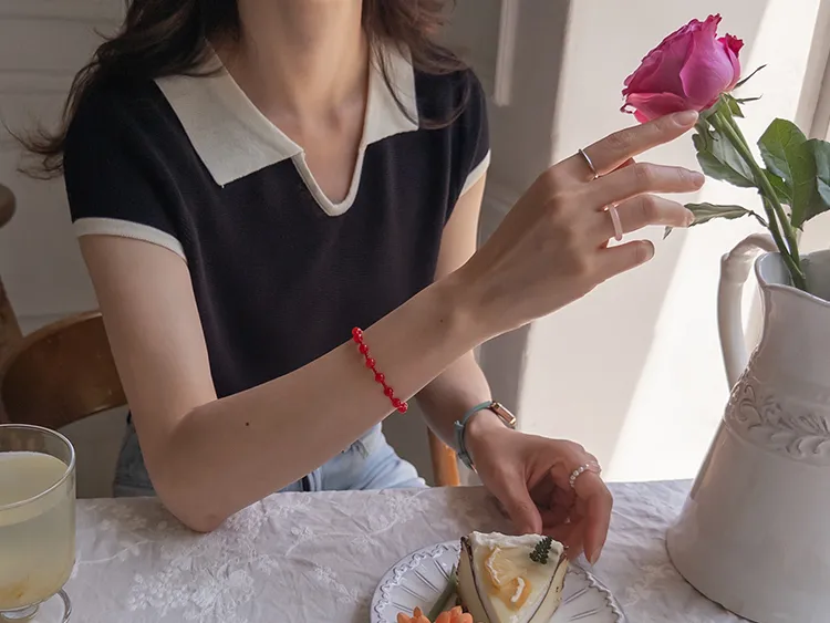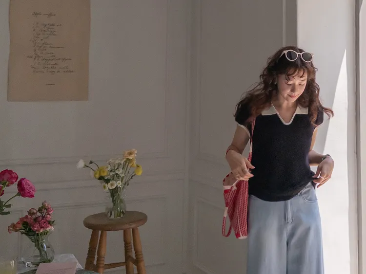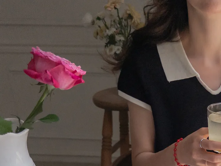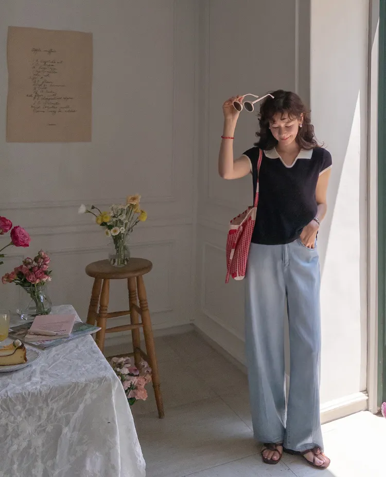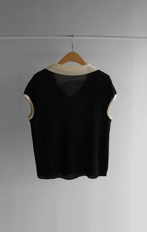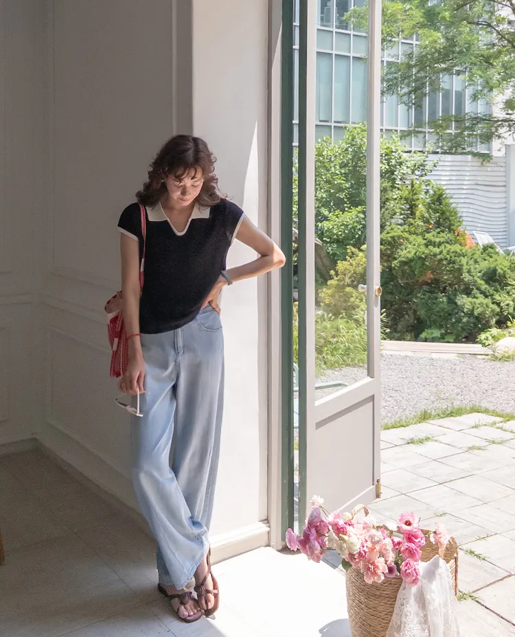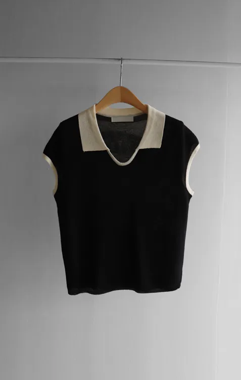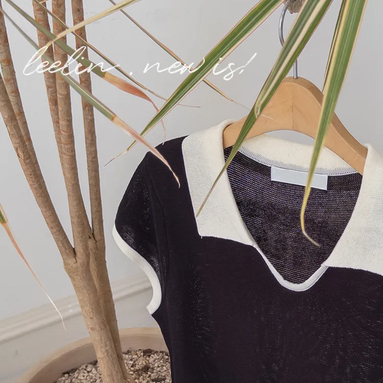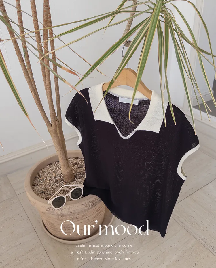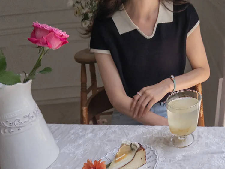 感性配色翻領夏日輕款蓋袖針織上衣