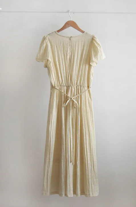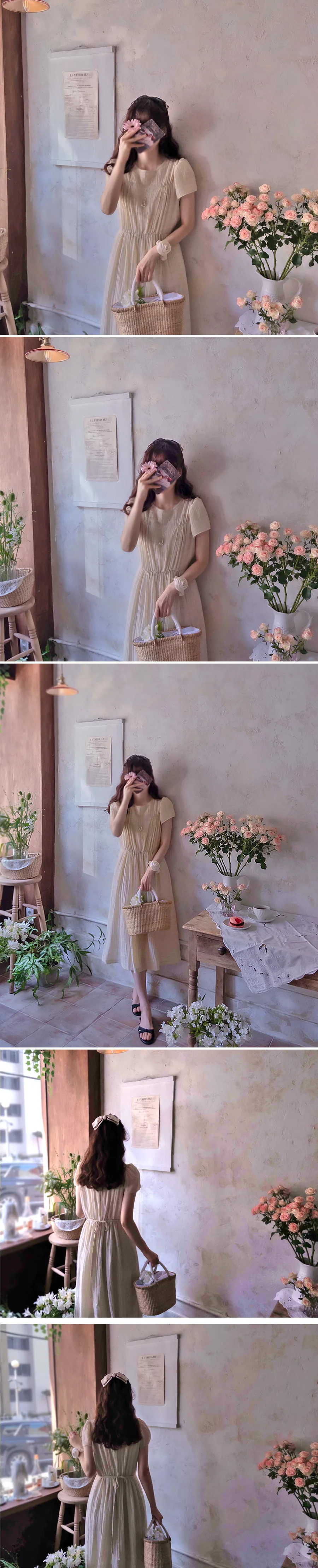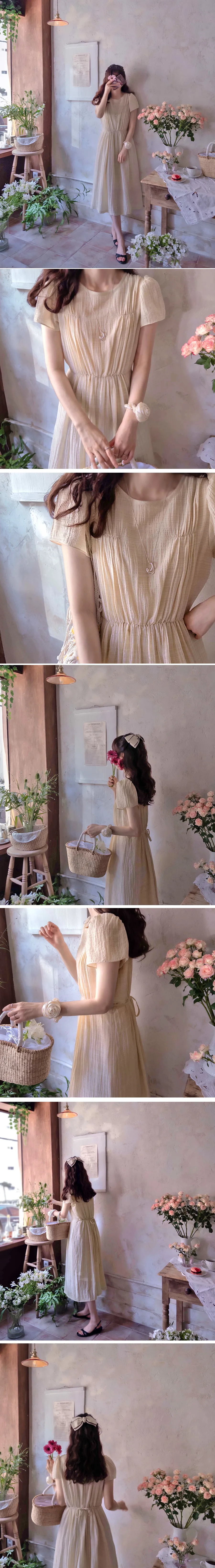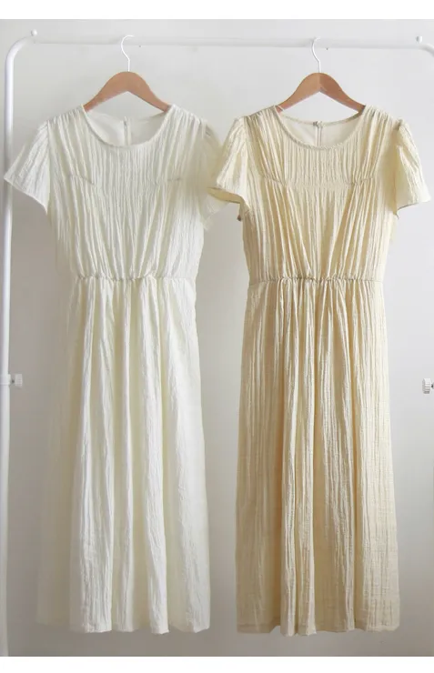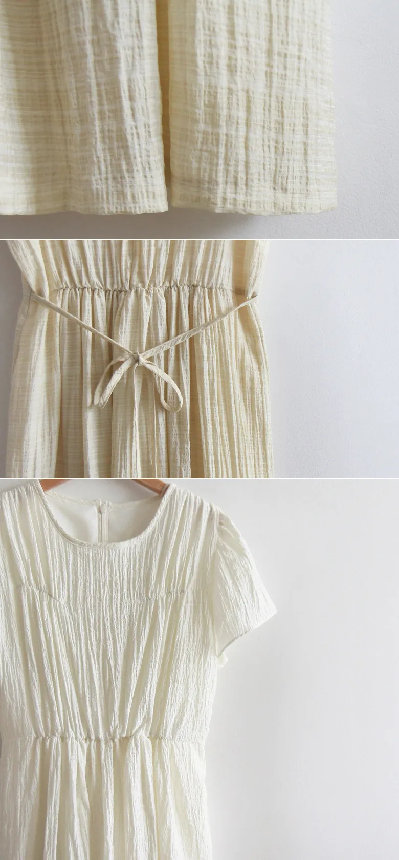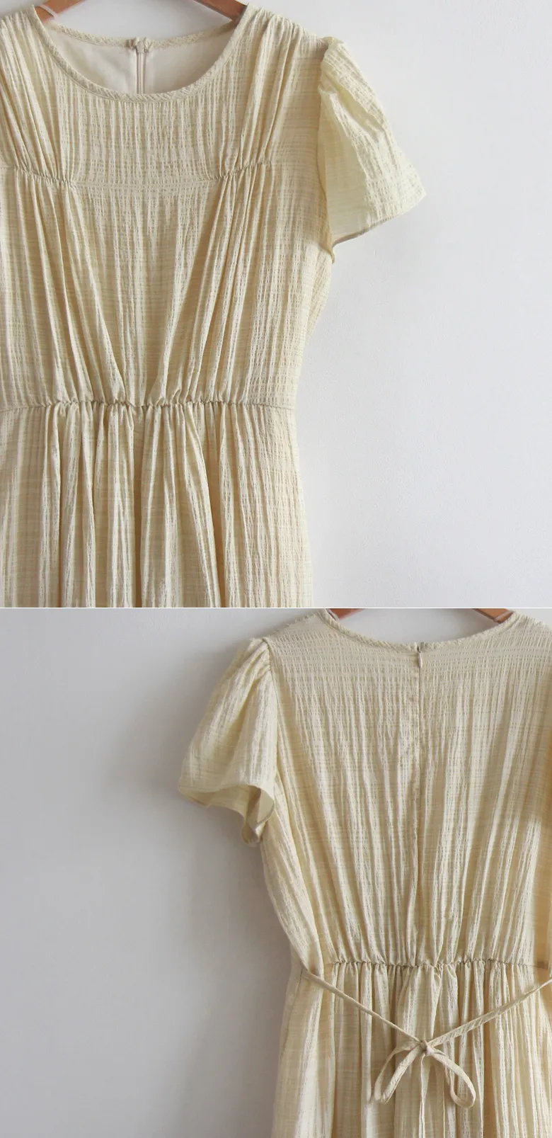 夏日清涼腰部彈性綁帶皺摺感連身裙