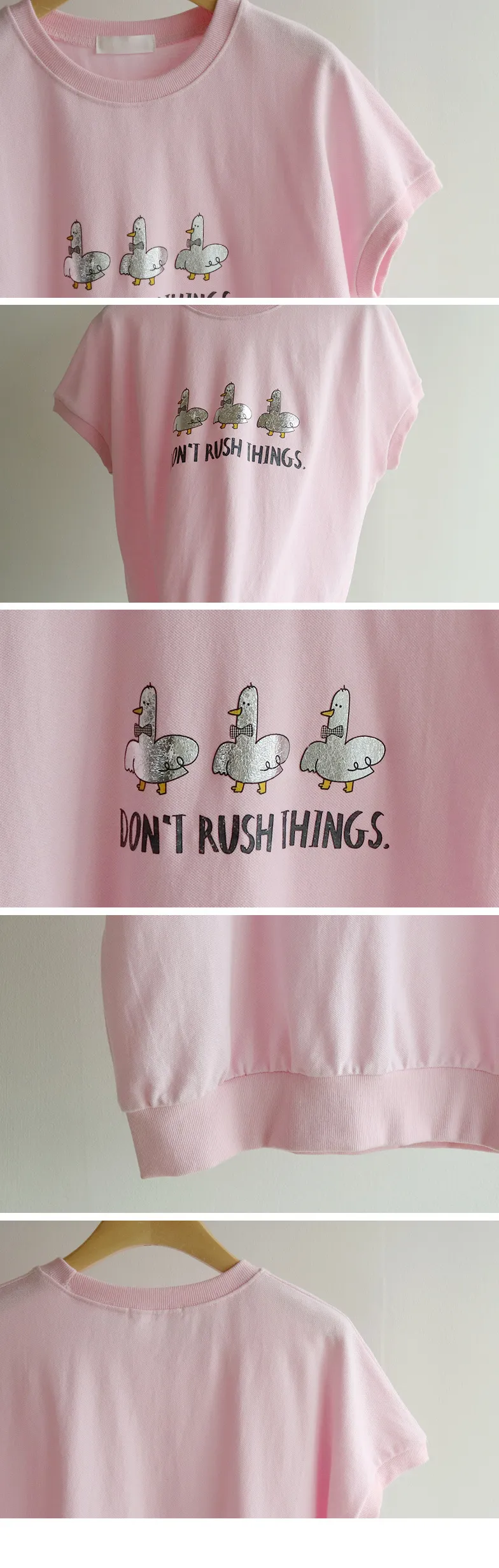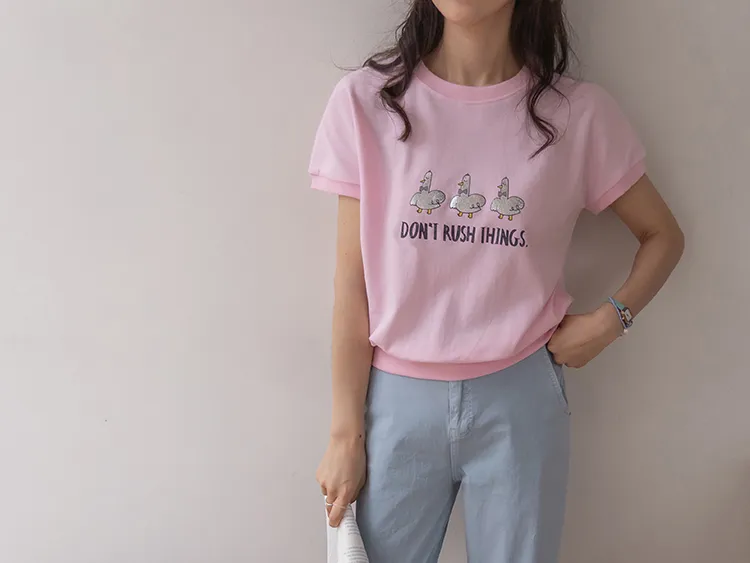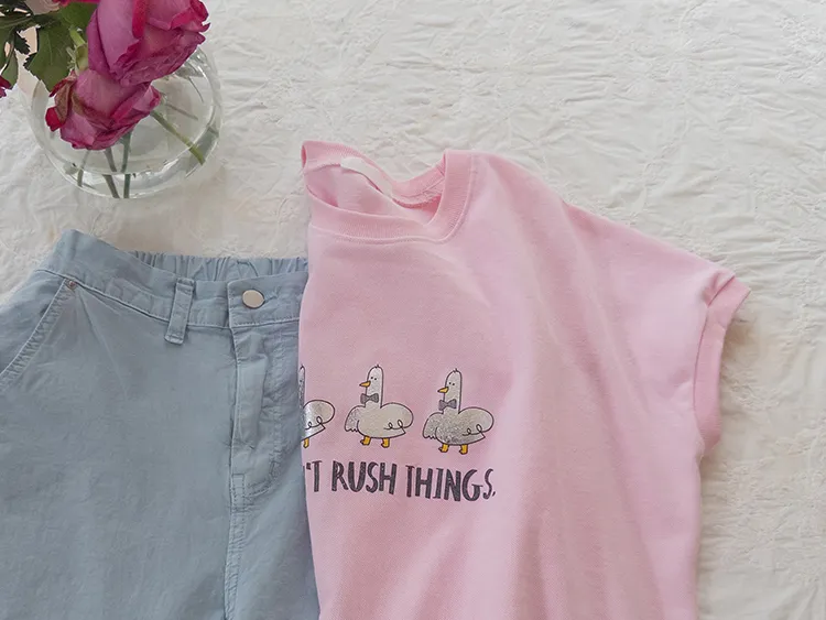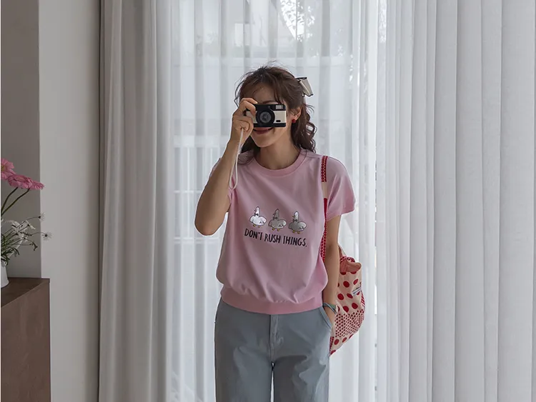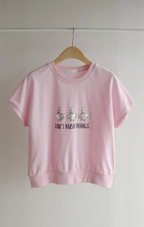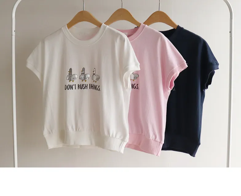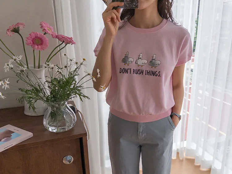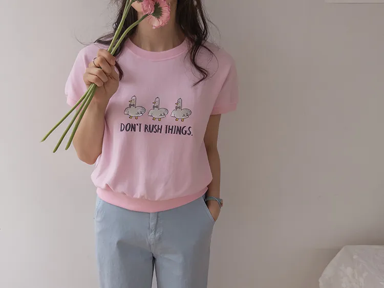 可愛呆萌三隻銀色小鴨印花休閒氛圍短袖上衣