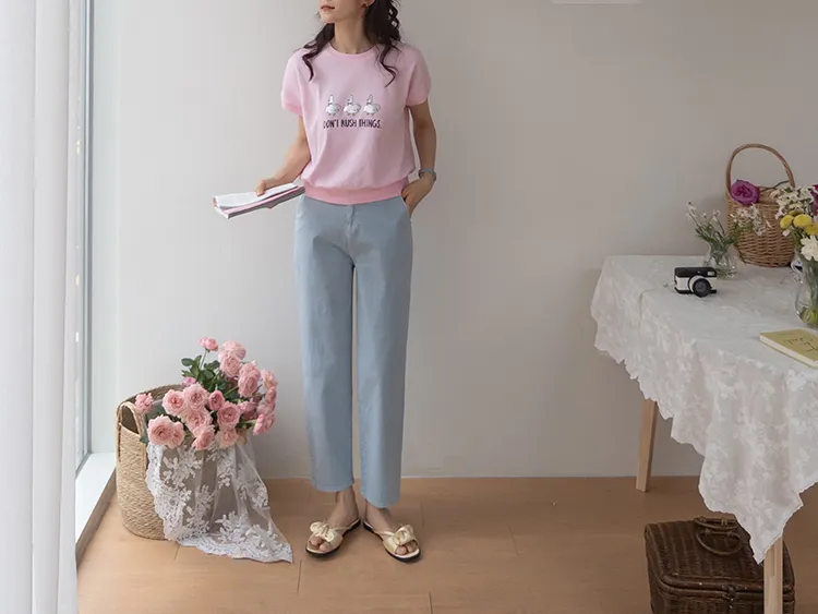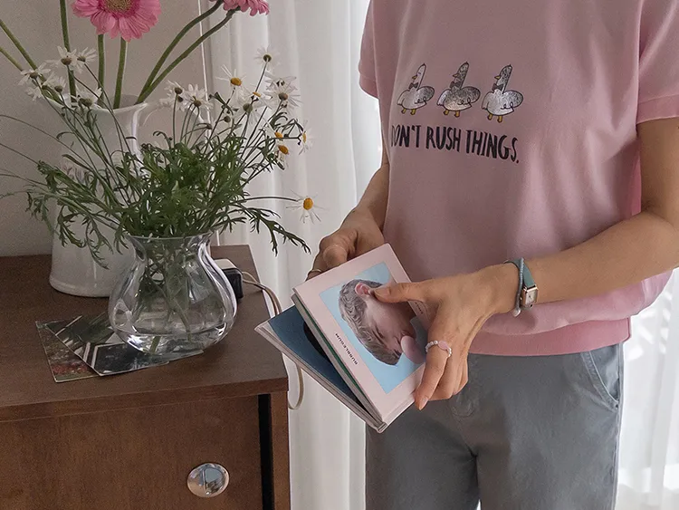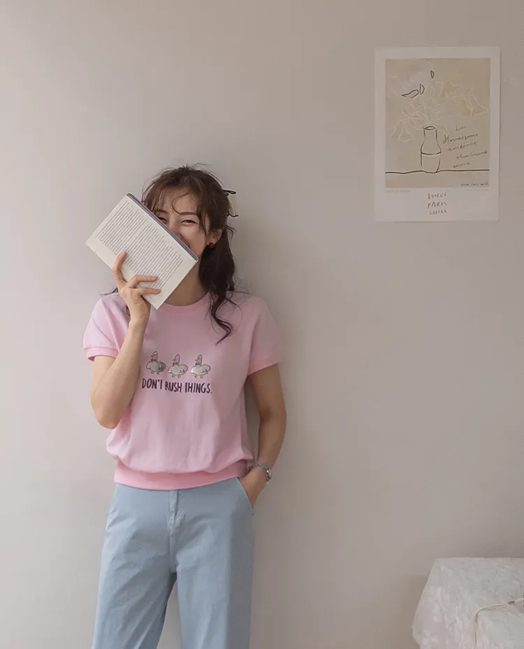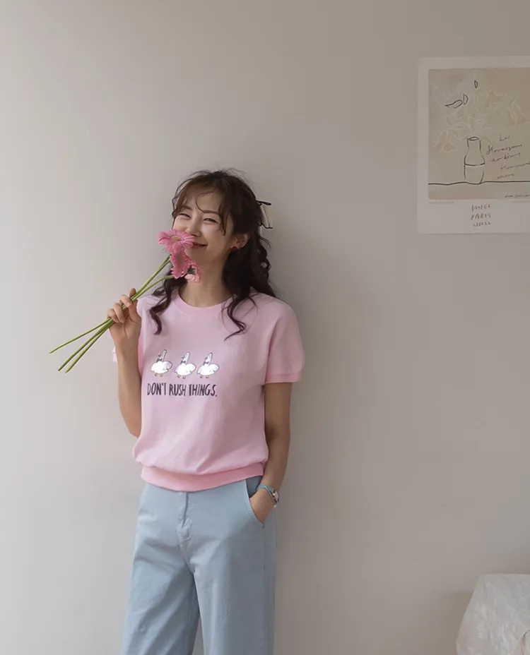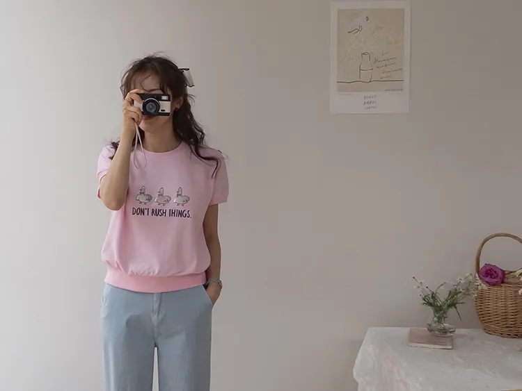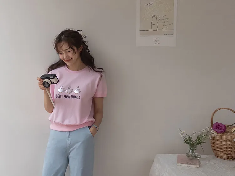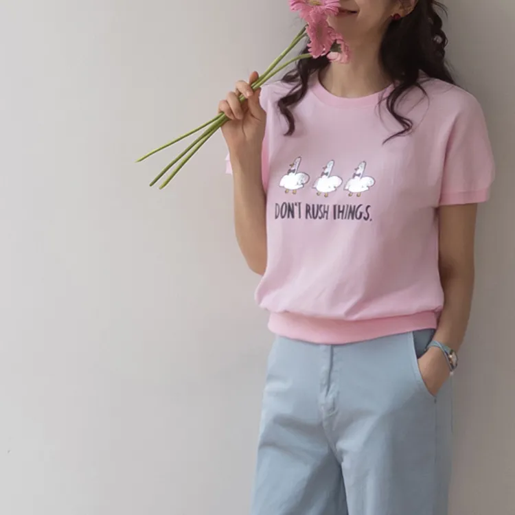 可愛呆萌三隻銀色小鴨印花休閒氛圍短袖上衣
