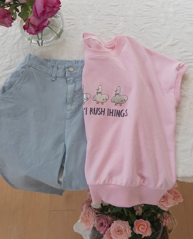 【嘎嘎嘎嘎~可愛的銀色小鴨短袖上衣】【質地