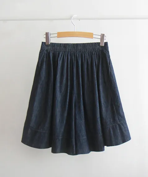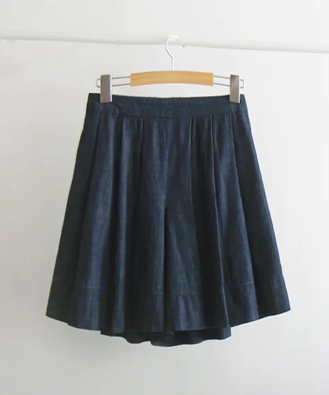 【舒適的腰後部彈性帶】 【適合夏季的長度】 【遮蓋身形穿著舒適的裙褲】 【堅韌的面料保持合身,穿著舒適可愛,不會感到悶熱】 【由於是深色面料,請務必單獨洗滌或與深色衣物一起洗滌】