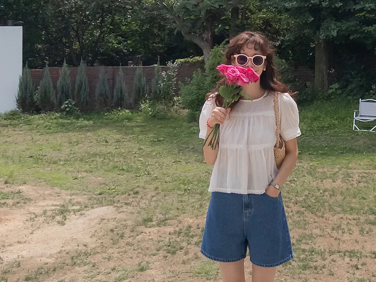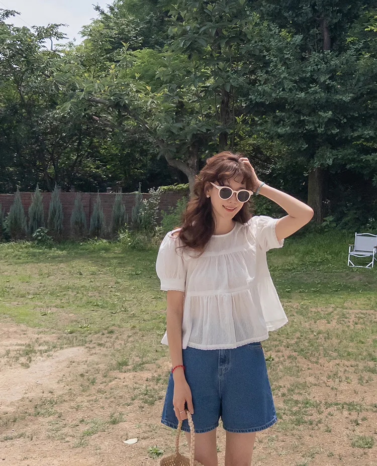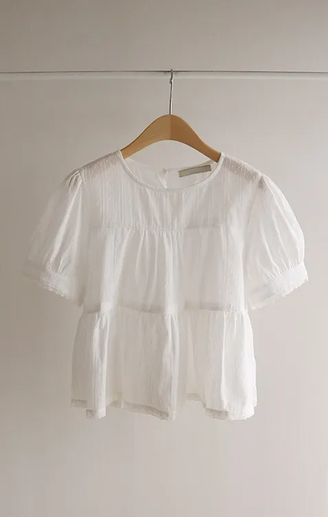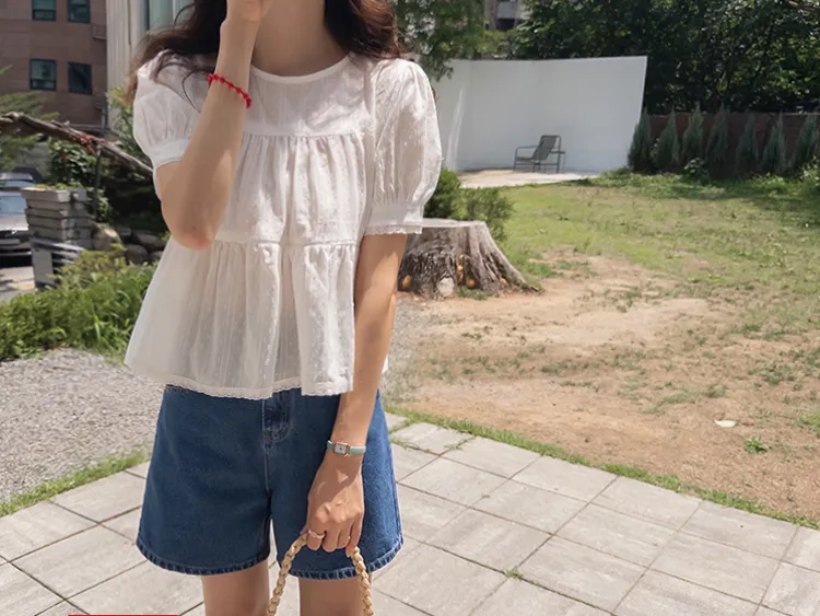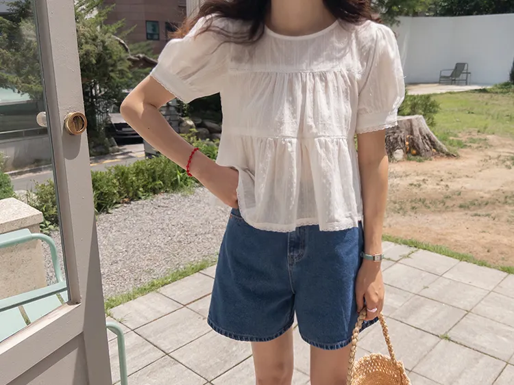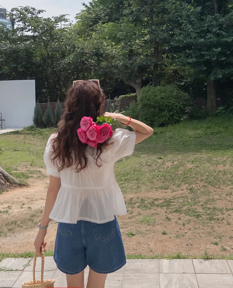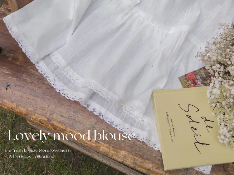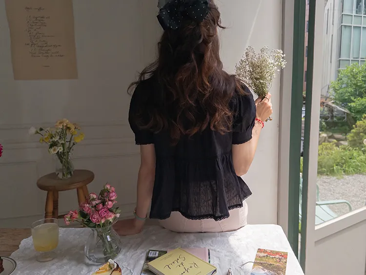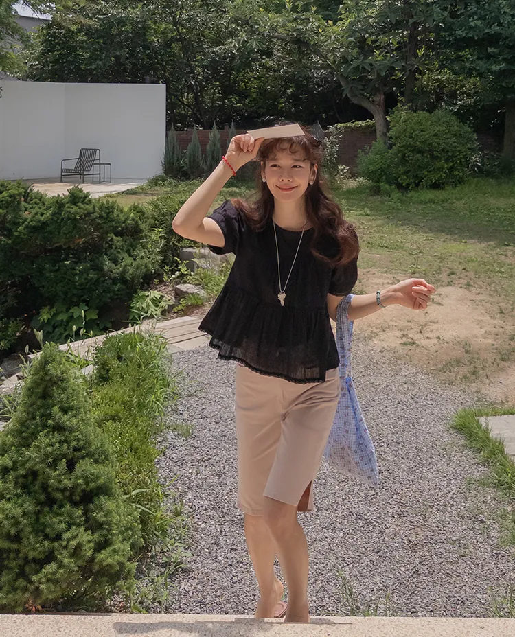 【精緻蕾絲刺繡上衣】【浪漫的輪廓♥】【搖曳~搖曳~下擺的褶皺設計很美】【適合清新夏日的可愛氛圍】