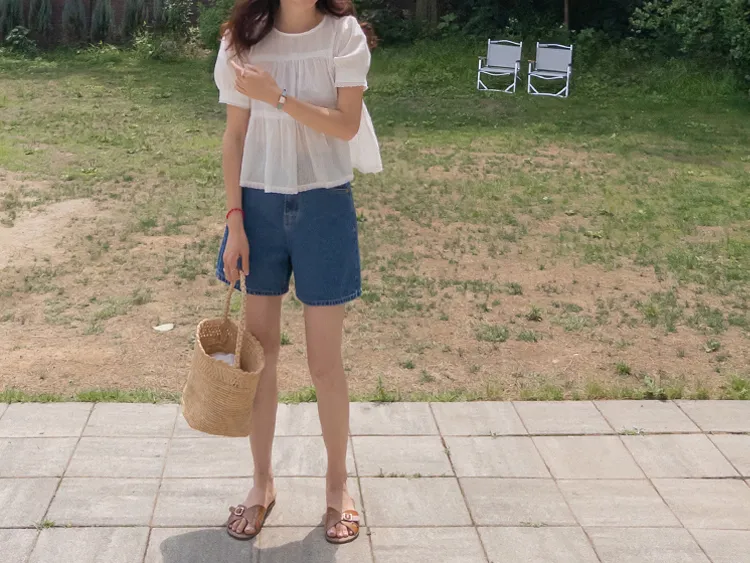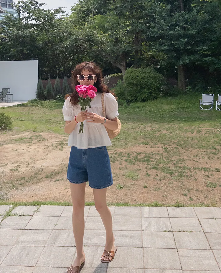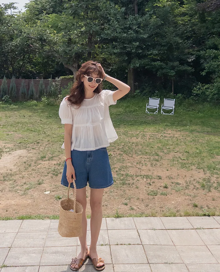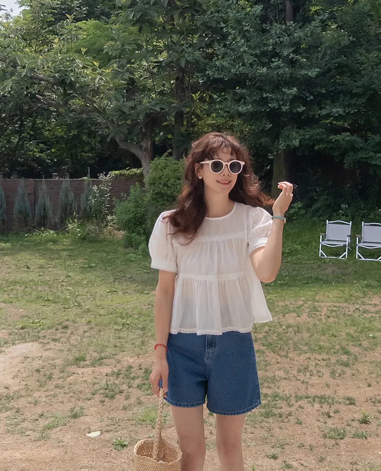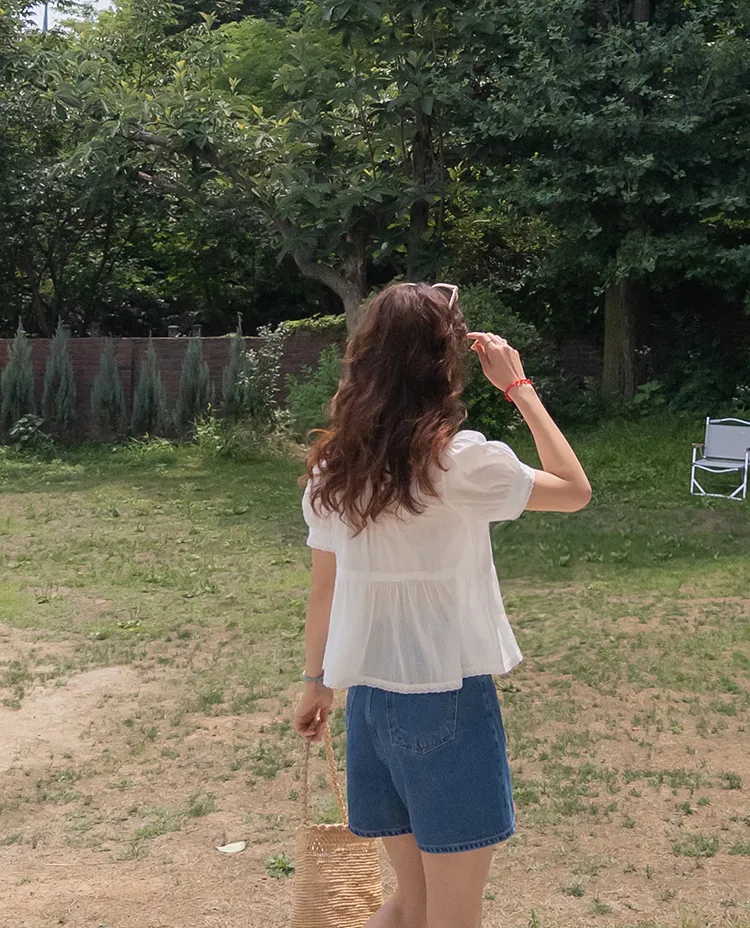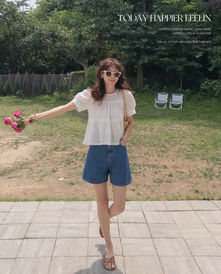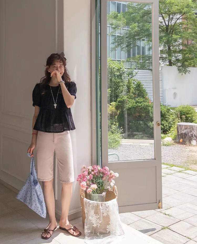 【精緻蕾絲刺繡上衣】【浪漫的輪廓♥】【搖曳~搖曳~下擺的褶皺設計很美】【適合清新夏日的可愛氛圍】